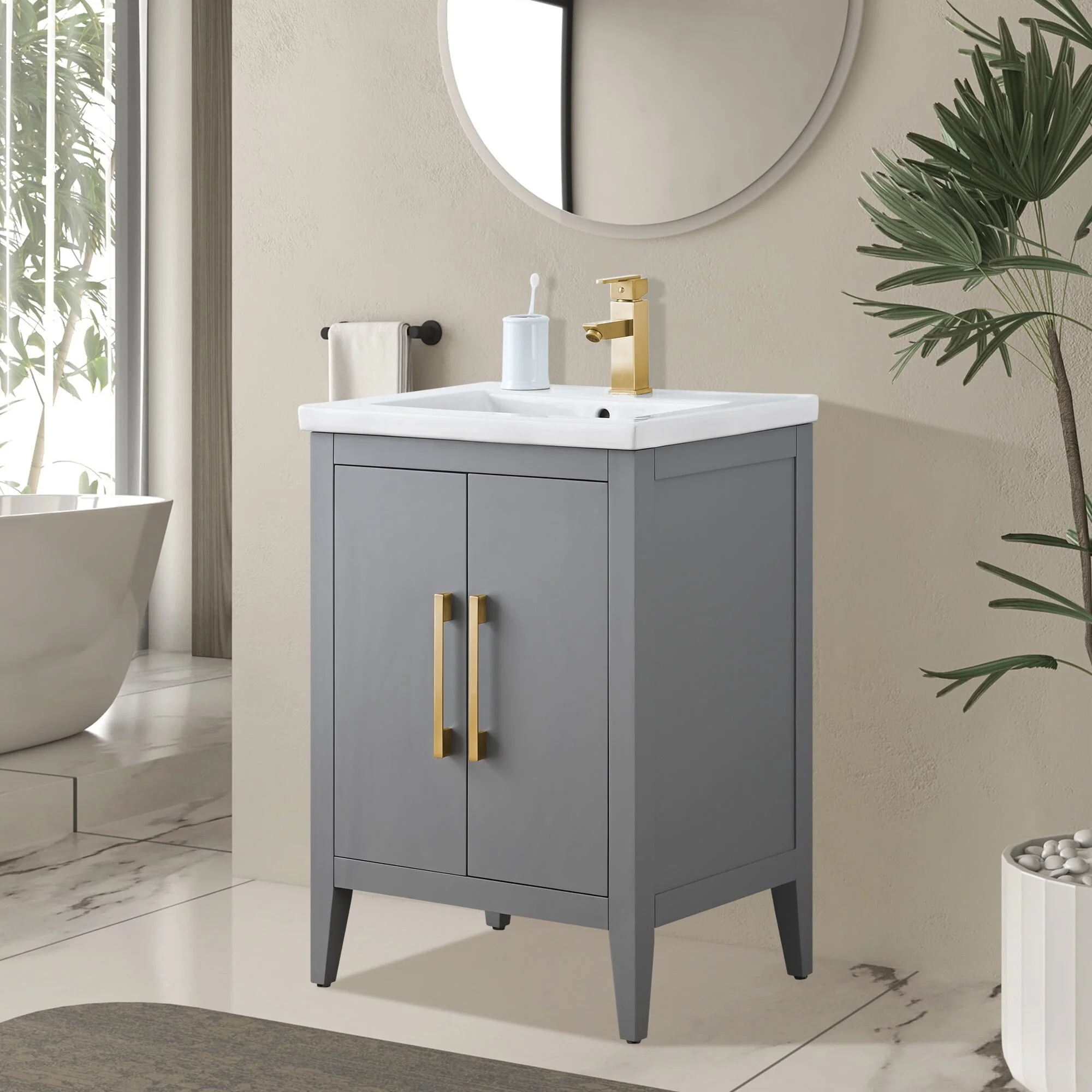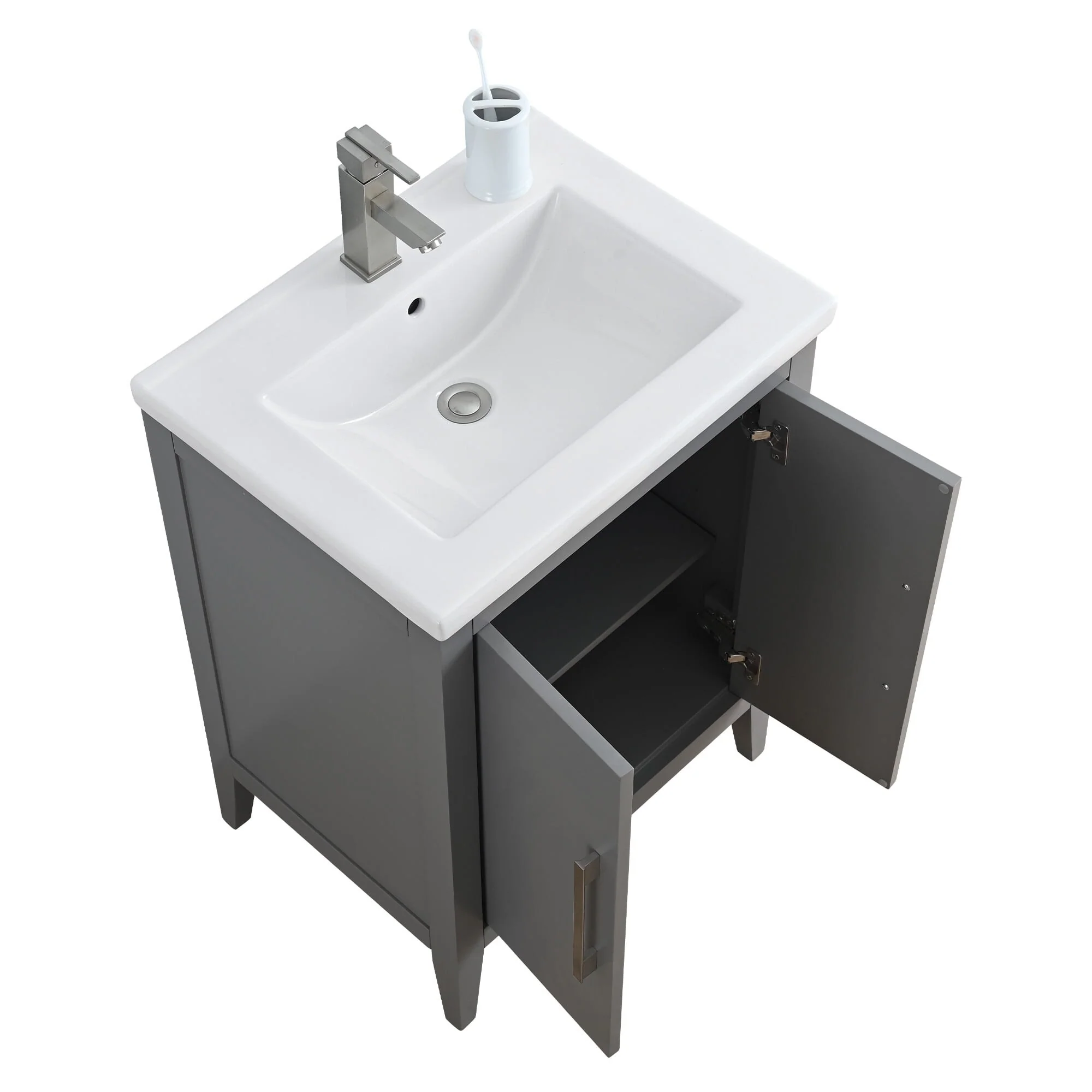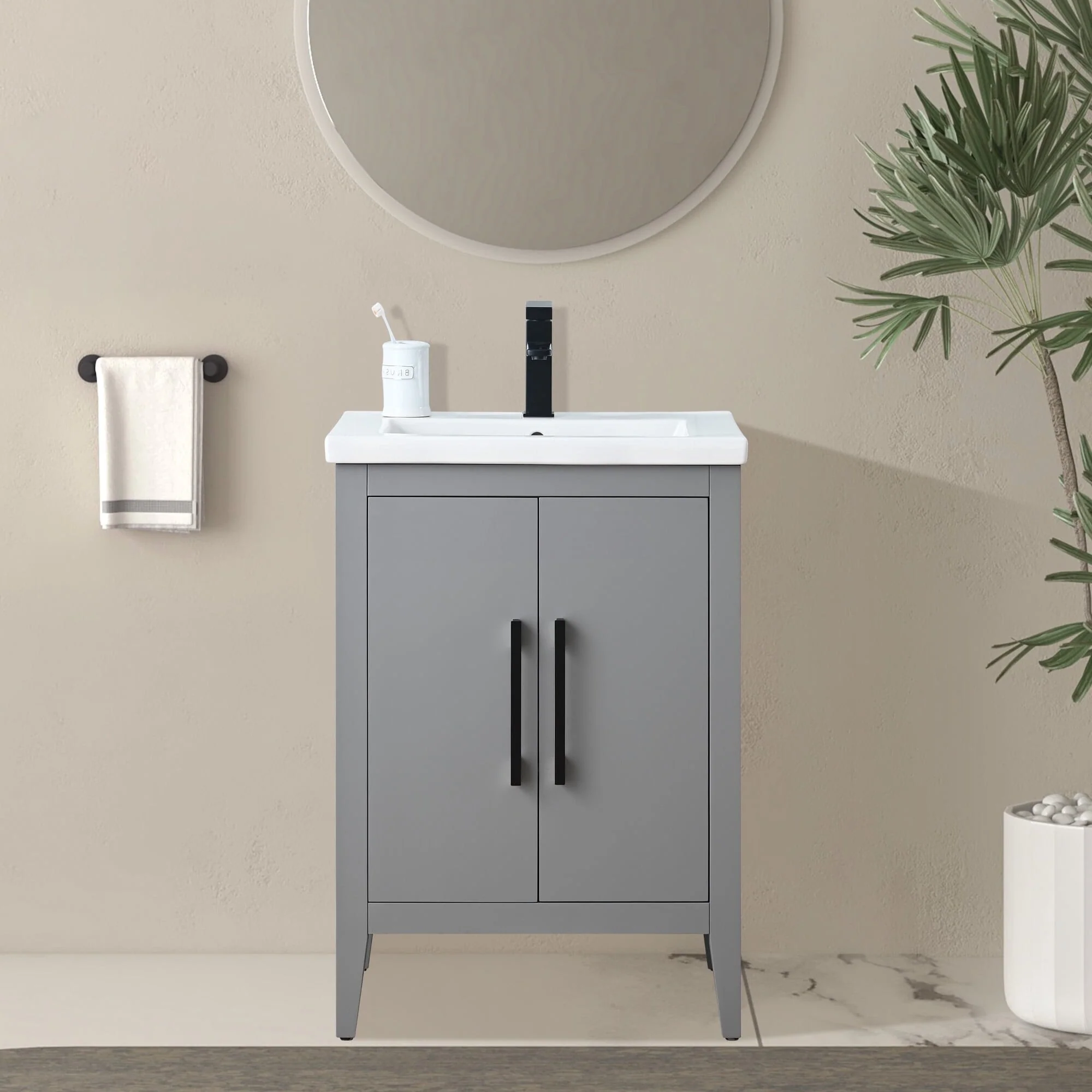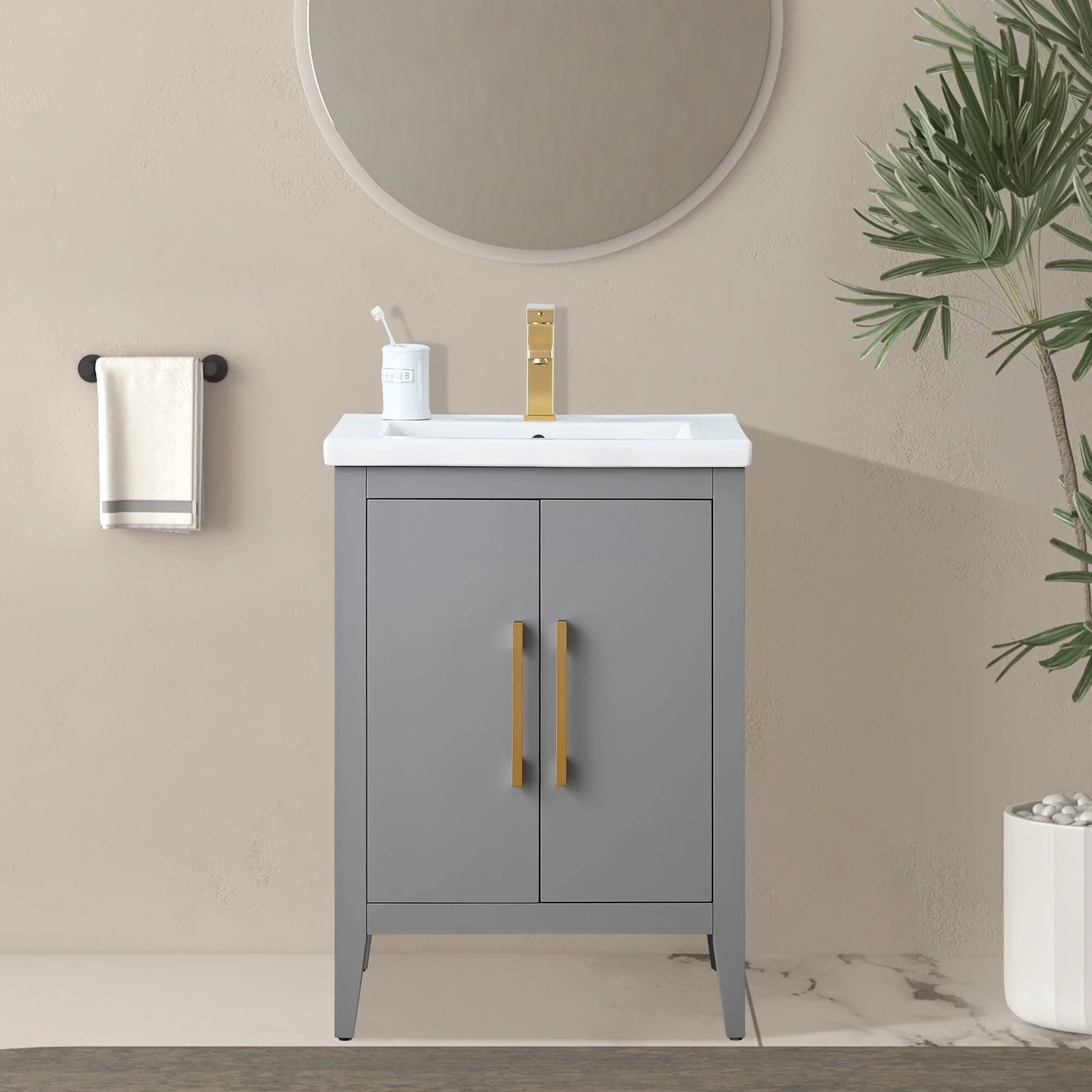 24" Bathroom Vanity with Sink, Freestanding Storage Cabinet with 2 Doors - /