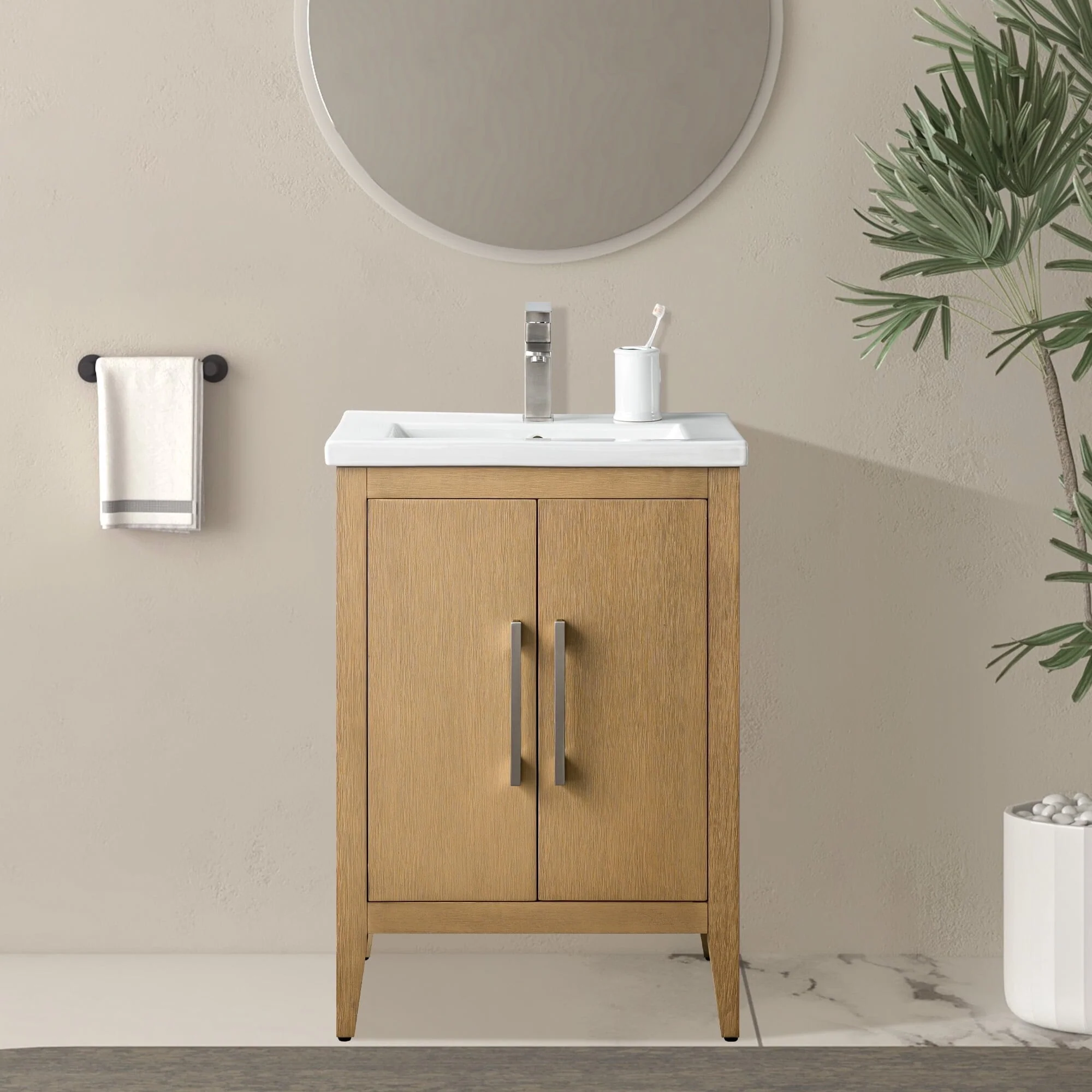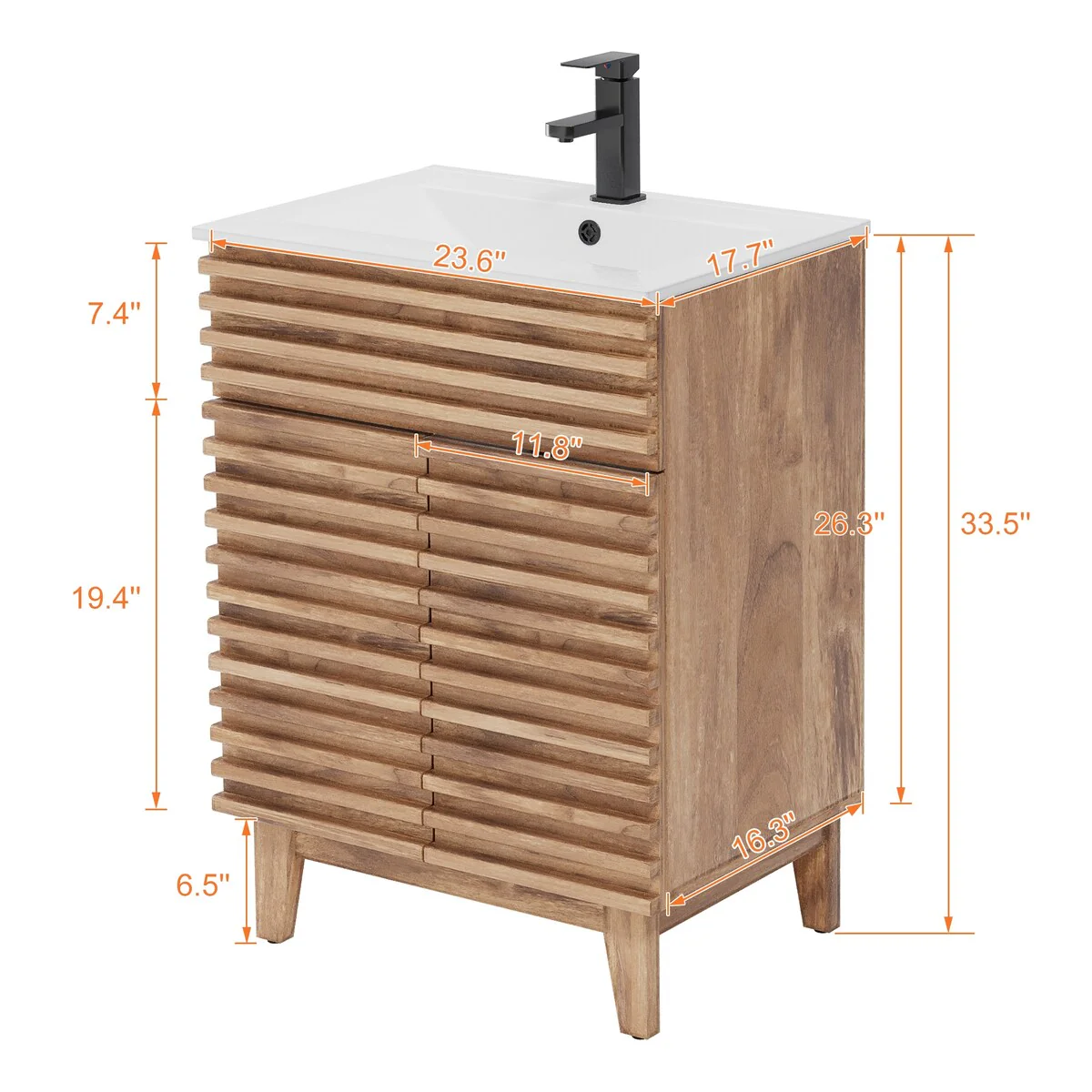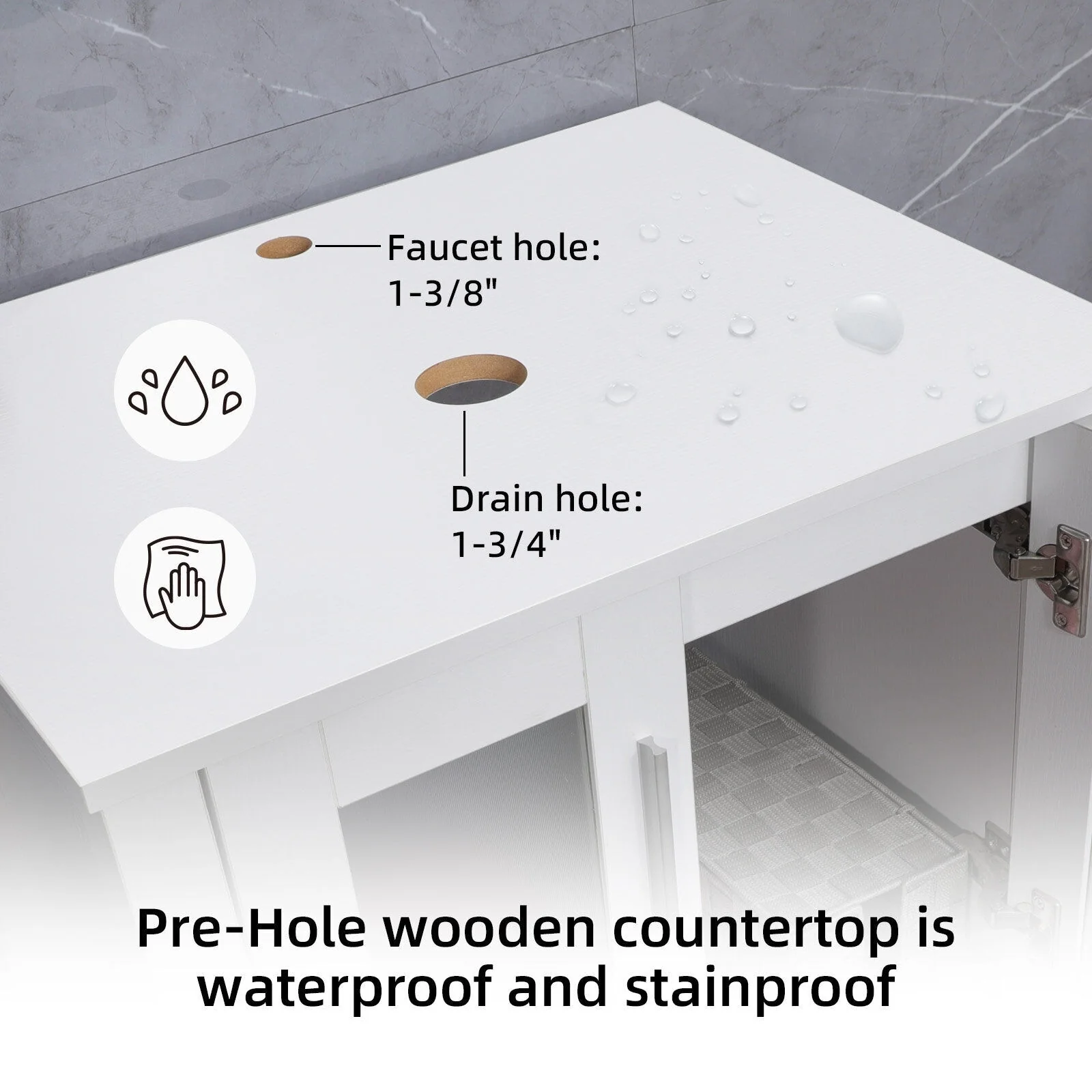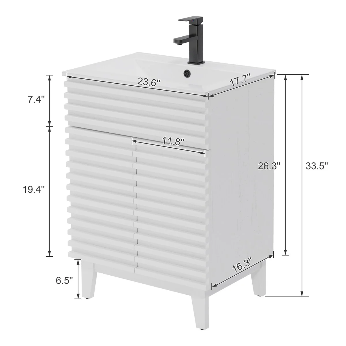 24" Bathroom Vanity with Sink, Freestanding Storage Cabinet with 2 Doors - /