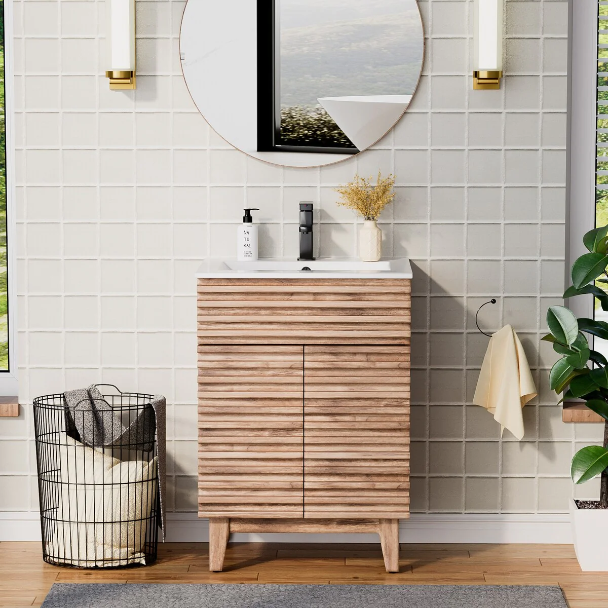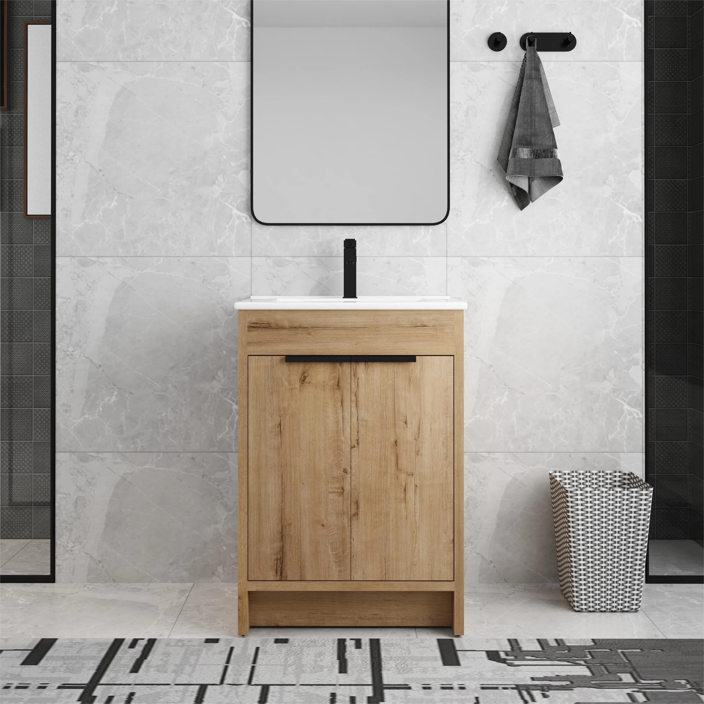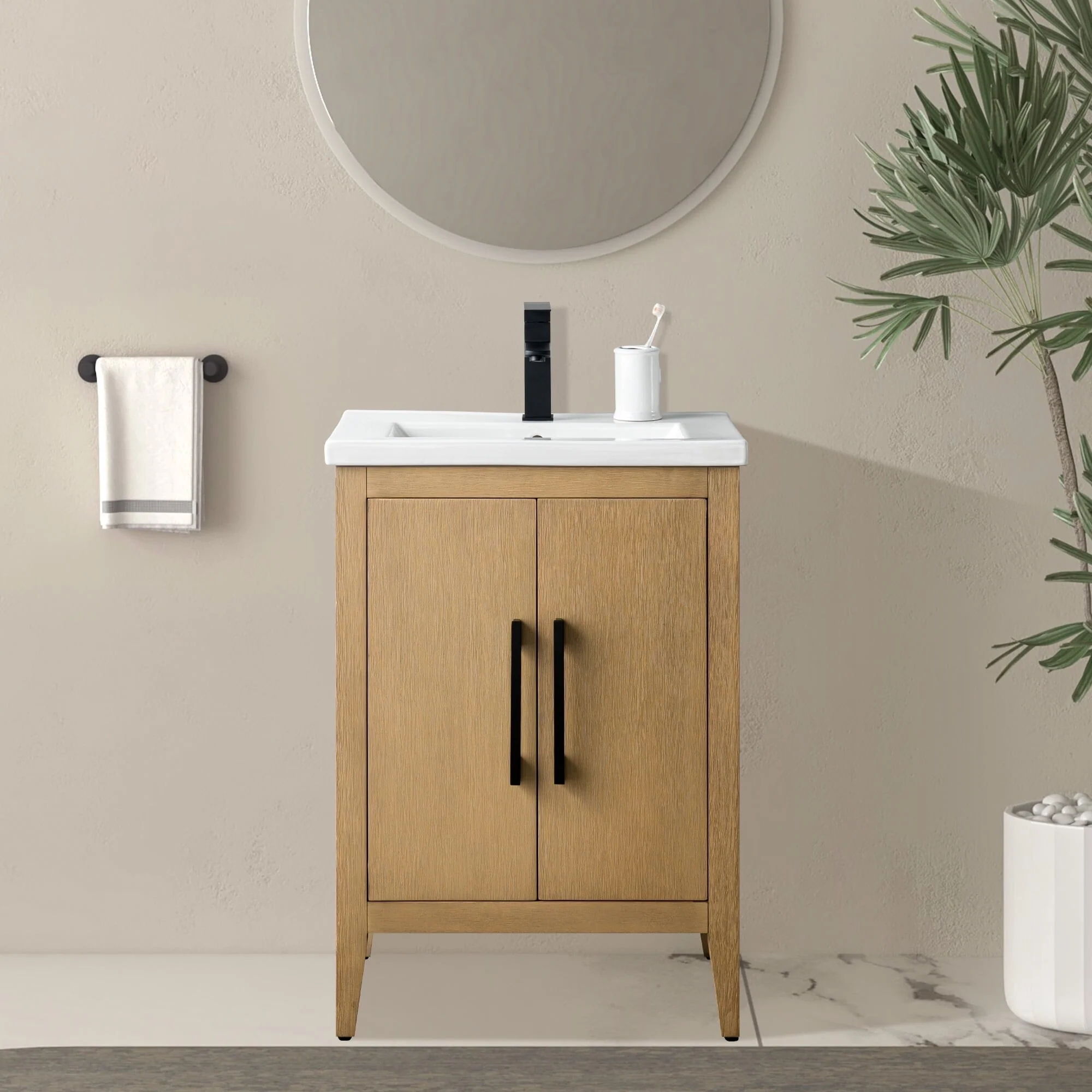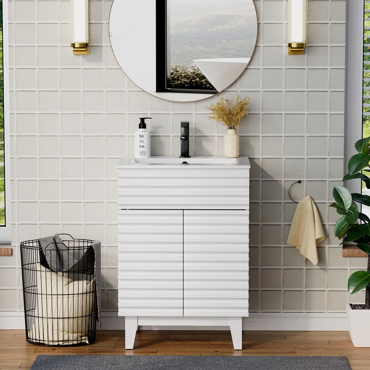 24" Bathroom Vanity with Sink, Freestanding Storage Cabinet with 2 Doors - /