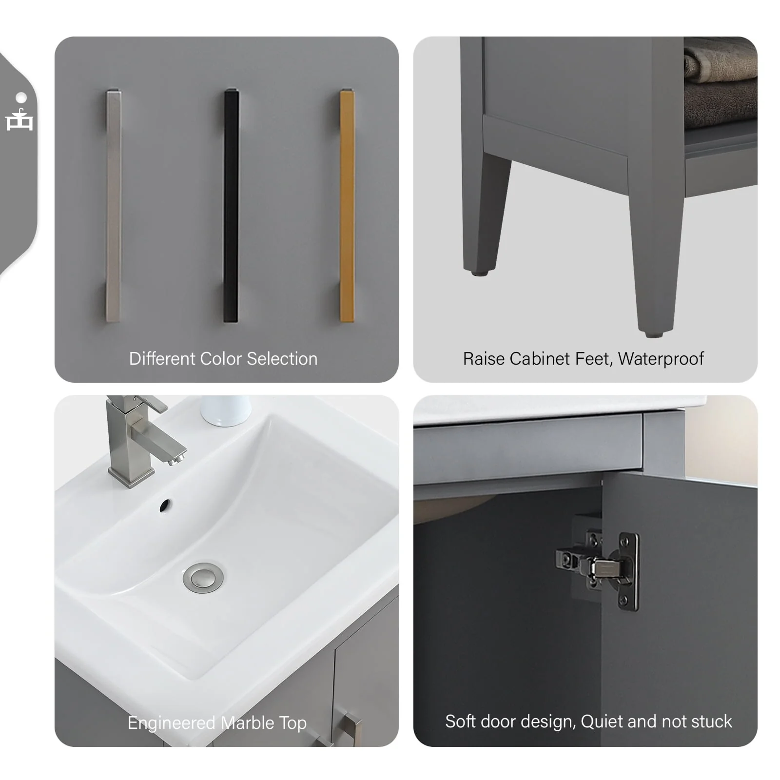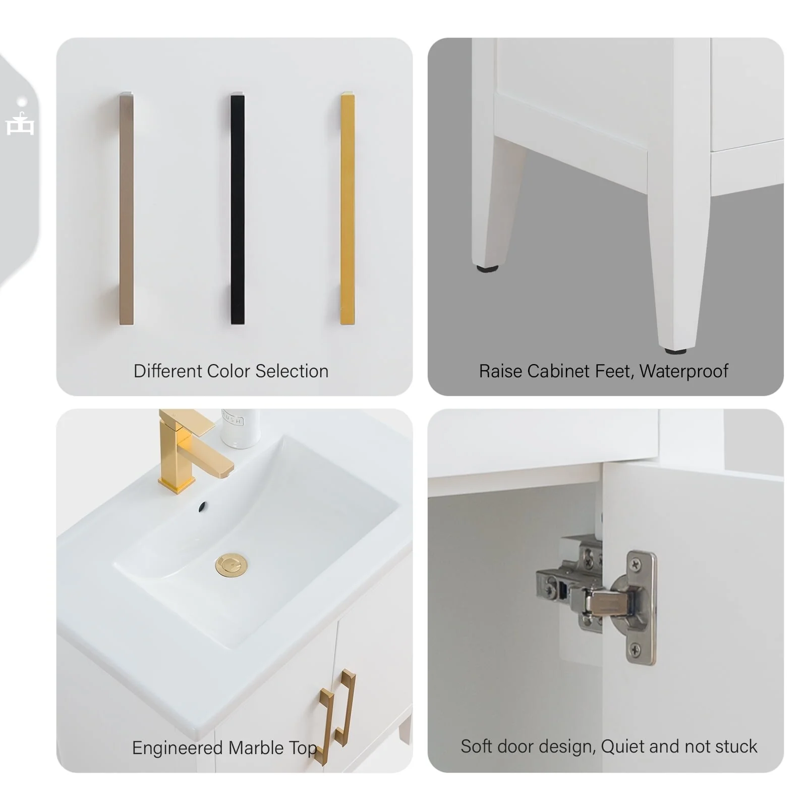 Vanity Art Bathroom Vanity with Ceramic Sink and Engineered Marble Top