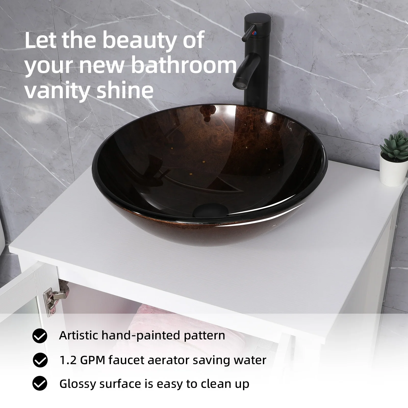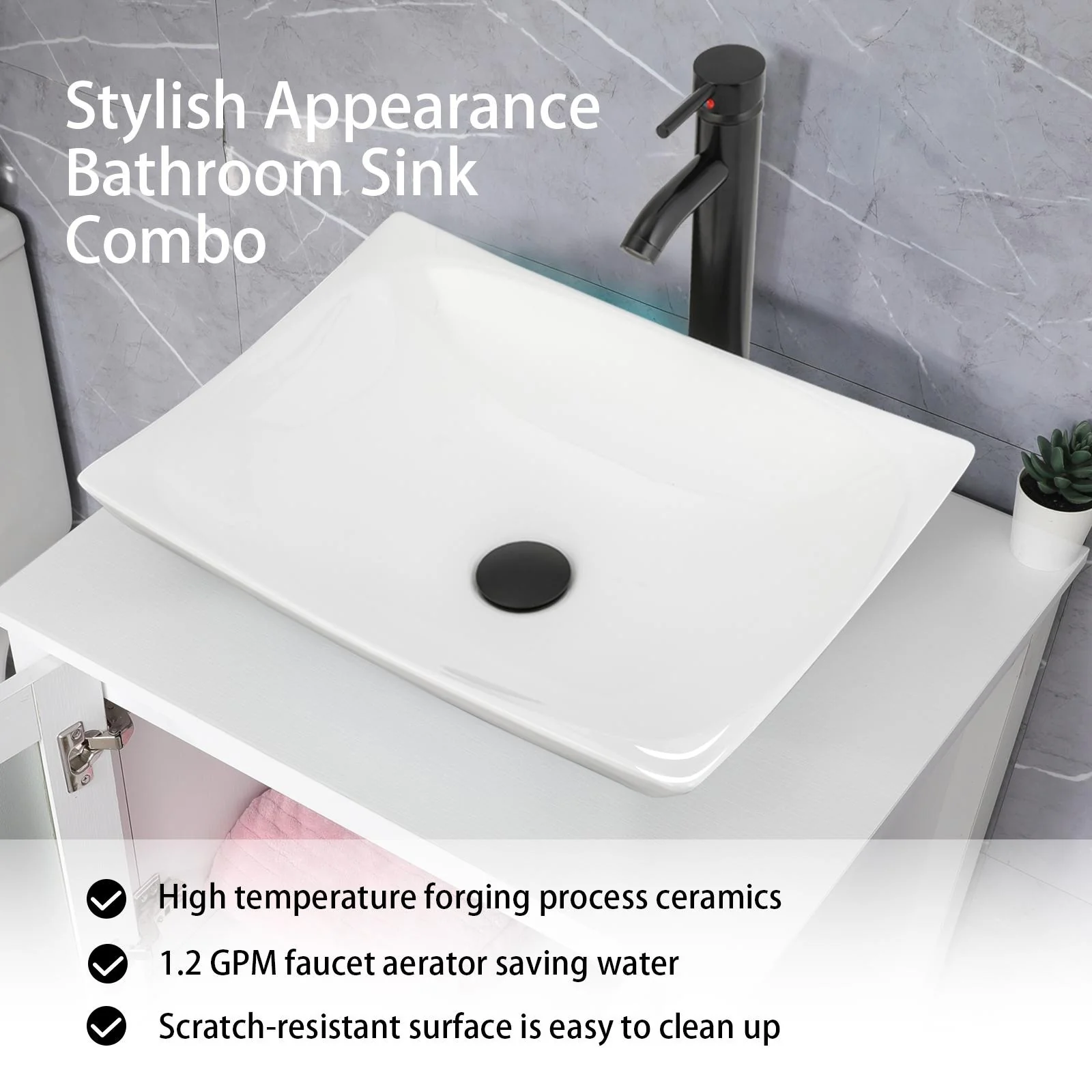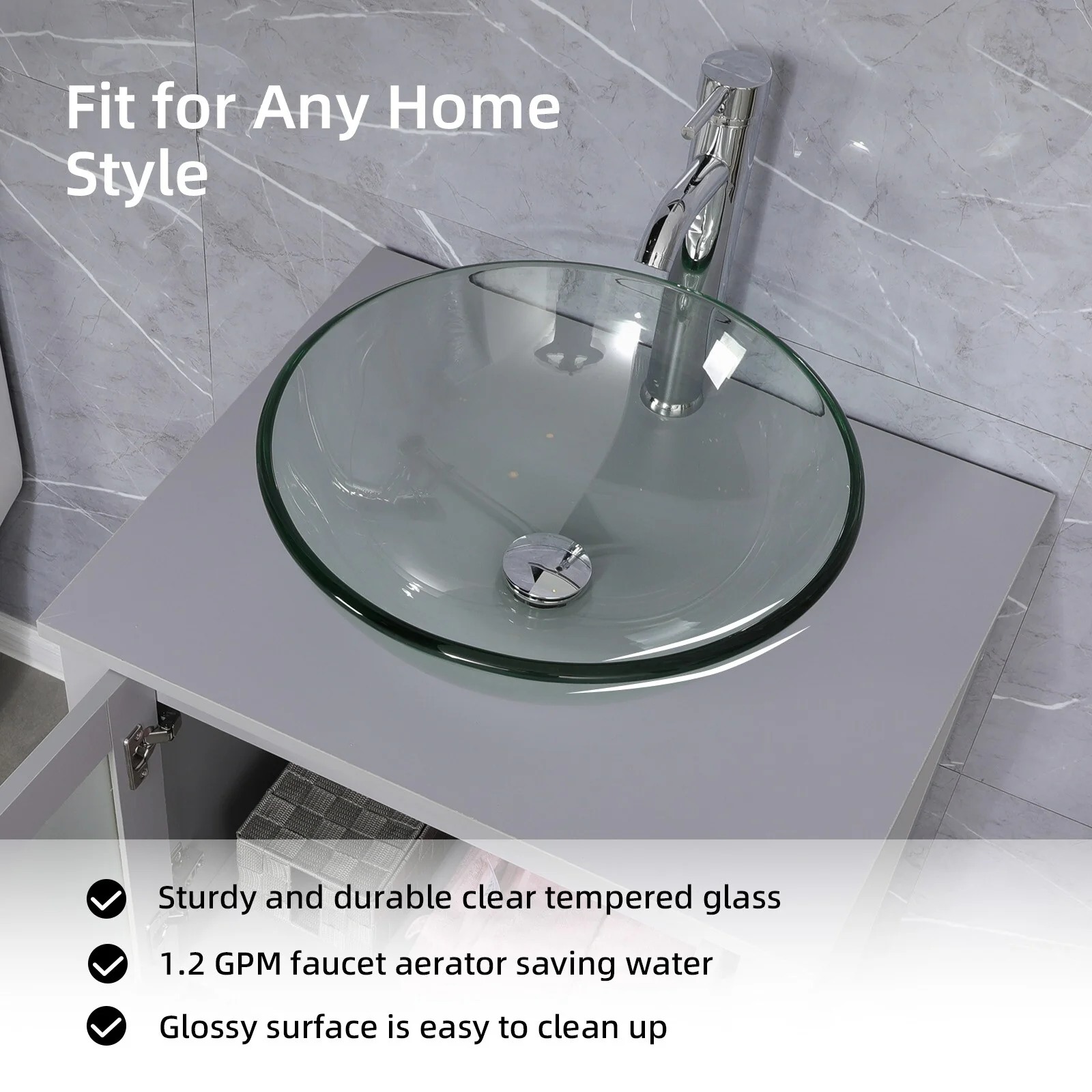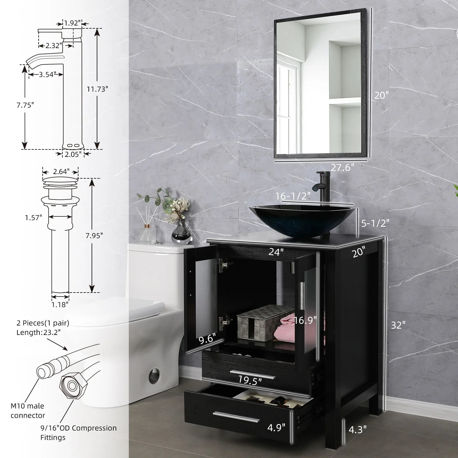 24" Bathroom Vanity White Set Glass/ Ceramic Vessel Sink Cabinet Faucet Drain Free Standing Combo