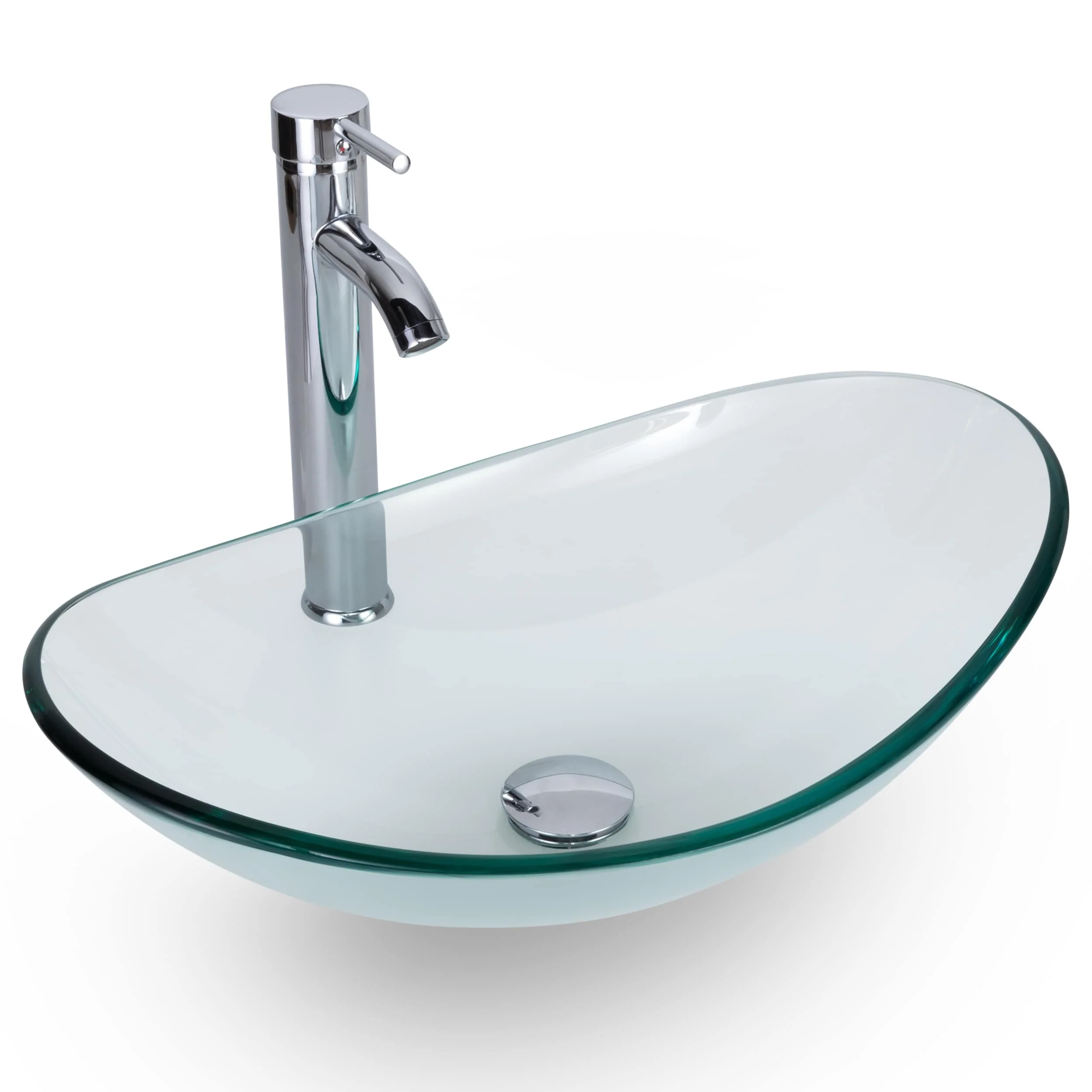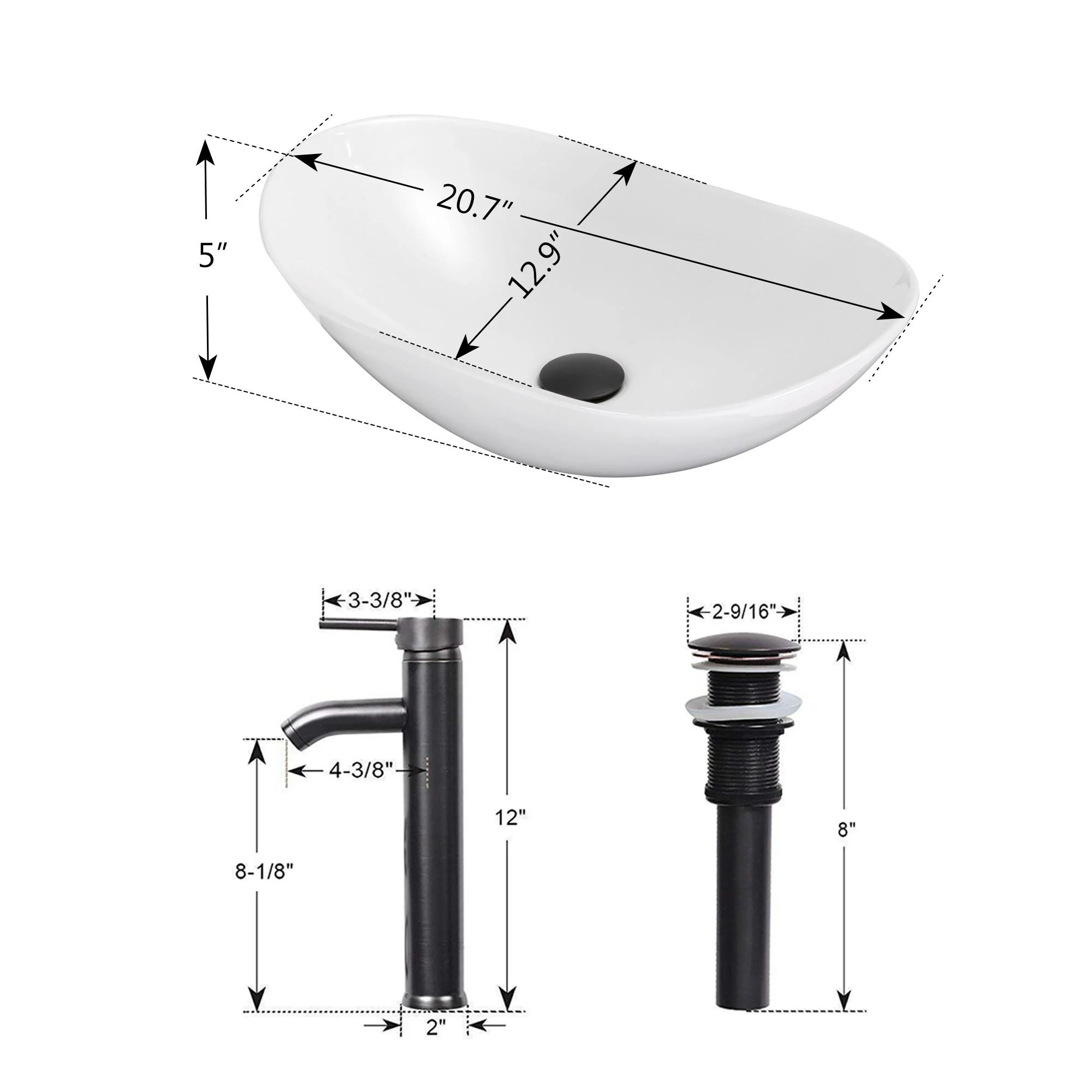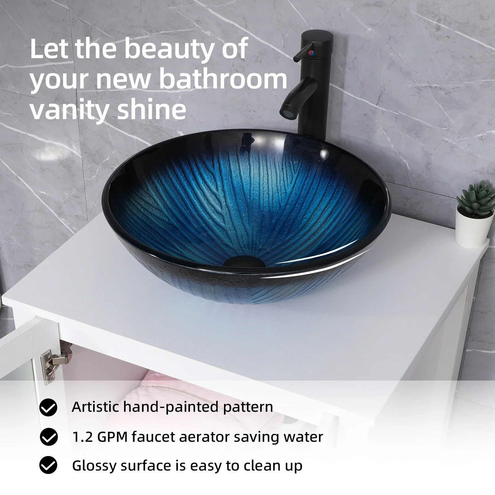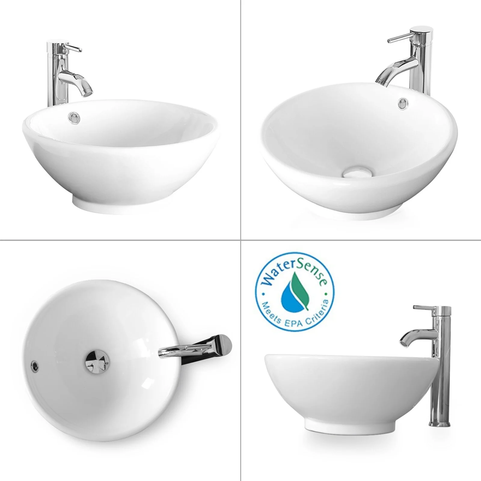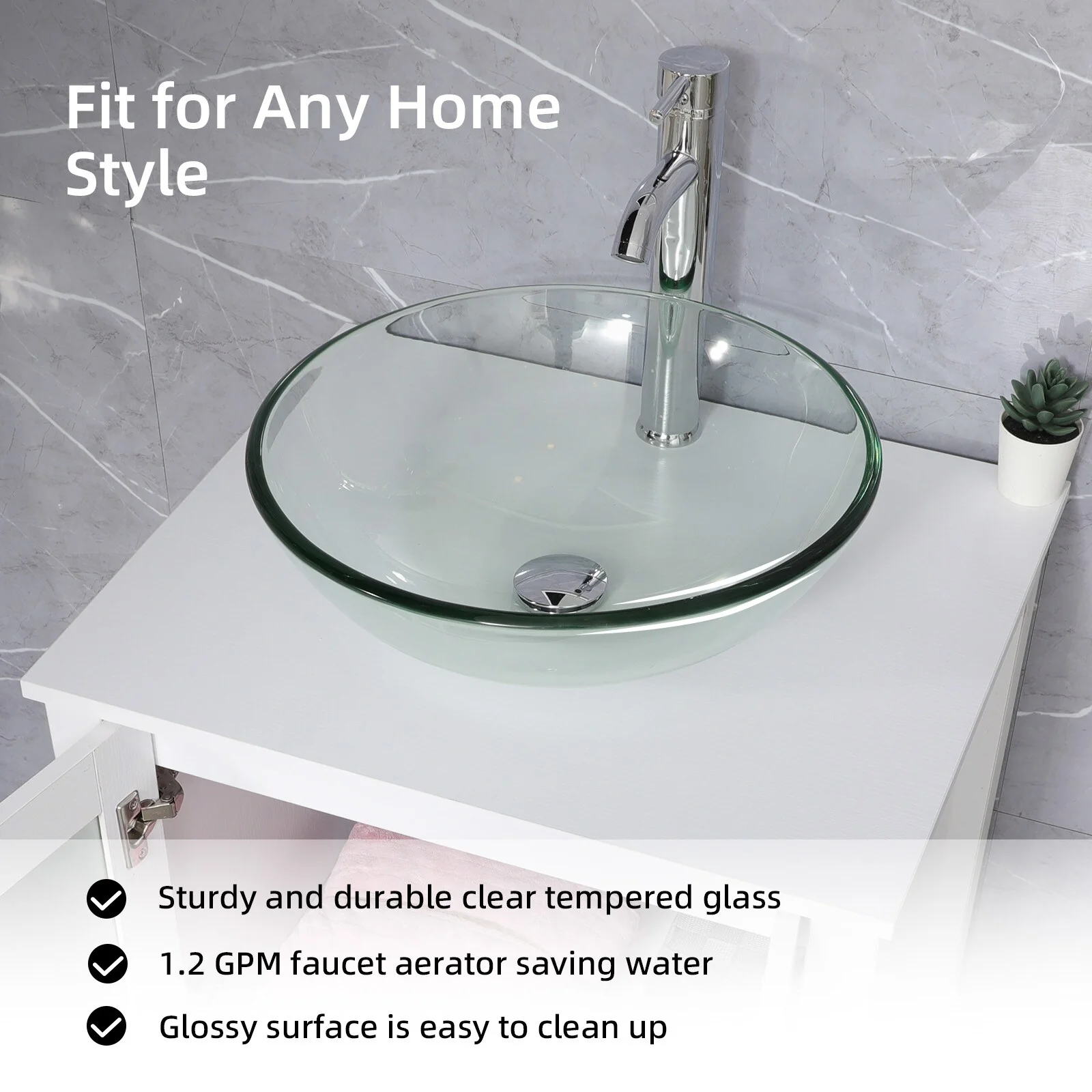 24" Bathroom Vanity White Set Glass/ Ceramic Vessel Sink Cabinet Faucet Drain Free Standing Combo
