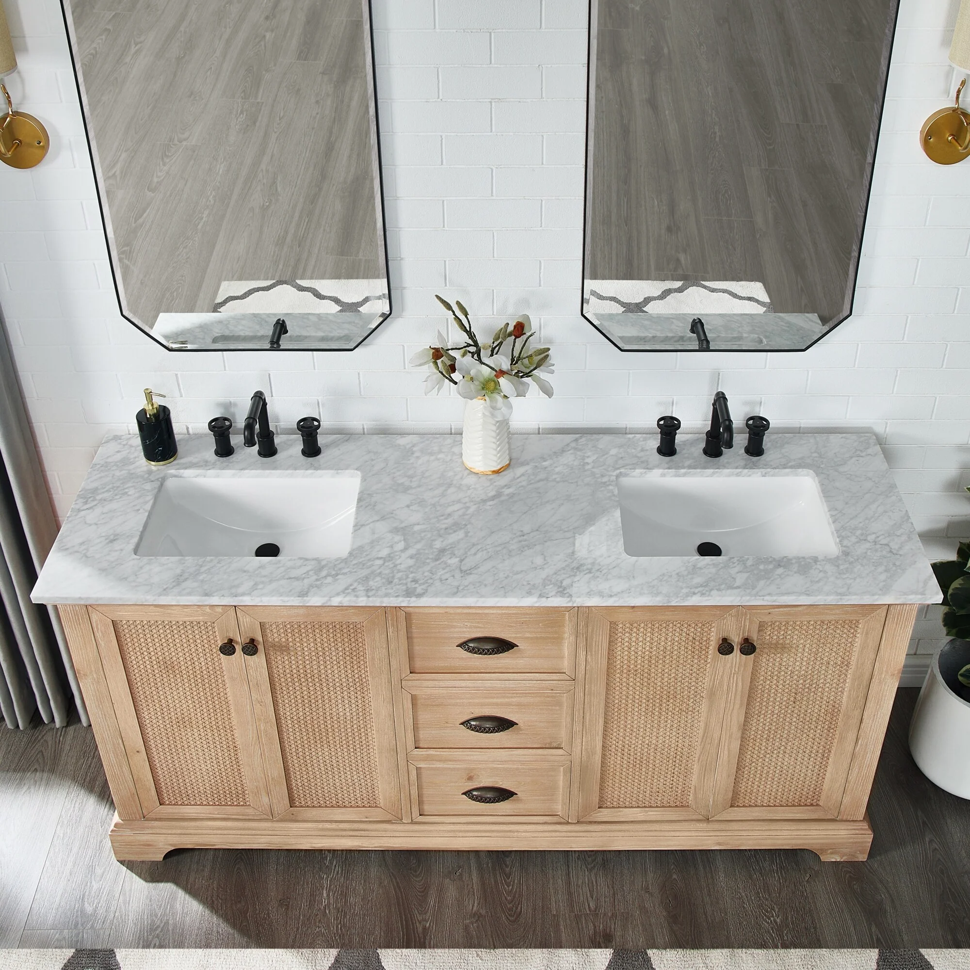 Hervas Bath Vanity with Natural Marble Top without Mirror