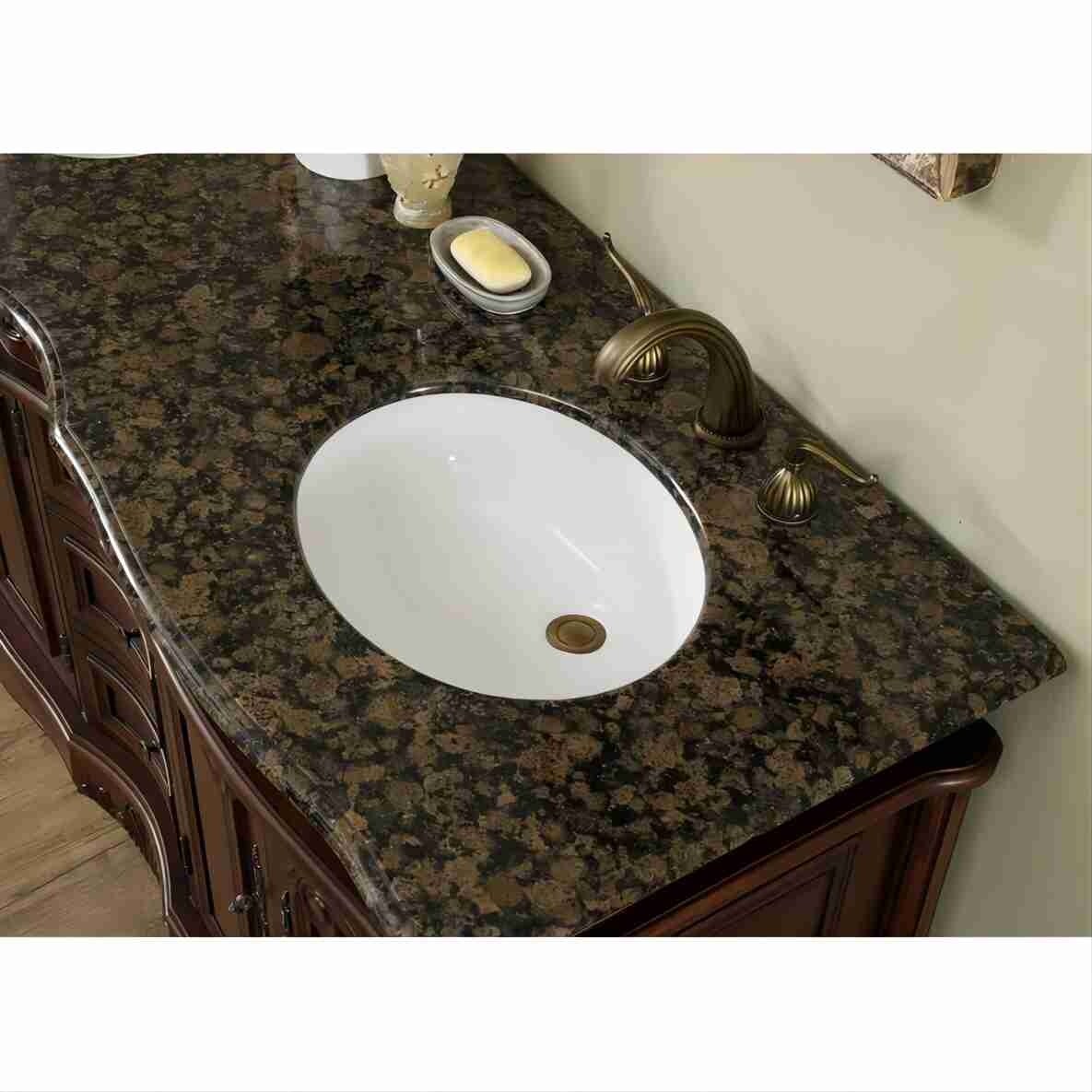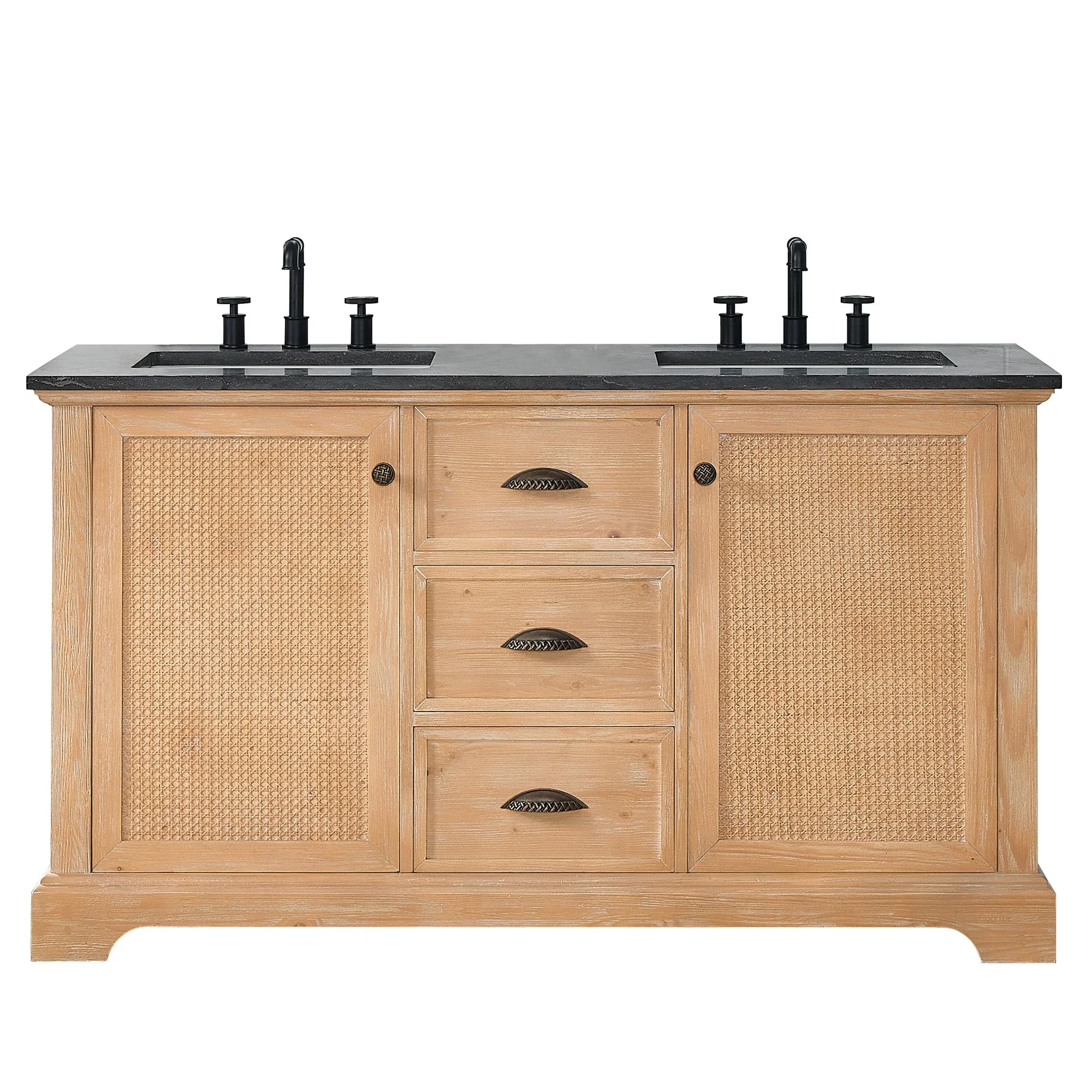 Saturn 60 in. W x 22 in. D x 36 in. H Double Sink Freestanding Antique Cherry Bath Vanity with Baltic Brown Granite Top