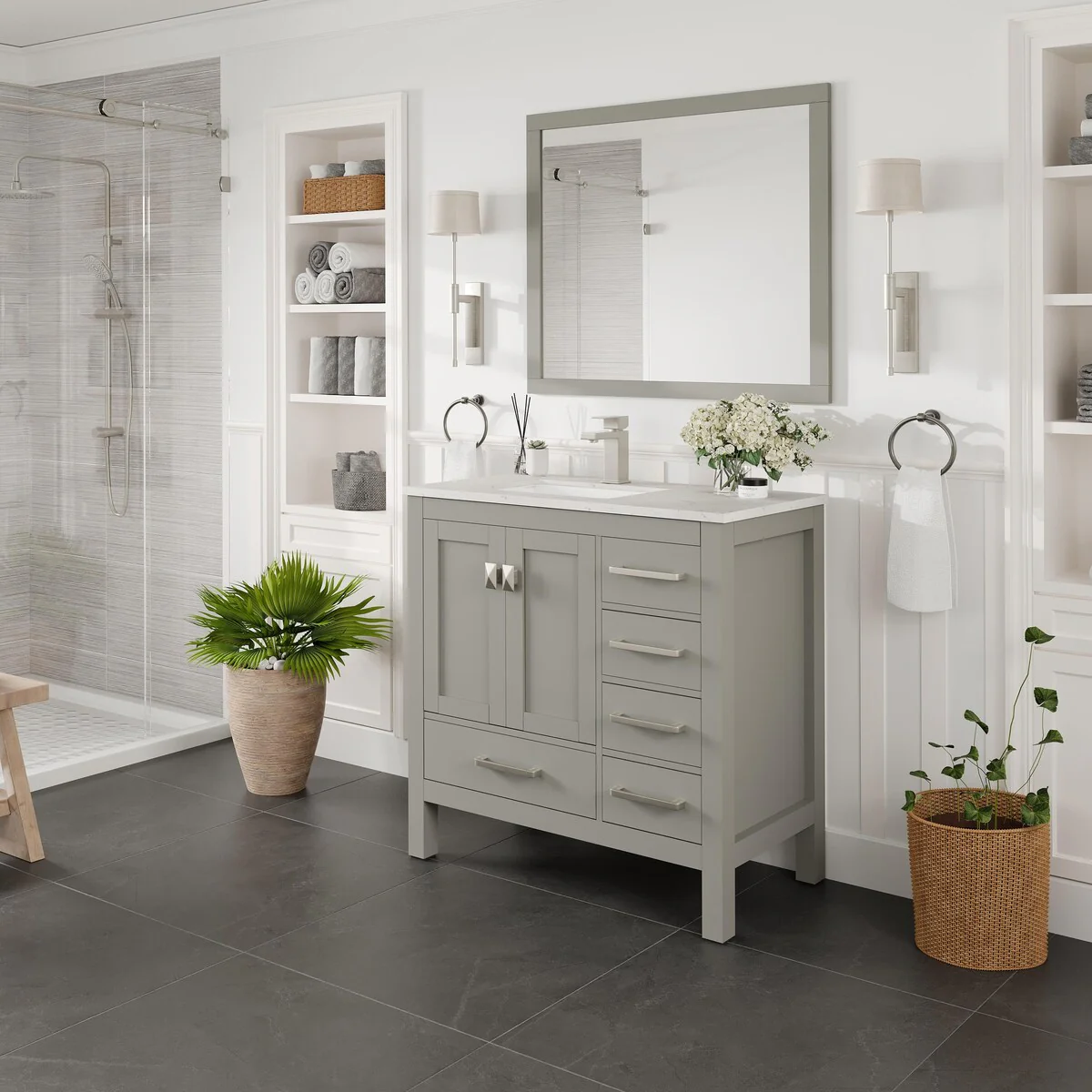 Eviva London 38"W x 18"D Gray Single Sink Bathroom Vanity with White Carrara Quartz Vanity Top and Rectangular Undermount Sink