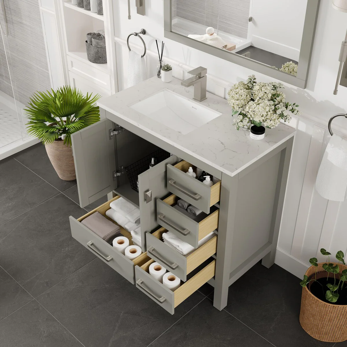 Oza Bath Vanity with Quartz Stone Top without Mirror