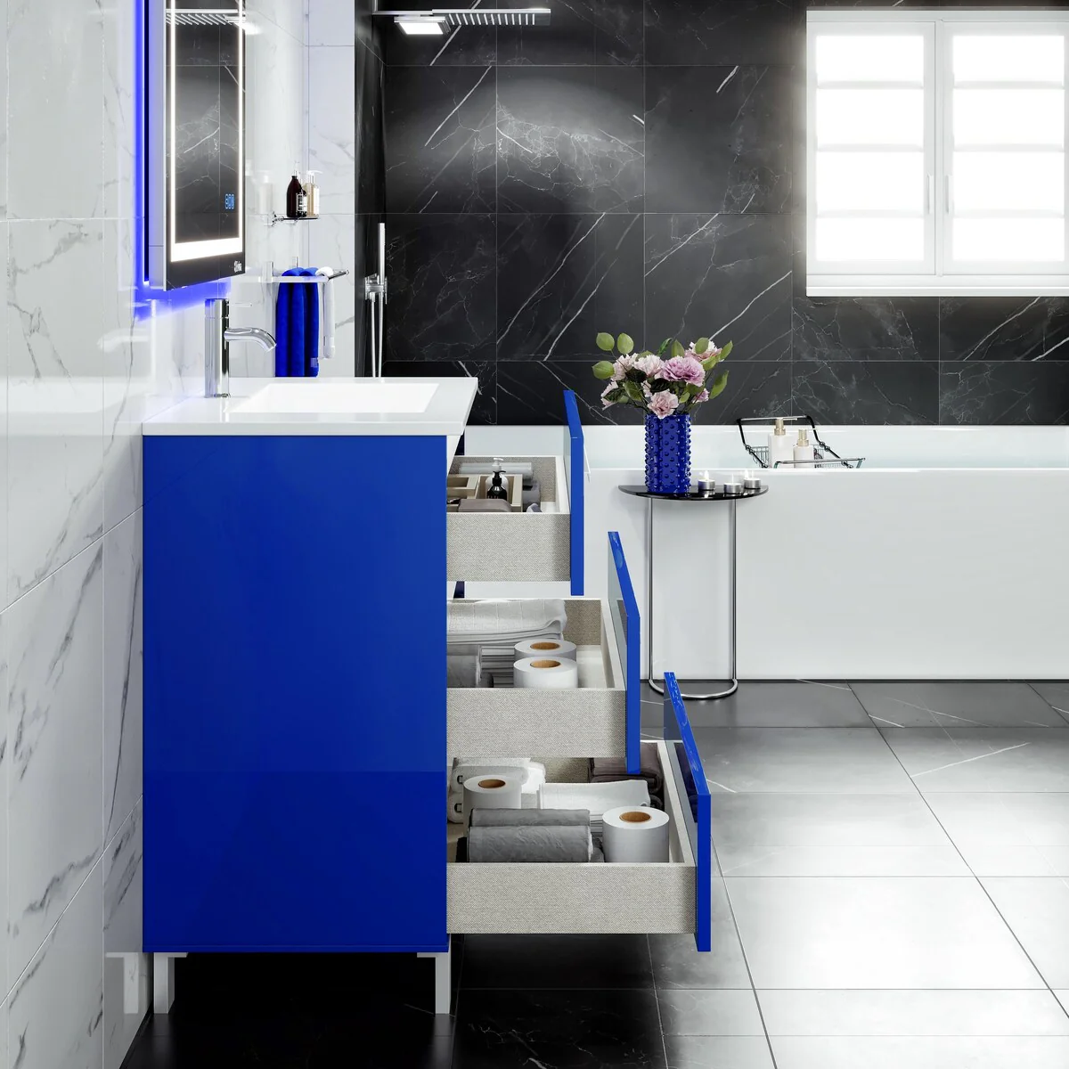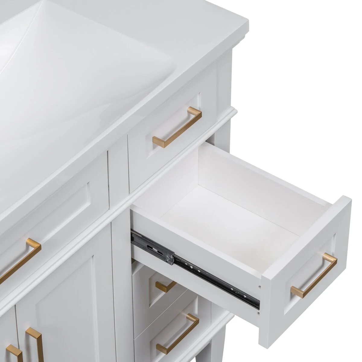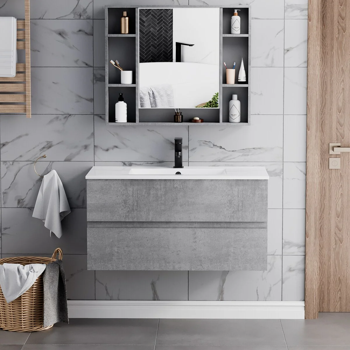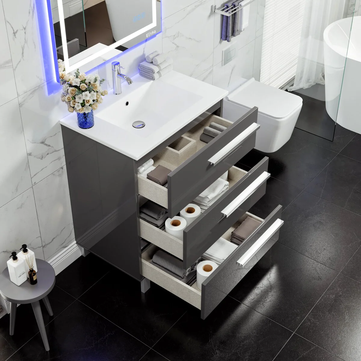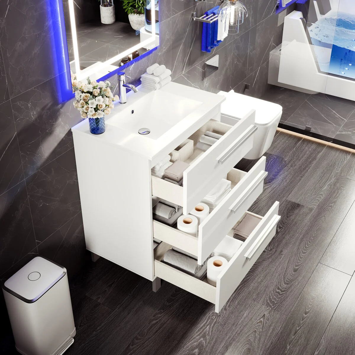 Modern Single Sink Bathroom Vanity Set with Drawers & Mirror Cabinet