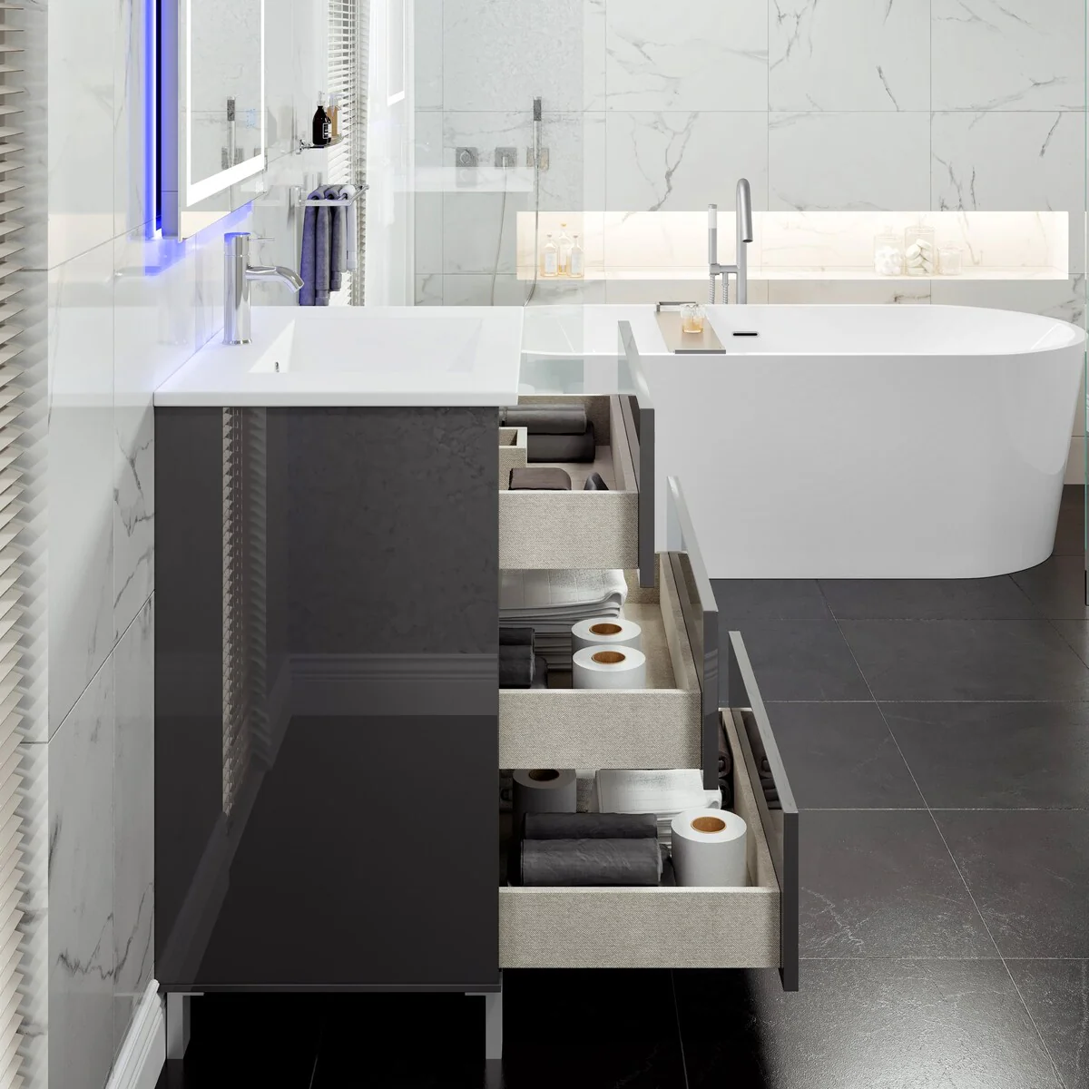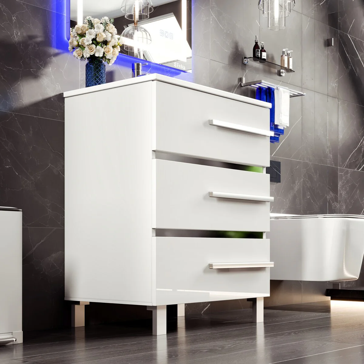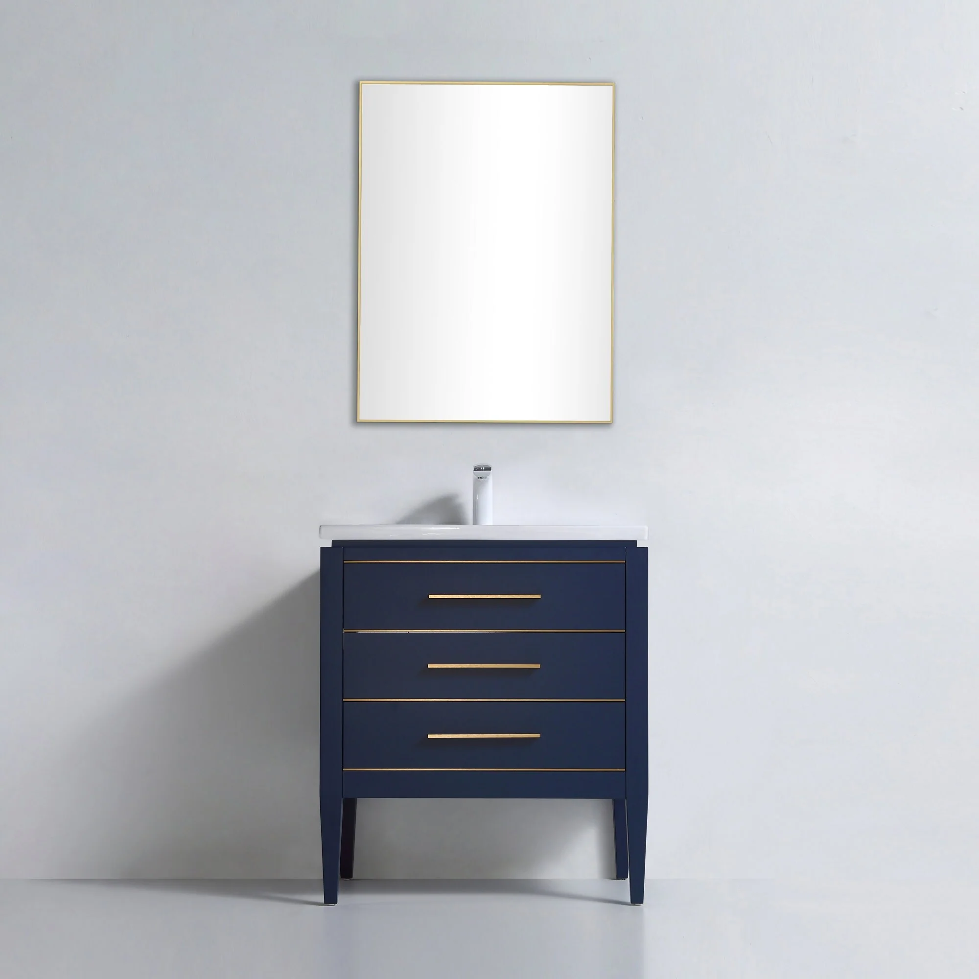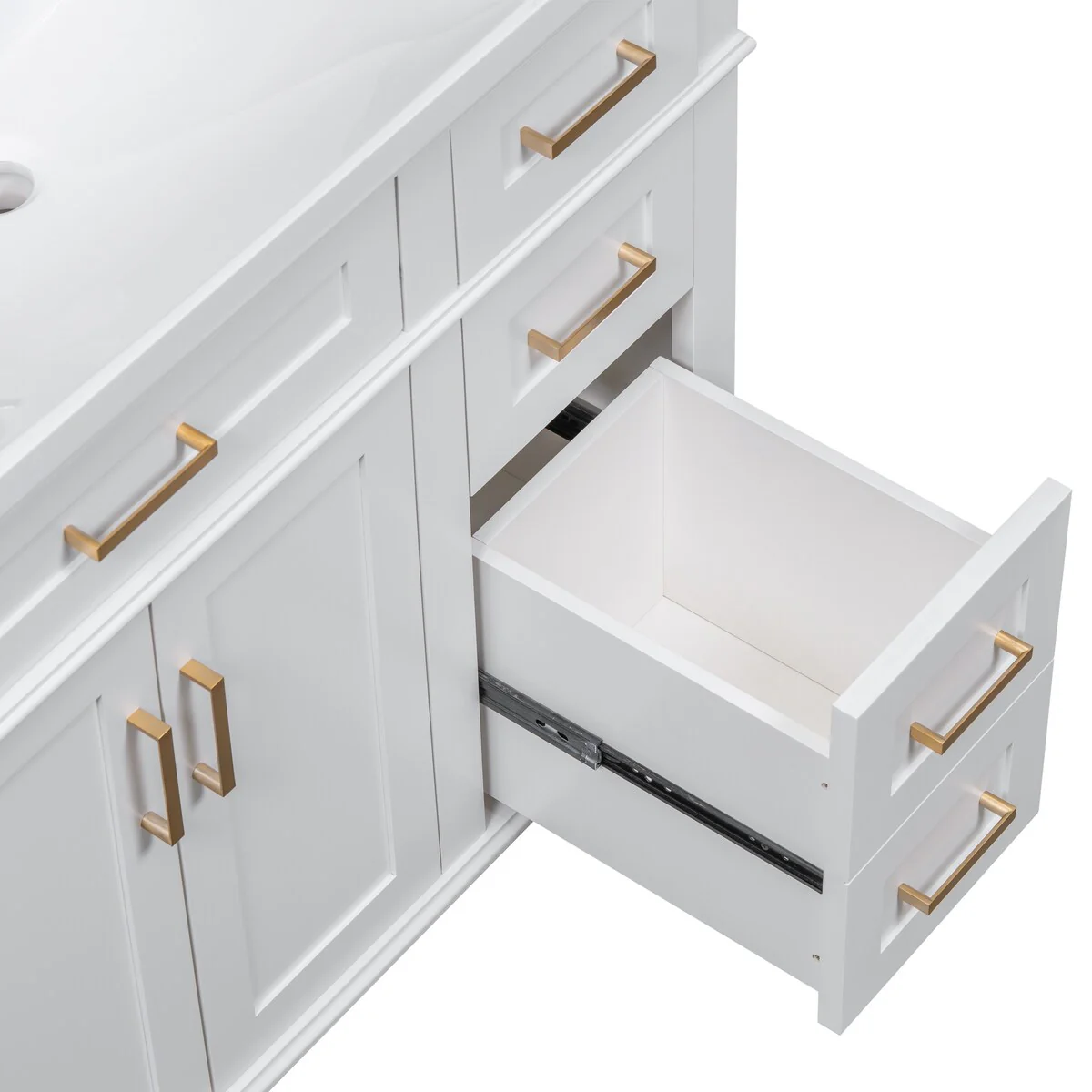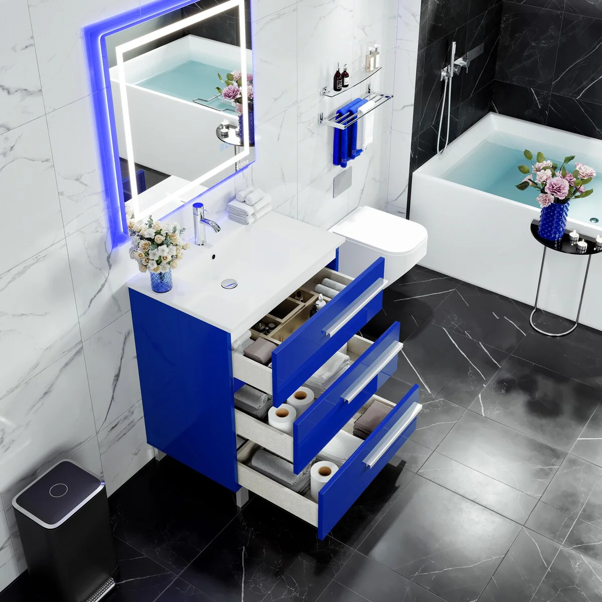 Modern Single Sink Bathroom Vanity Set with Drawers & Mirror Cabinet