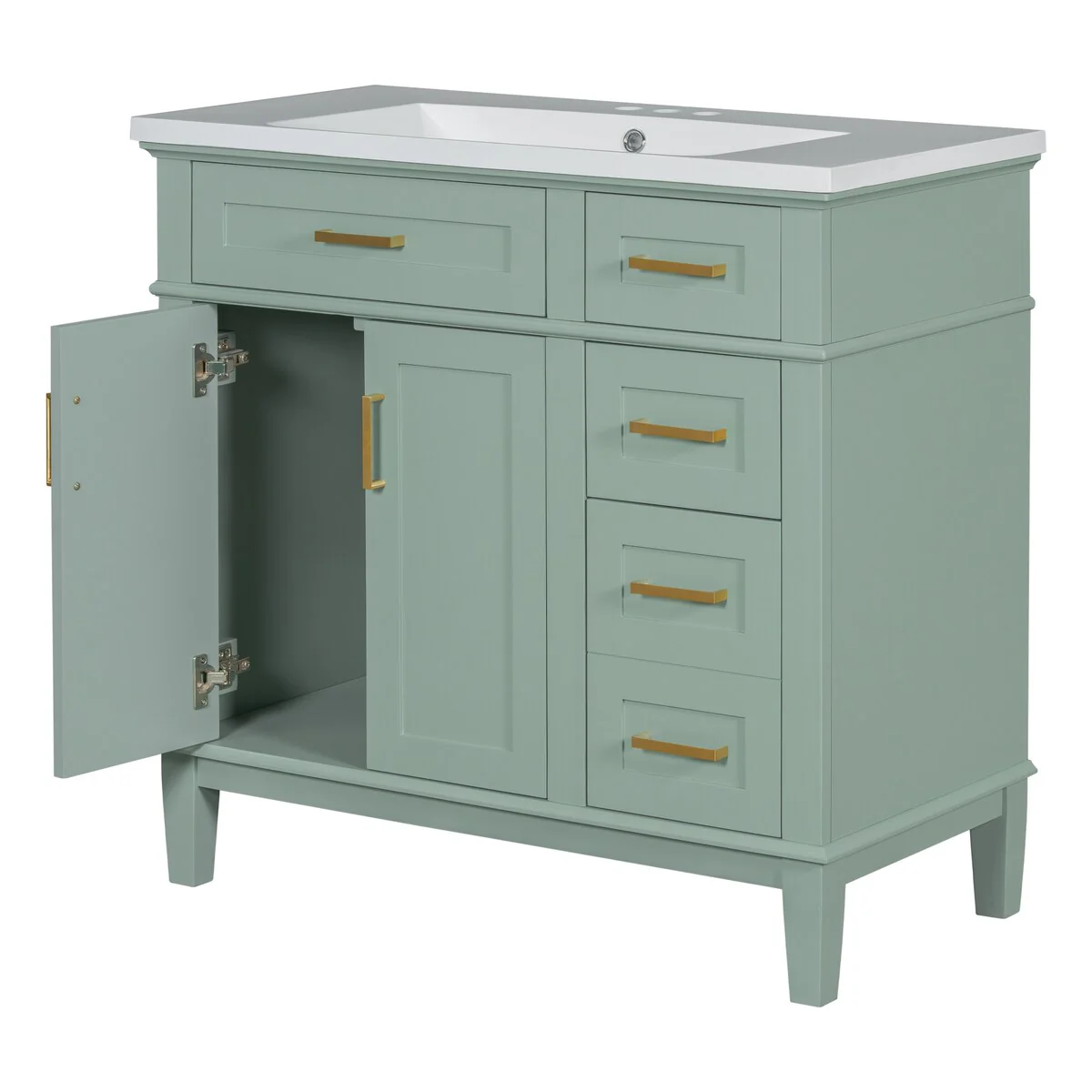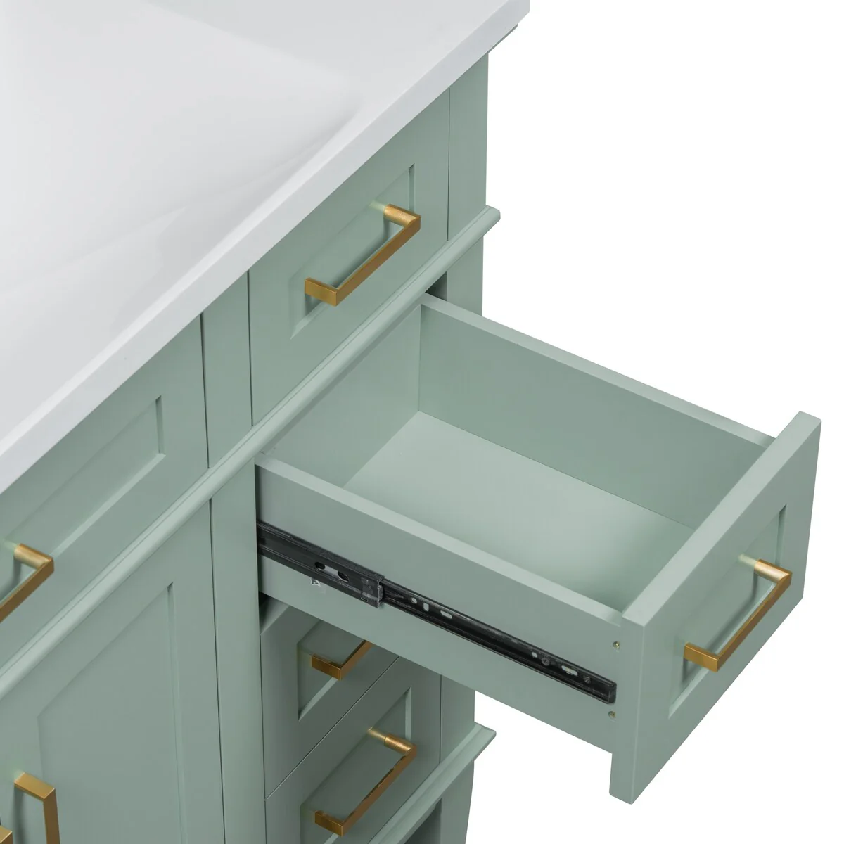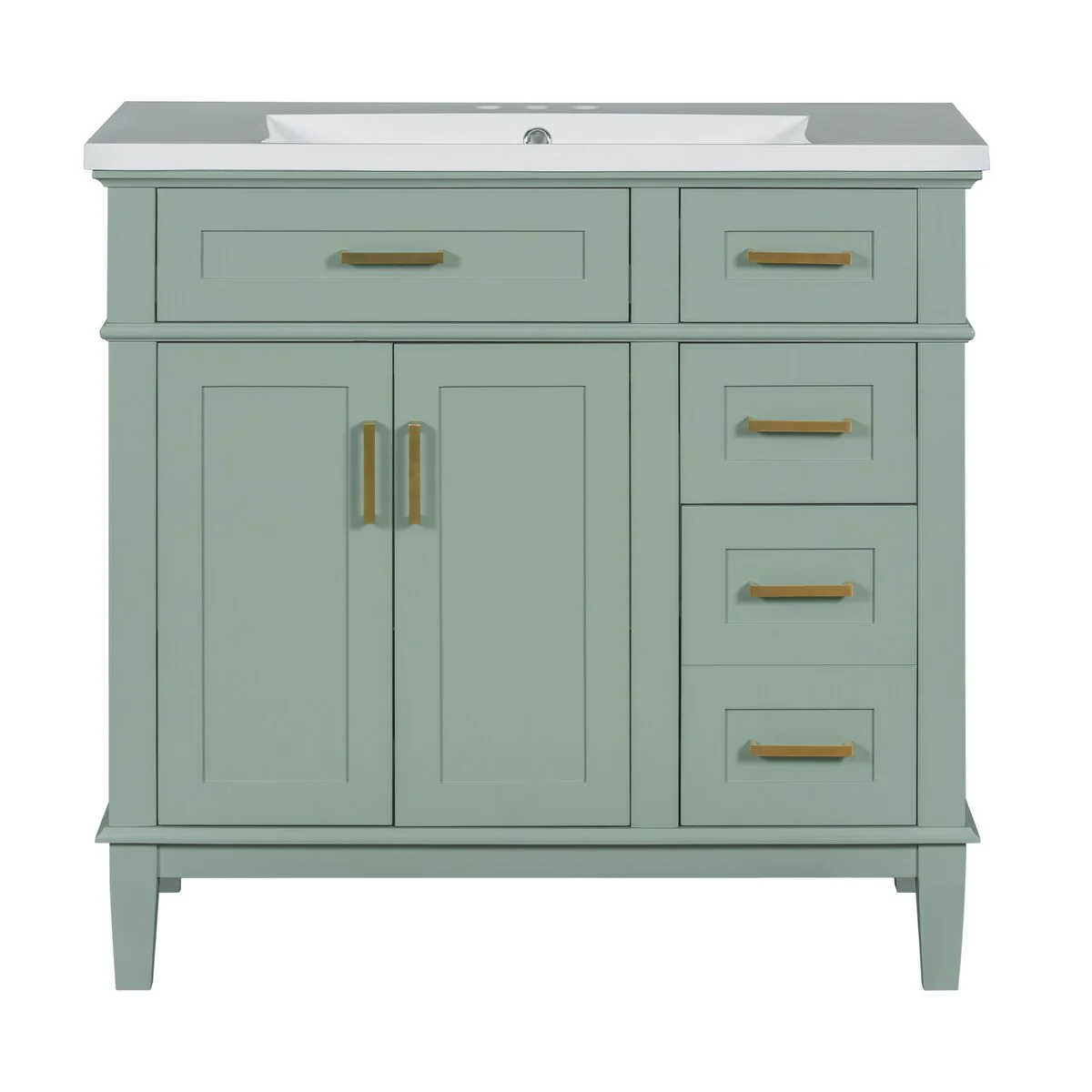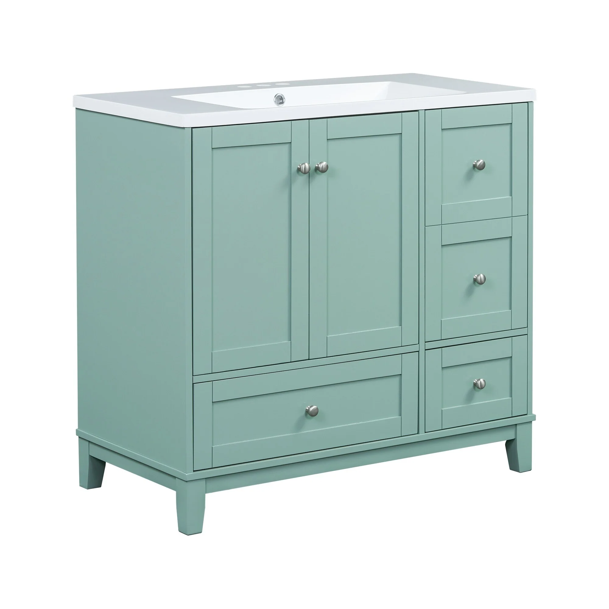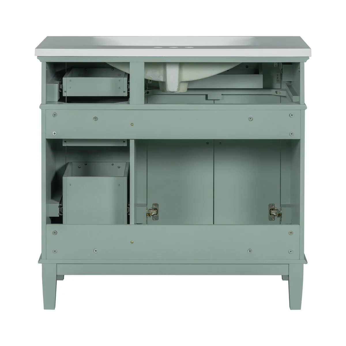 36 Inch Modern Green Bathroom Vanity with USB Charging, Resin Sink, 2 Doors and 3 Drawers