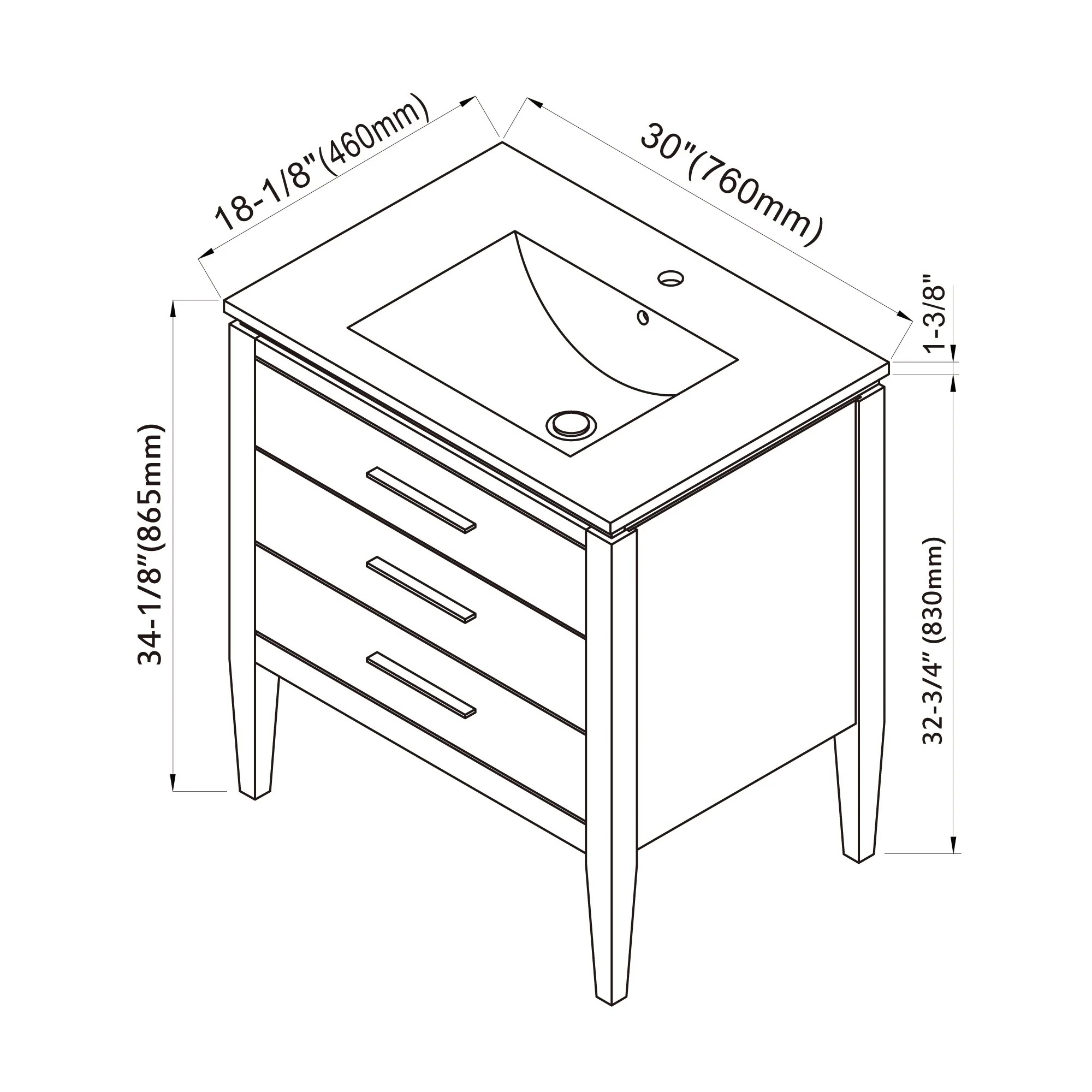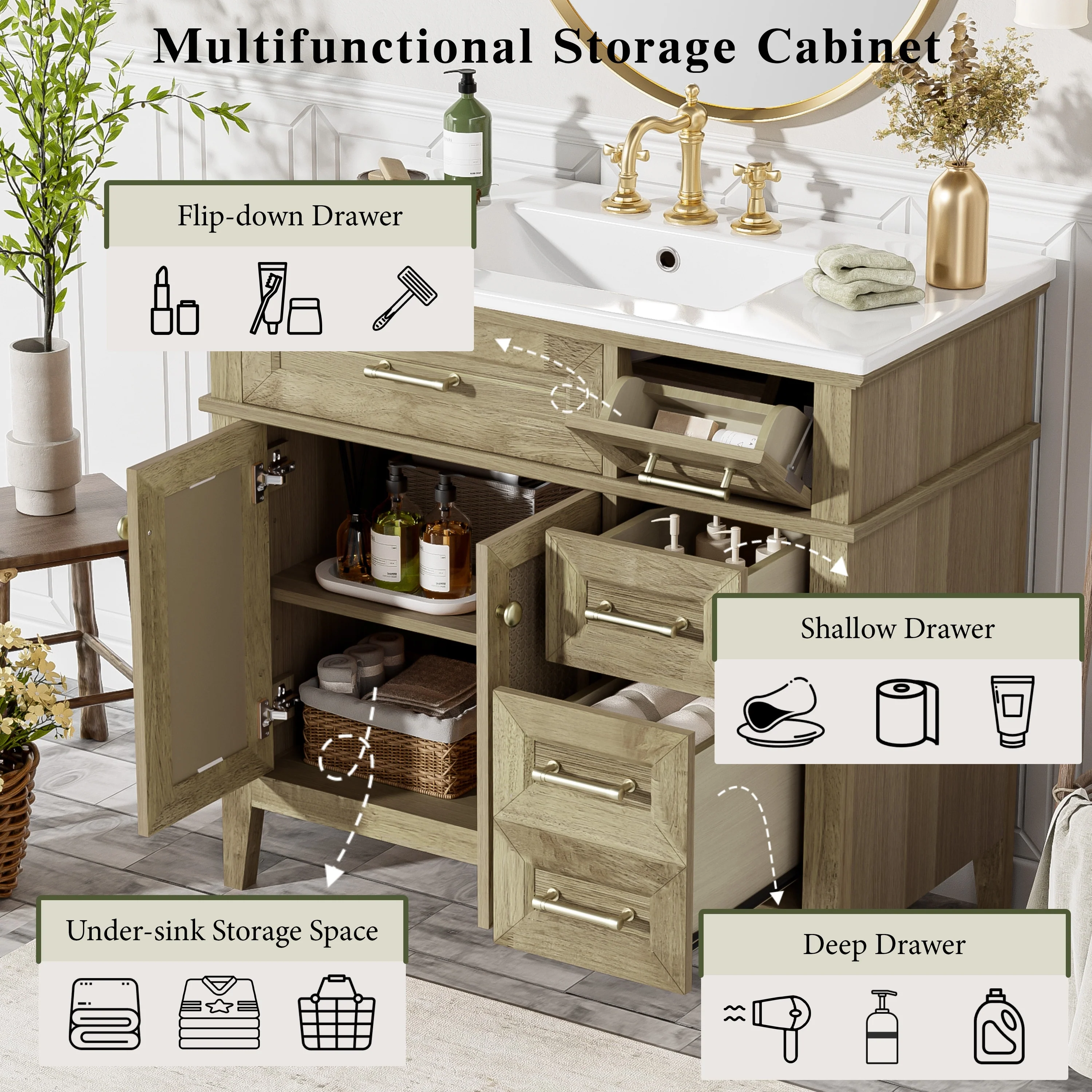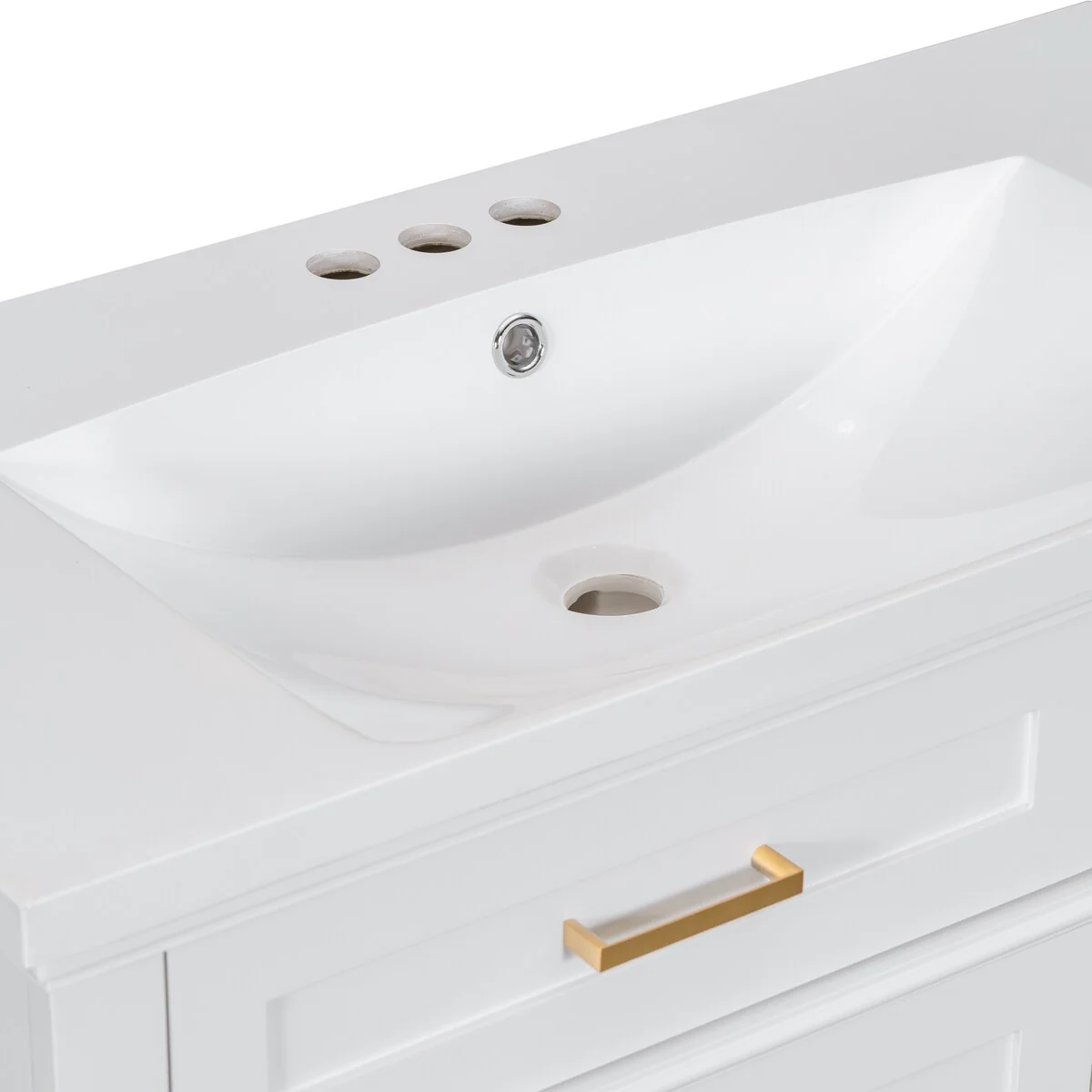30" Bathroom Vanity Cabinet with Sink Combo Set, Bathroom Storage Cabinet with a Soft Closing Door and 3 Drawers, Solid Wood