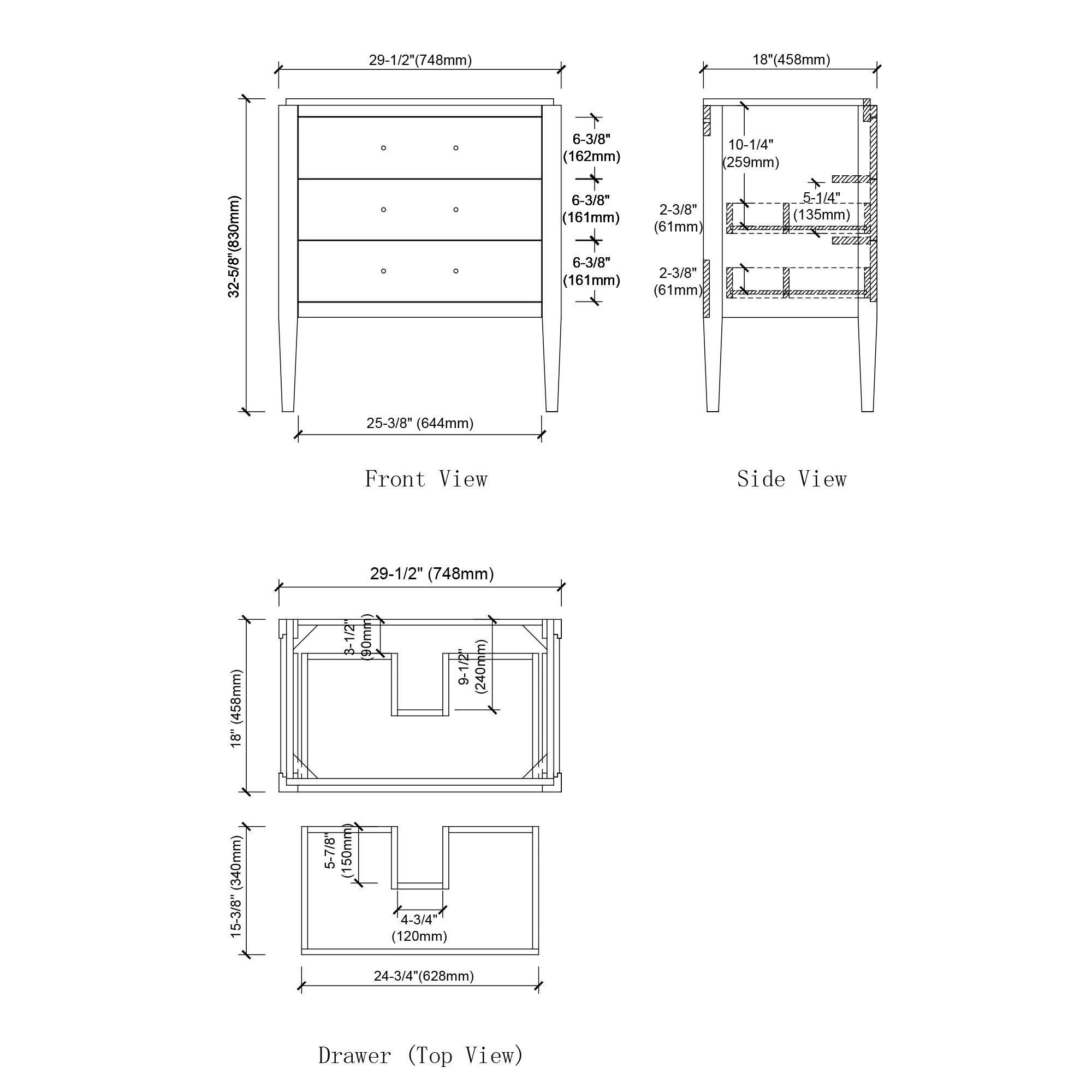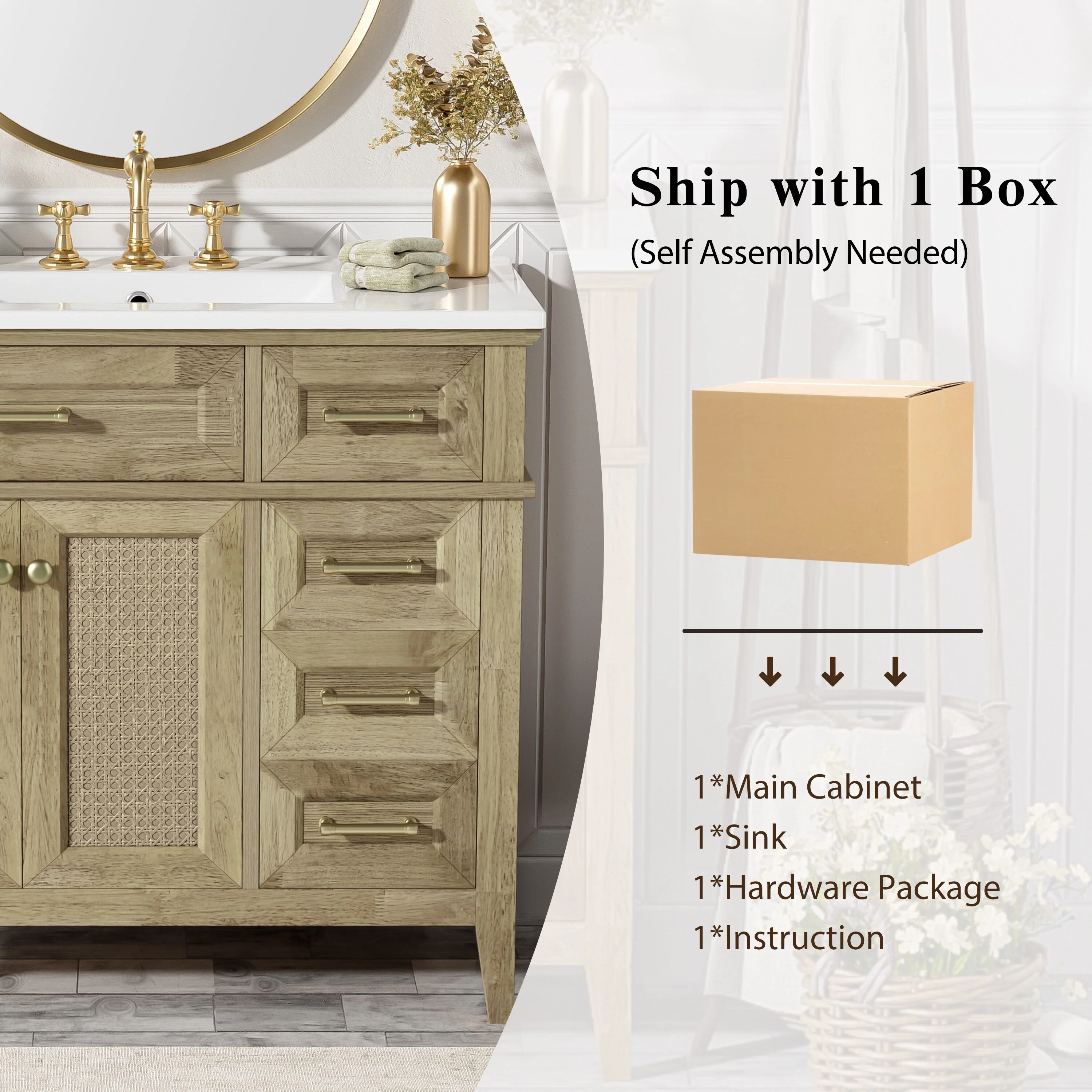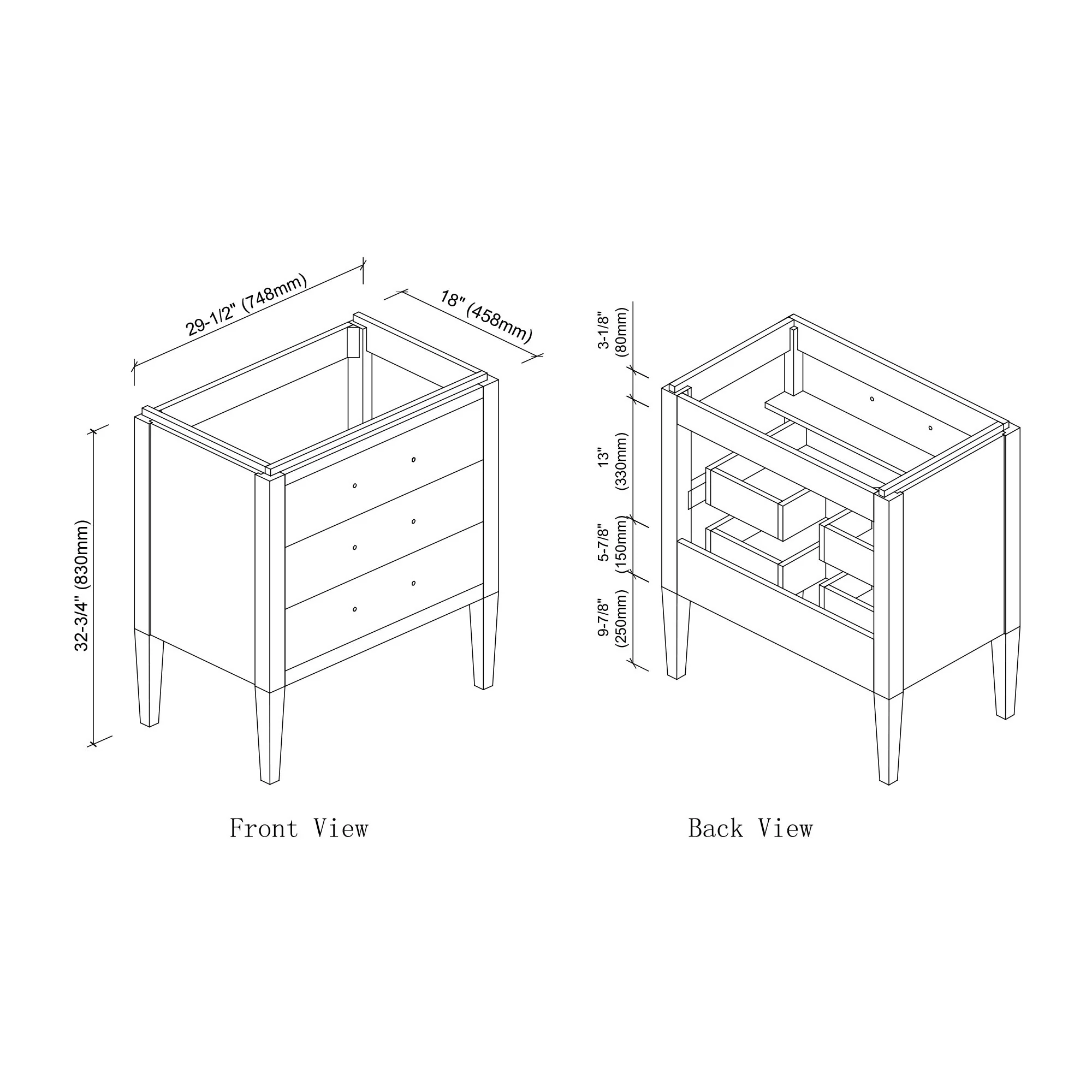 30" Bathroom Vanity Cabinet with Sink Combo Set, Bathroom Storage Cabinet with a Soft Closing Door and 3 Drawers, Solid Wood