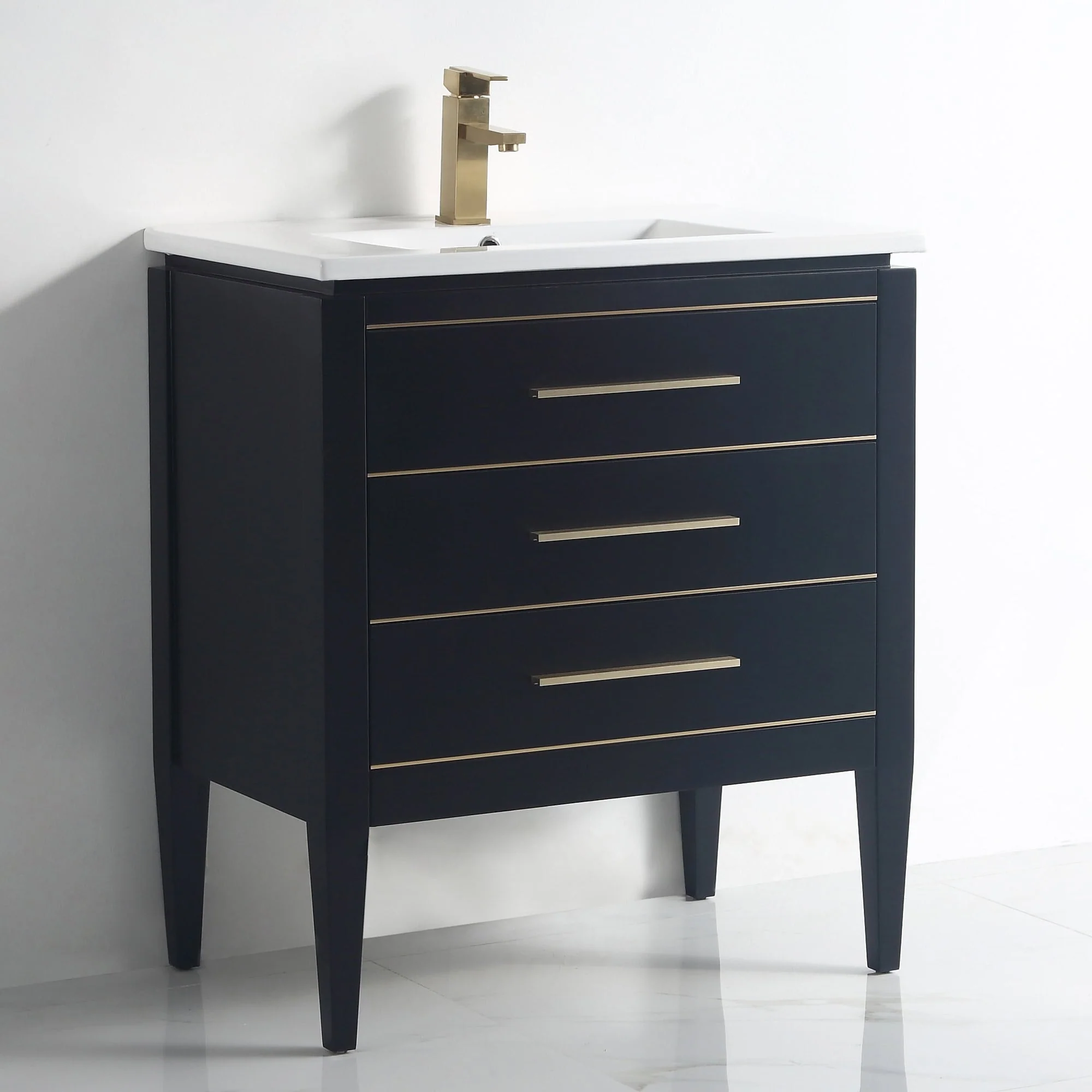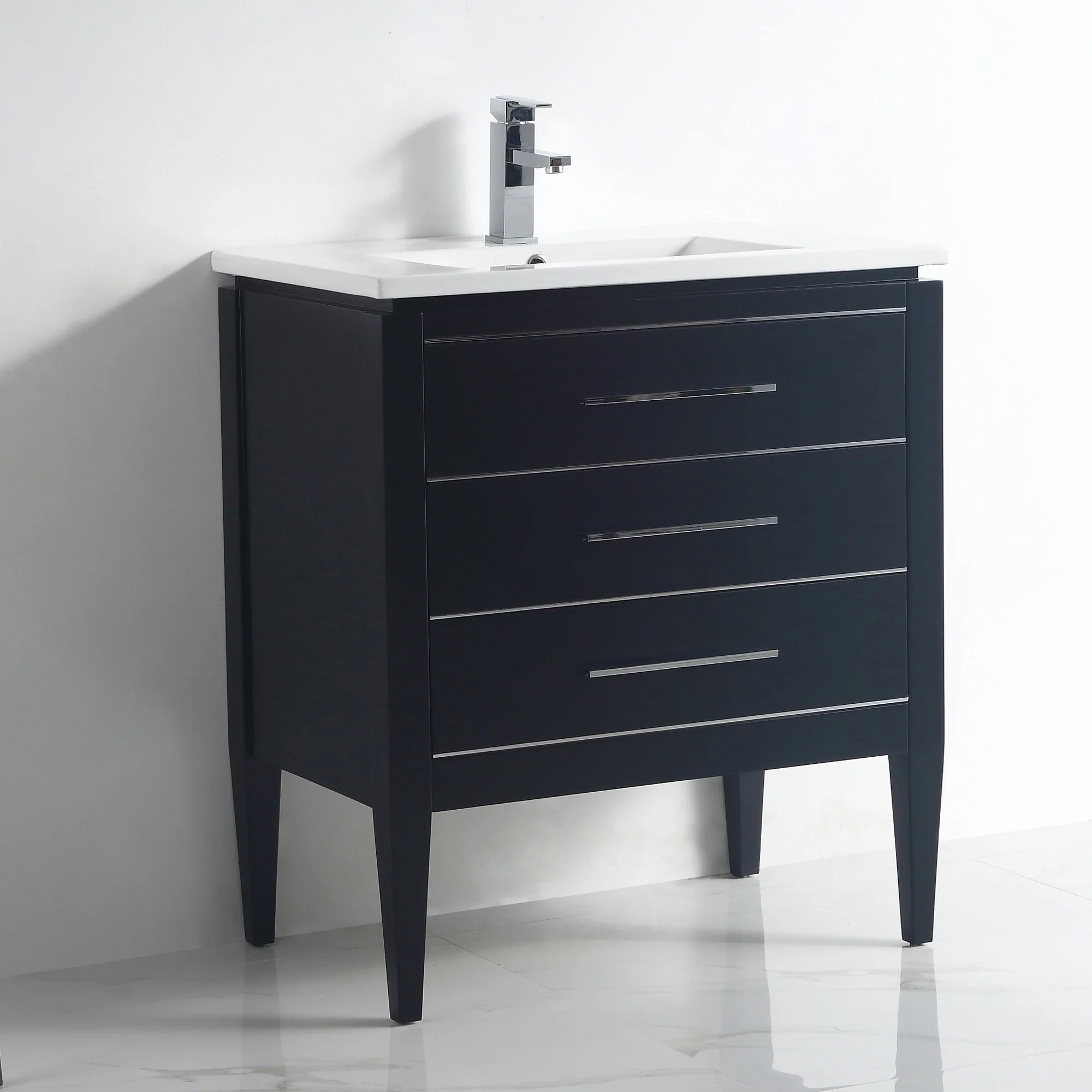Eviva Deluxe 32"W Bath Vanity with WH Porcelain Integrated Sink