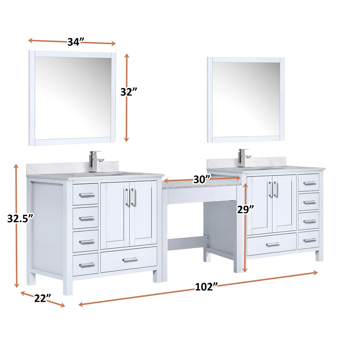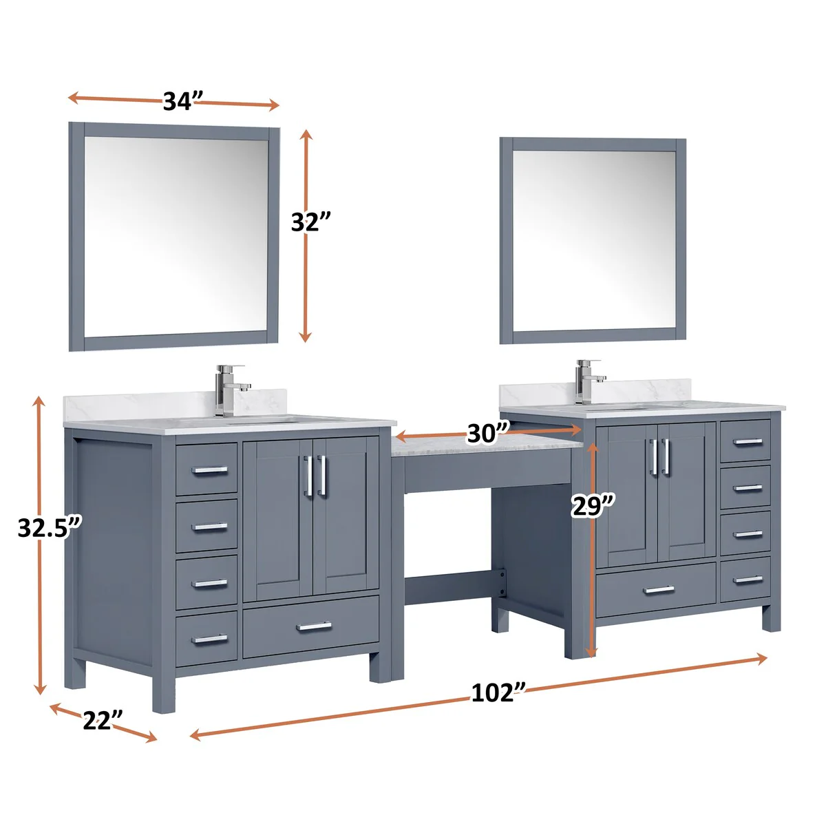 Sheffield 80-inch Double Vanity, 3 Hole Quartz Top
