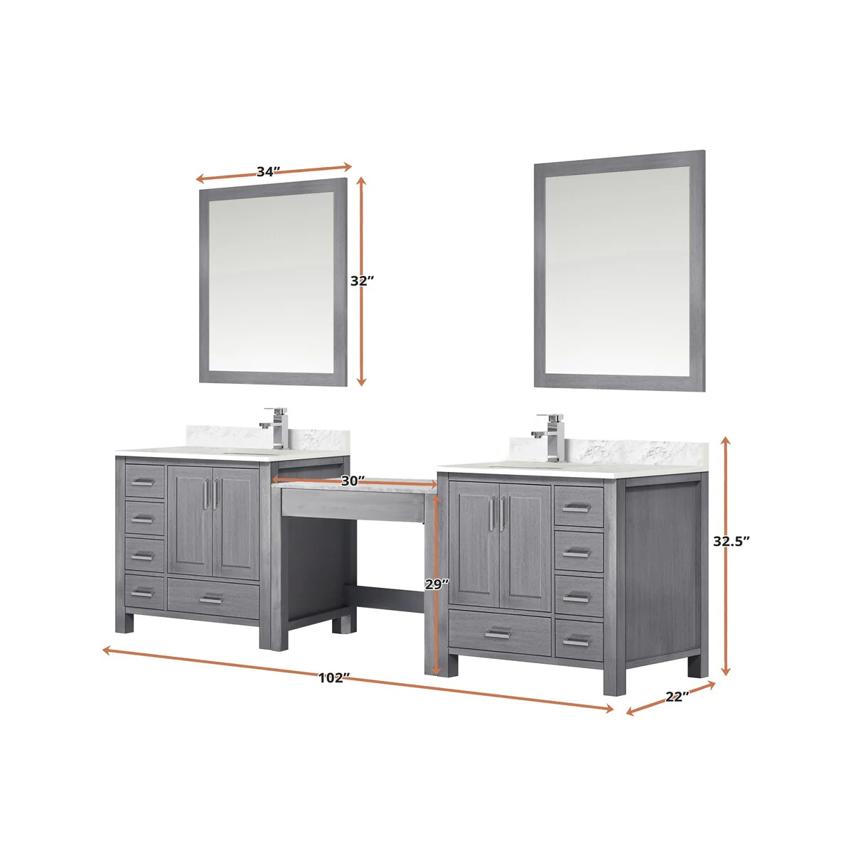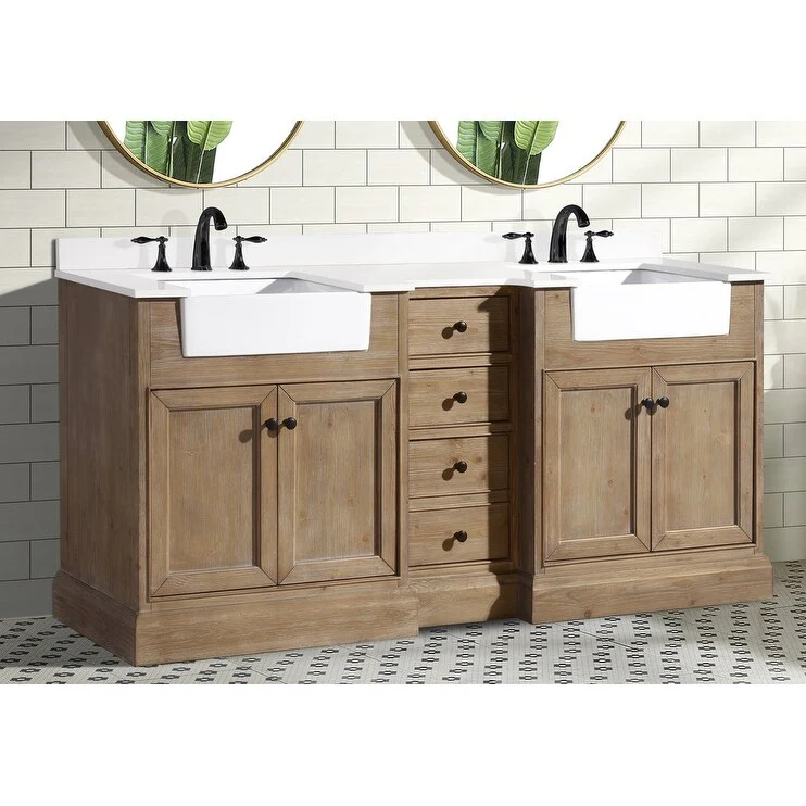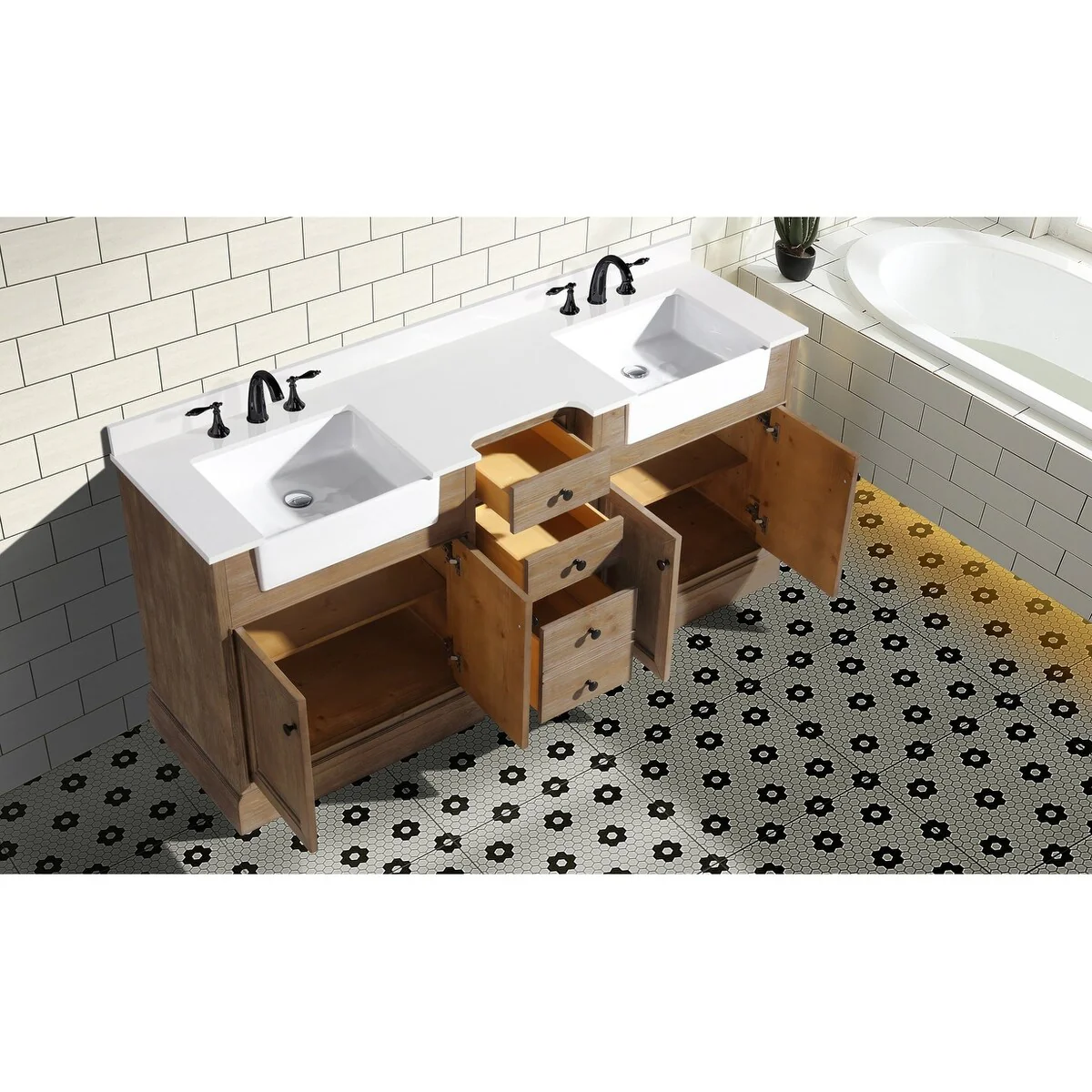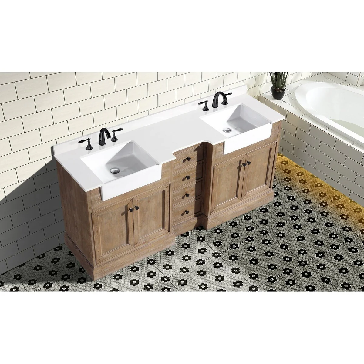 Ari Bath, Kelly 72" Bathroom Vanity, Weathered Fir, White Top