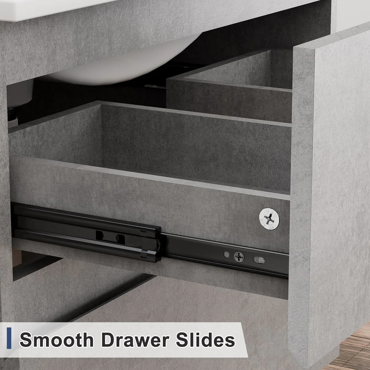 Wall Mounted Bathroom Vanity Sink Combo Cabinet Vanity Set Beveled Invisible Handles