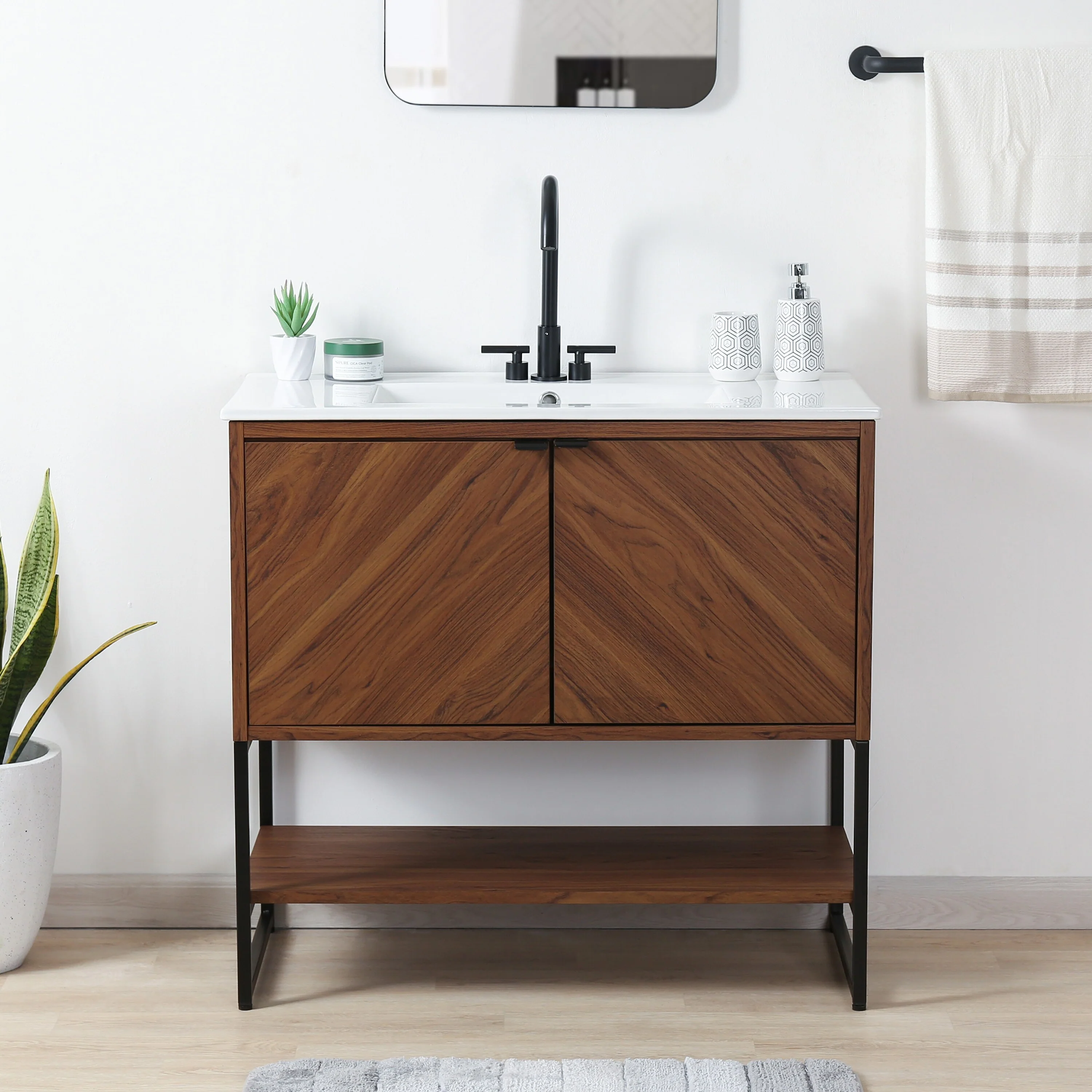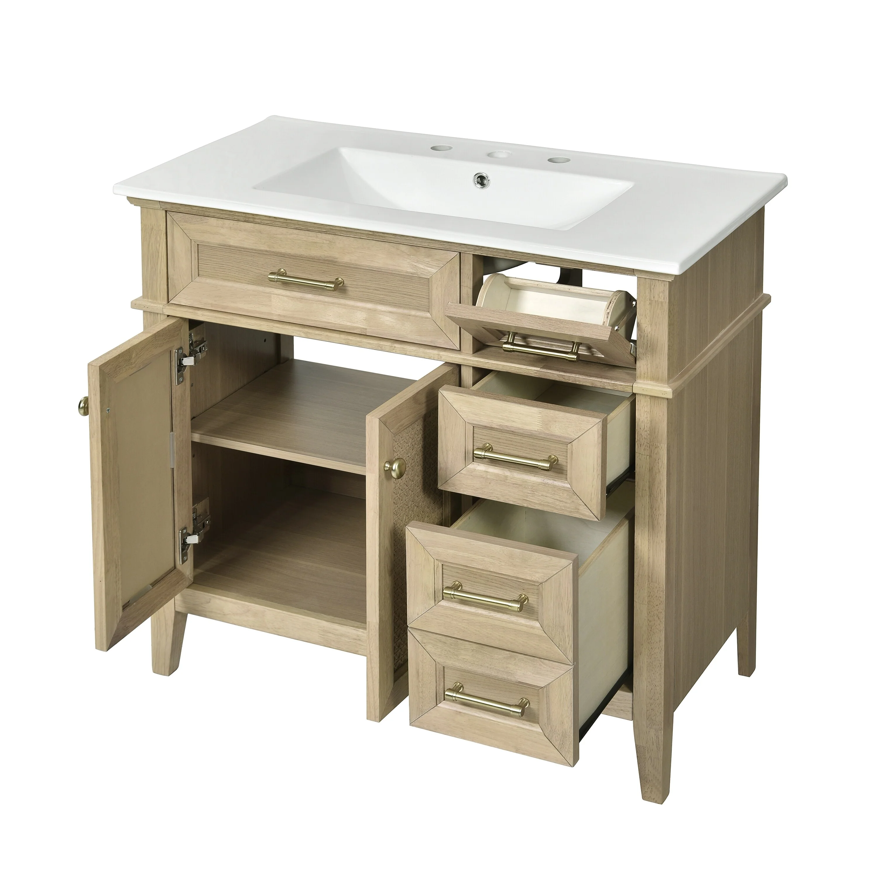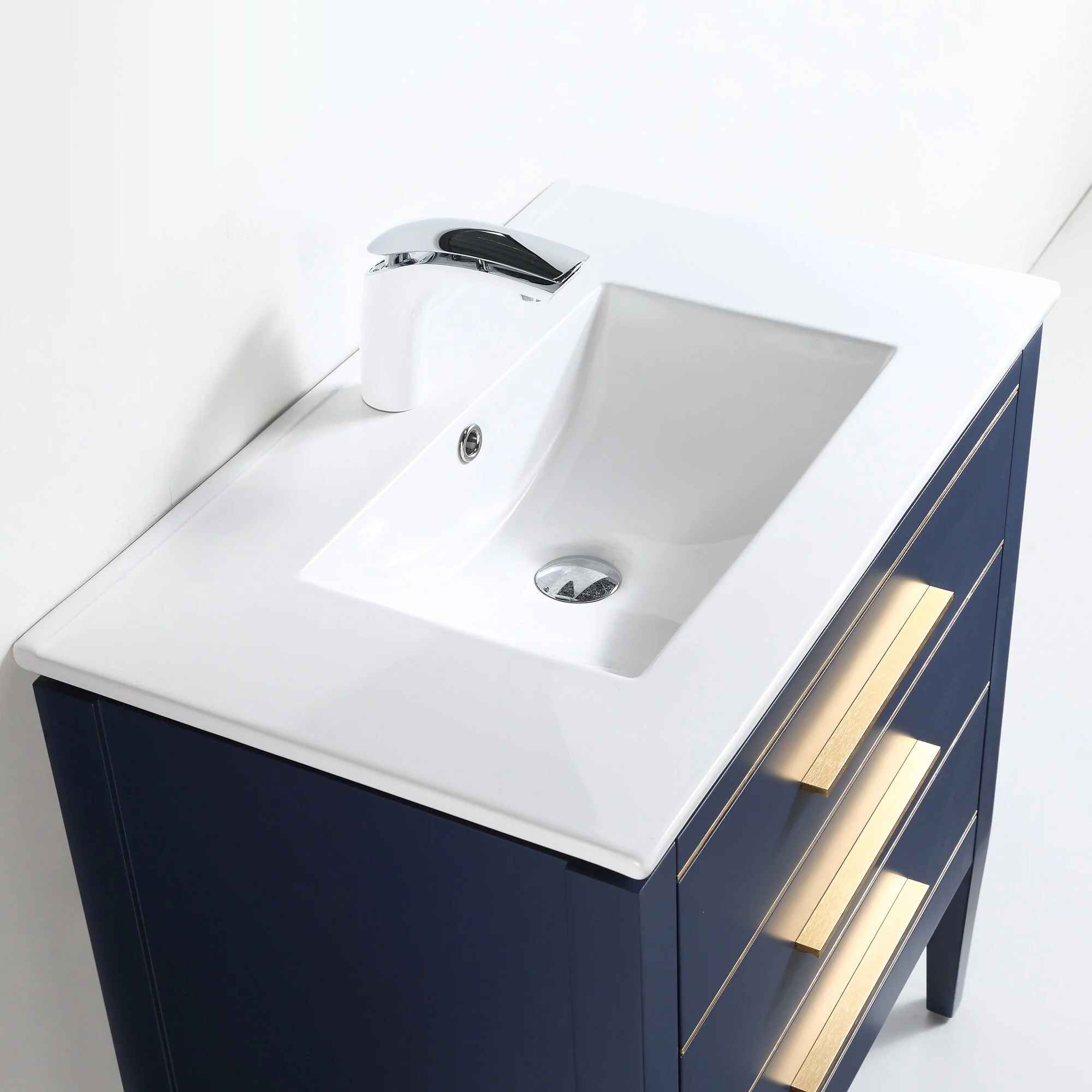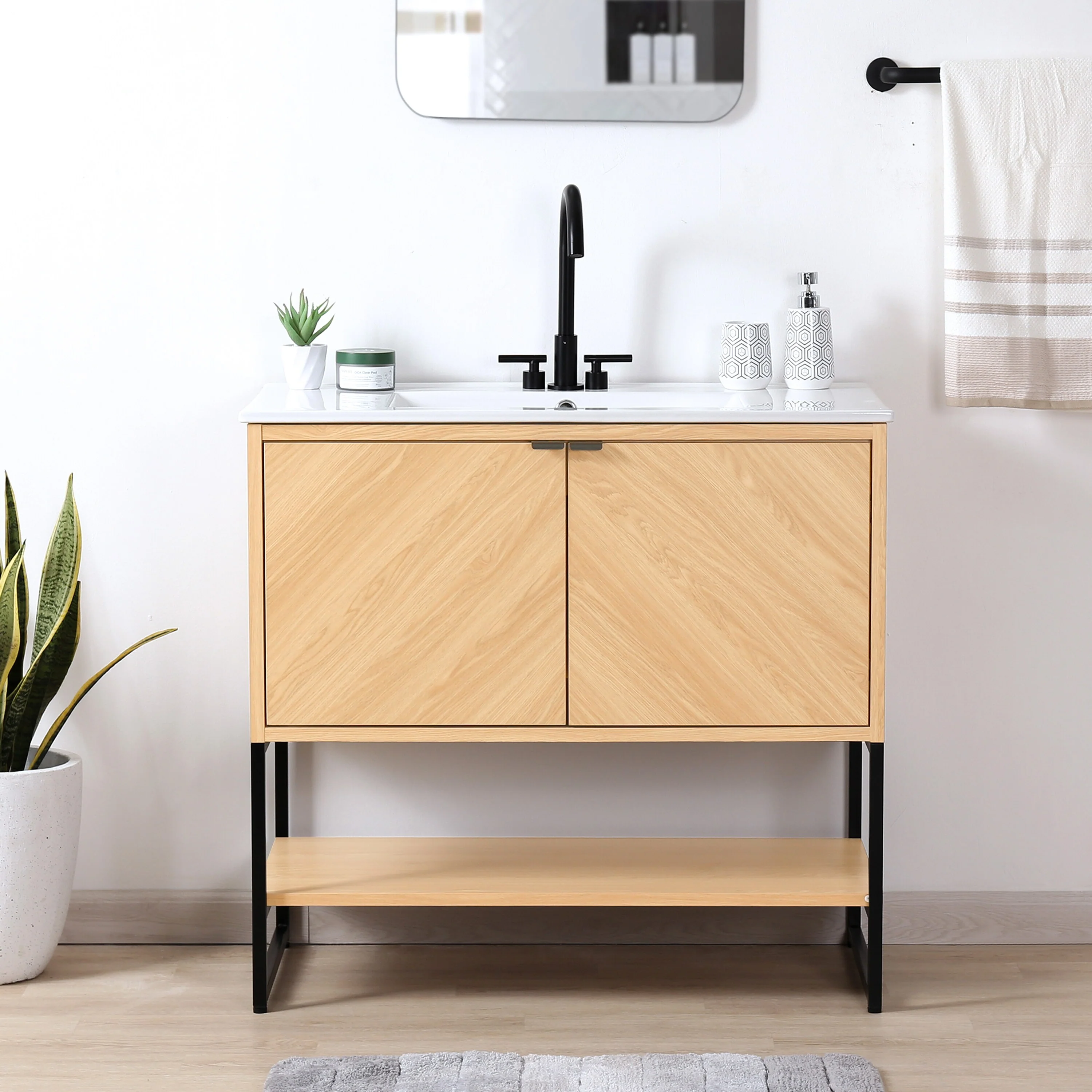 24" Modern Solid Wood Bathroom Vanity with Ceramic Sink and Open Style Shelf