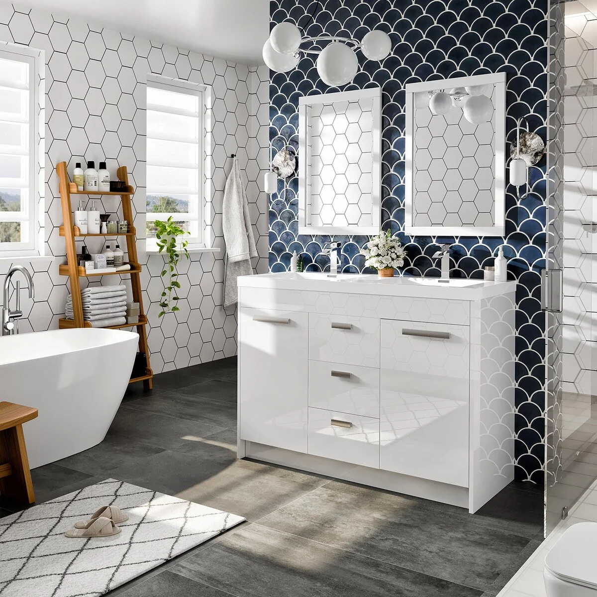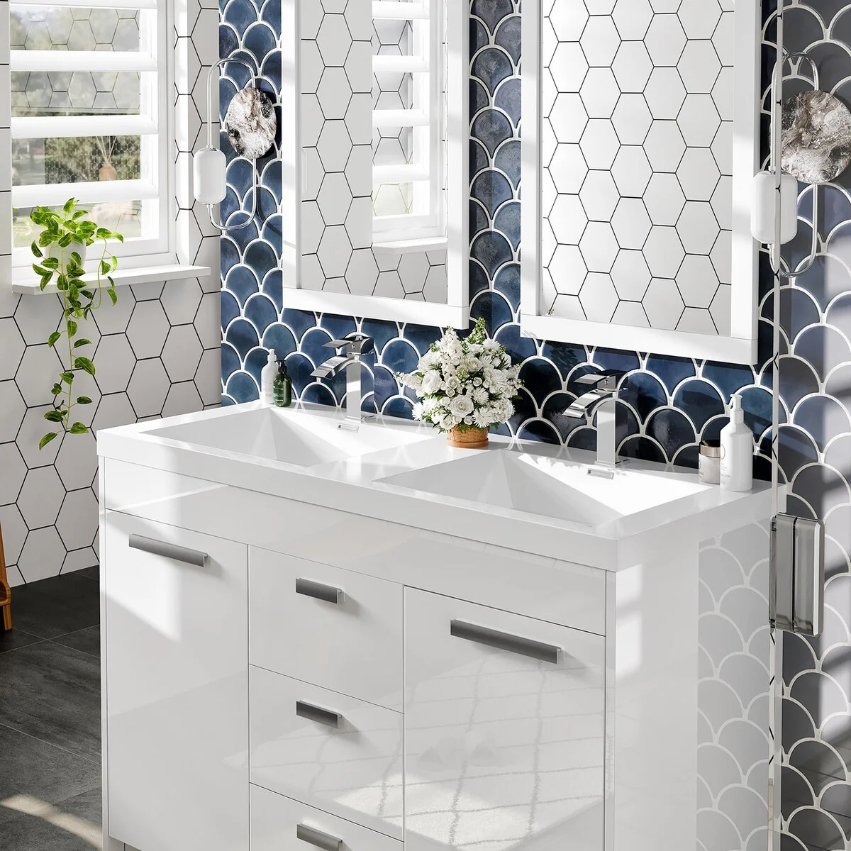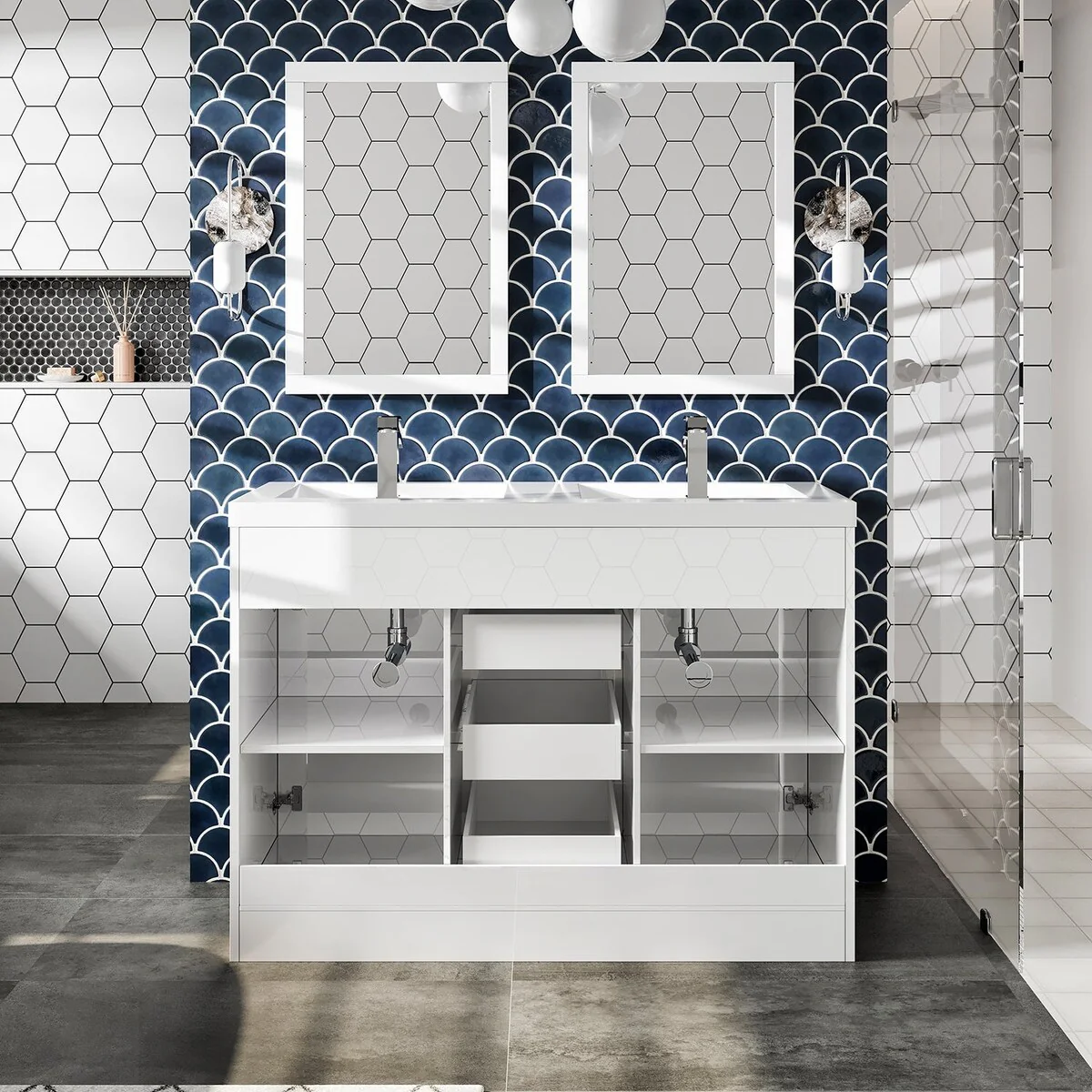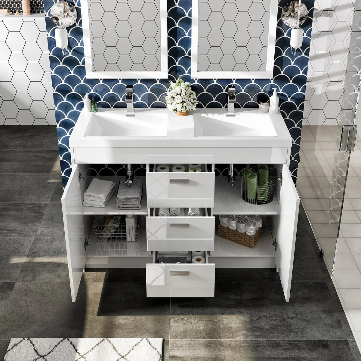 Eviva Lugano 48" White Modern Double Sink Bathroom Vanity w/ White Integrated Top