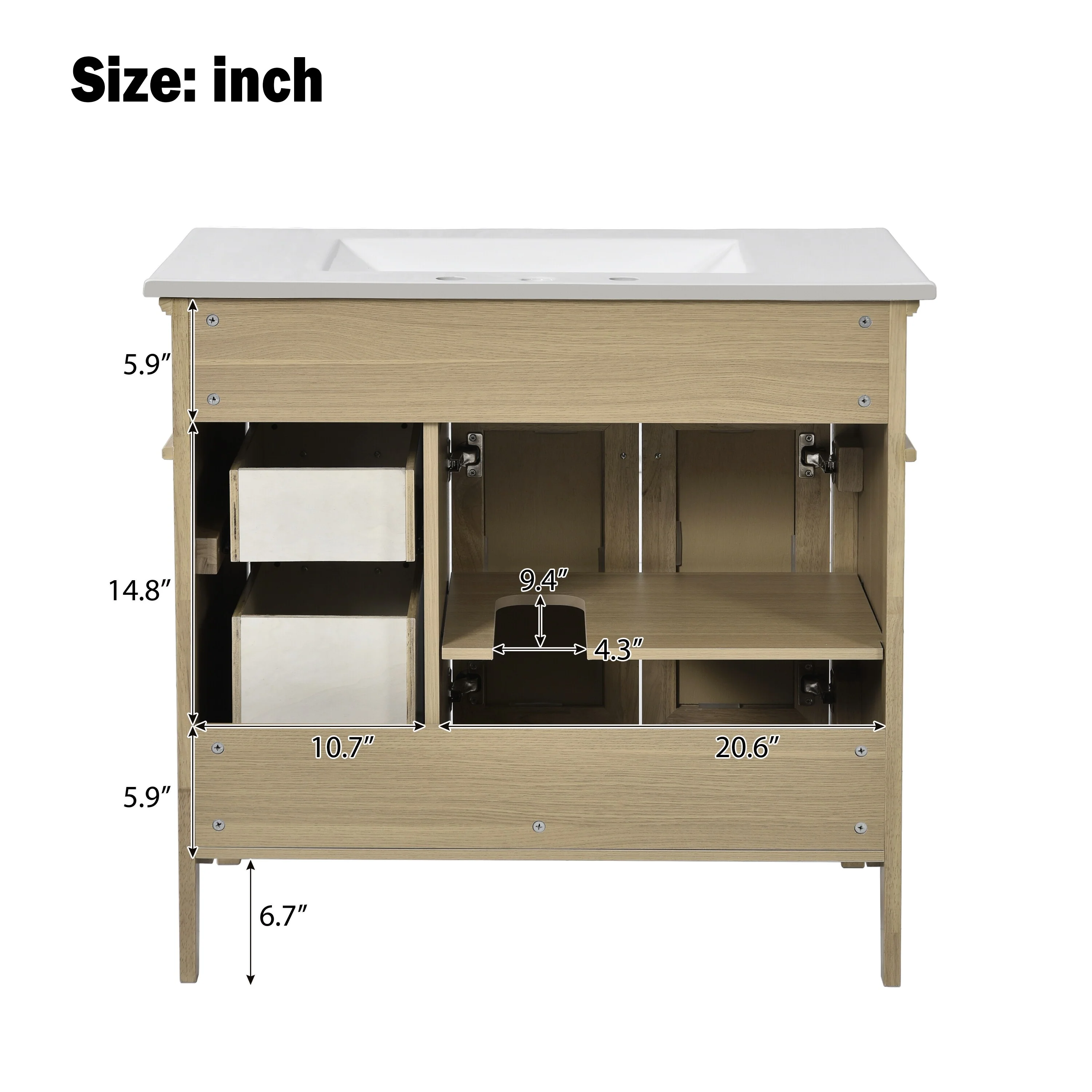 Chateau 36" Bathroom Vanity In Natural Oak - Cabinet