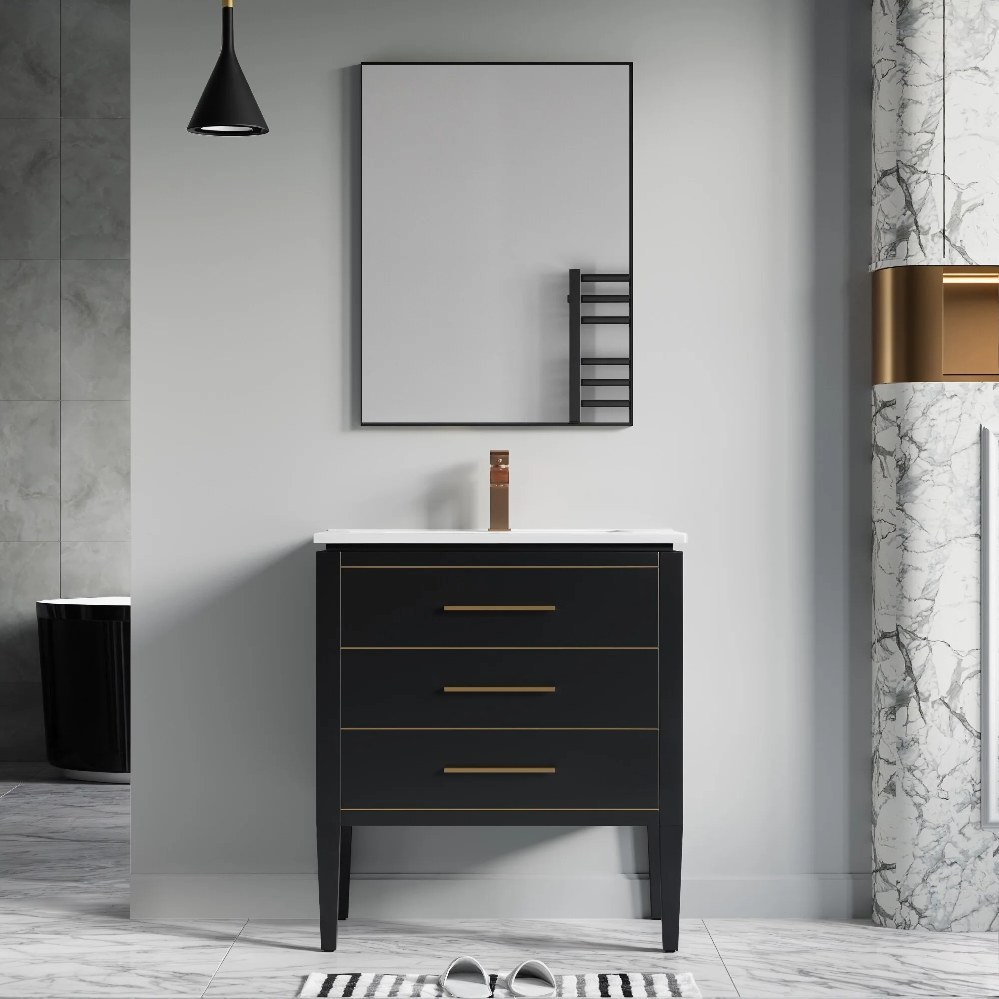 TEHOME Hussin 30'' Free-standing Single Bathroom Vanity with Carrara Marble Vanity Top
