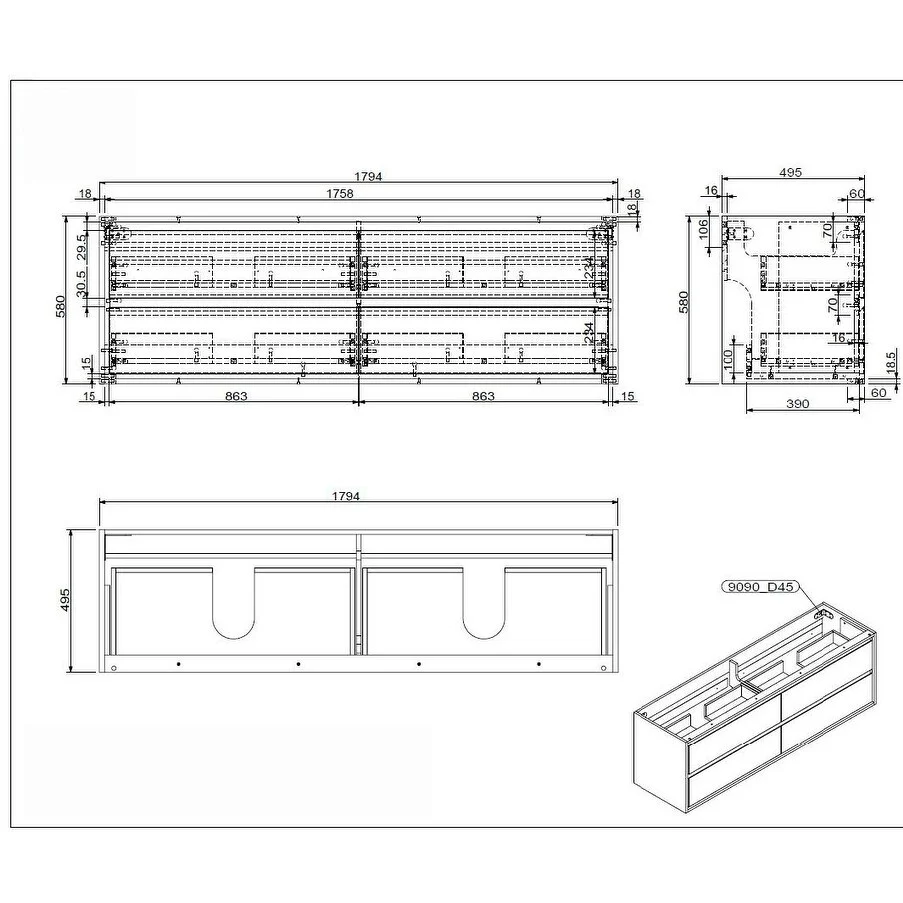 Capri 2D 60 Floating Bathroom Vanity (24" Width)