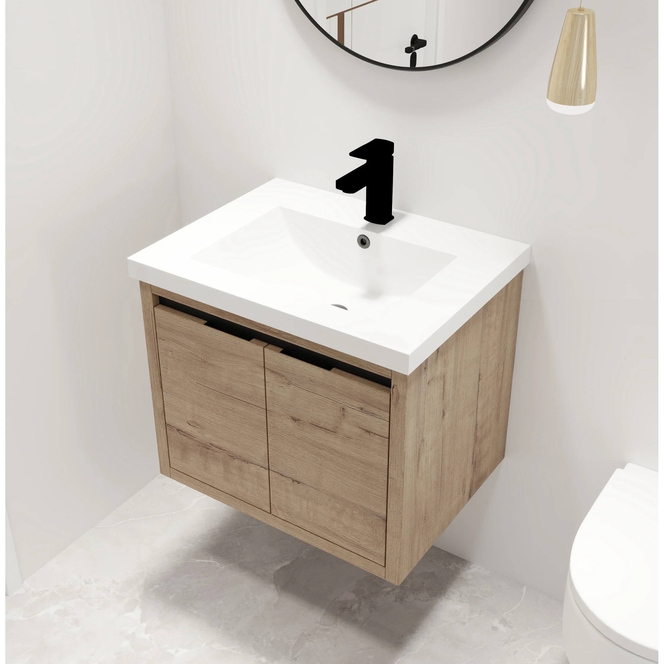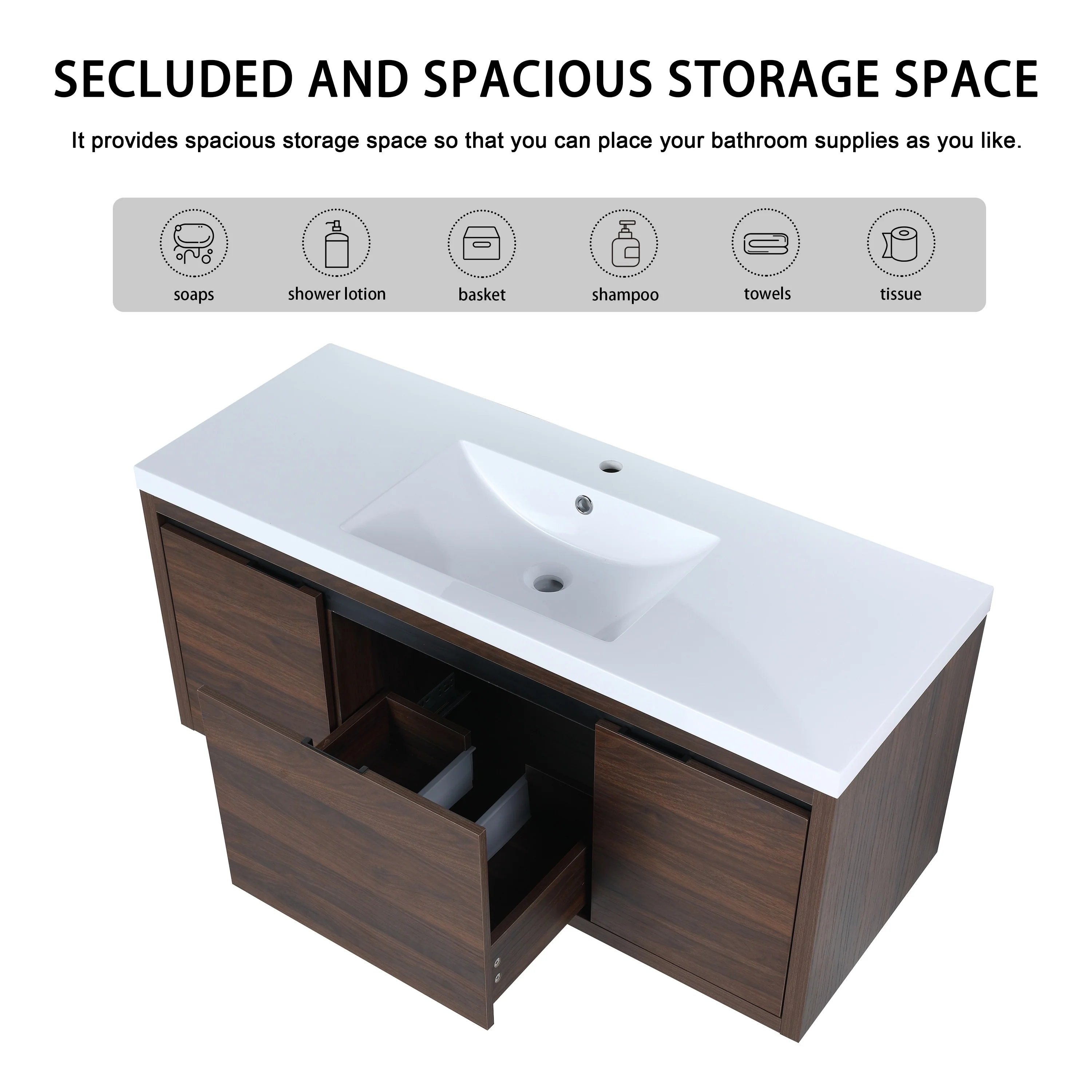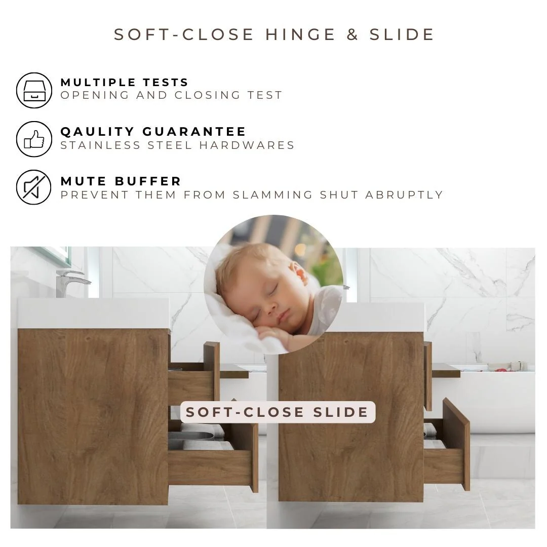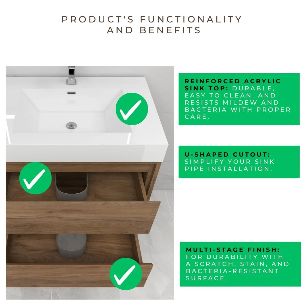 Malwee 24"/48" Floating Bathroom Vanity, Modern Wall Mounted Bathroom Vanity, Single with Resin Top and Soft Close Door