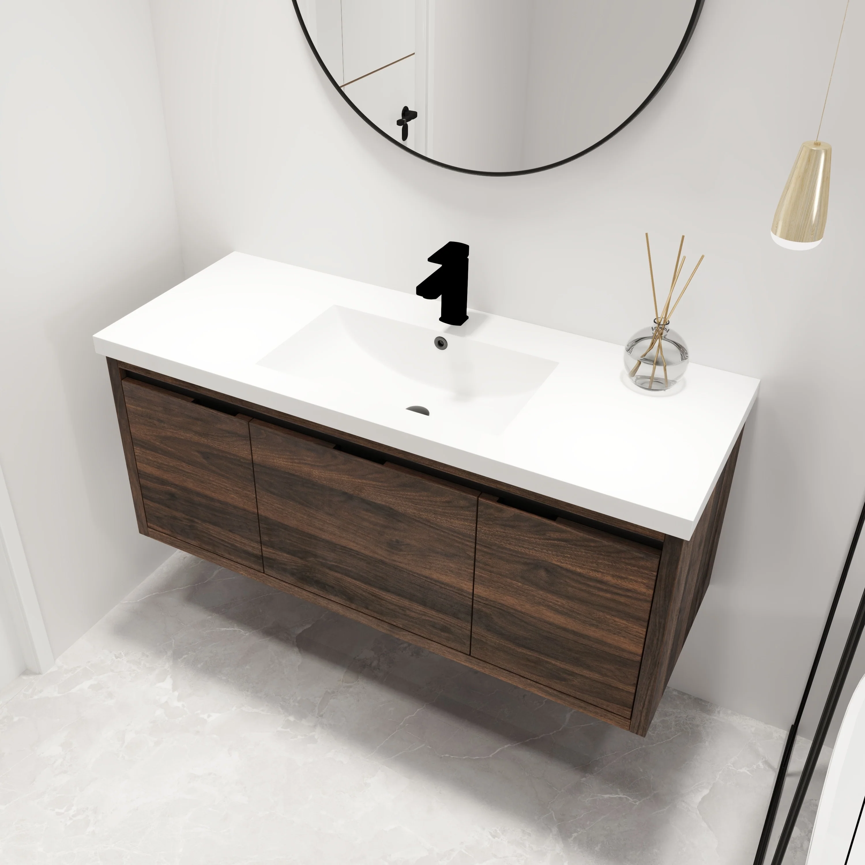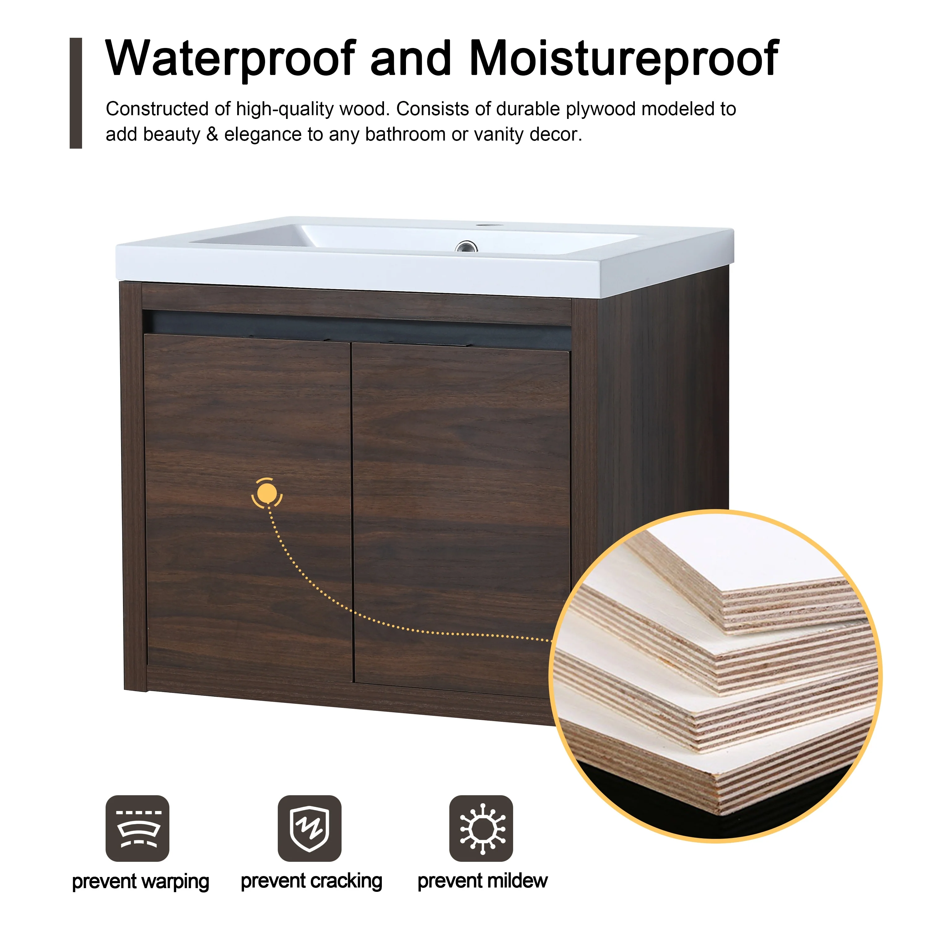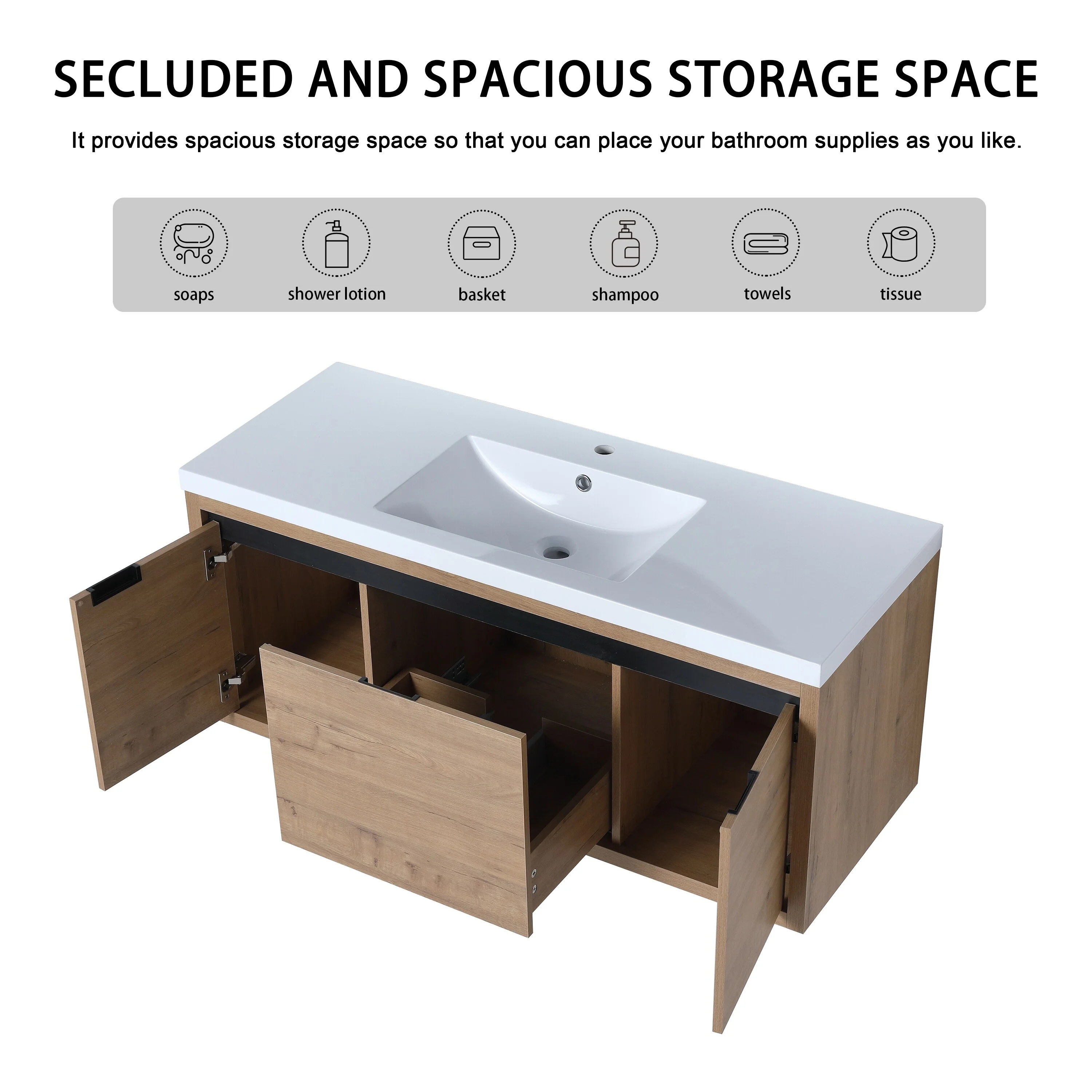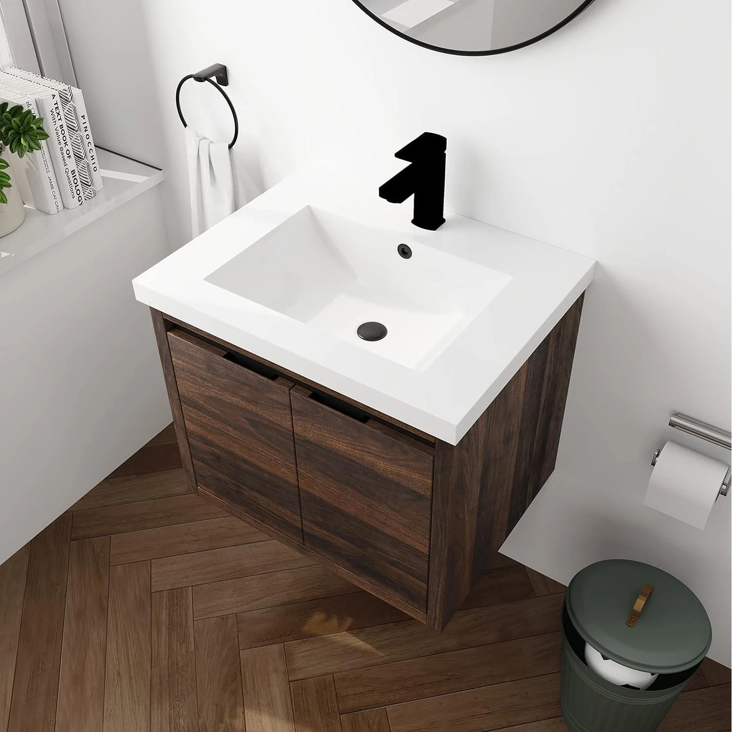Malwee 24"/48" Floating Bathroom Vanity, Modern Wall Mounted Bathroom Vanity, Single with Resin Top and Soft Close Door