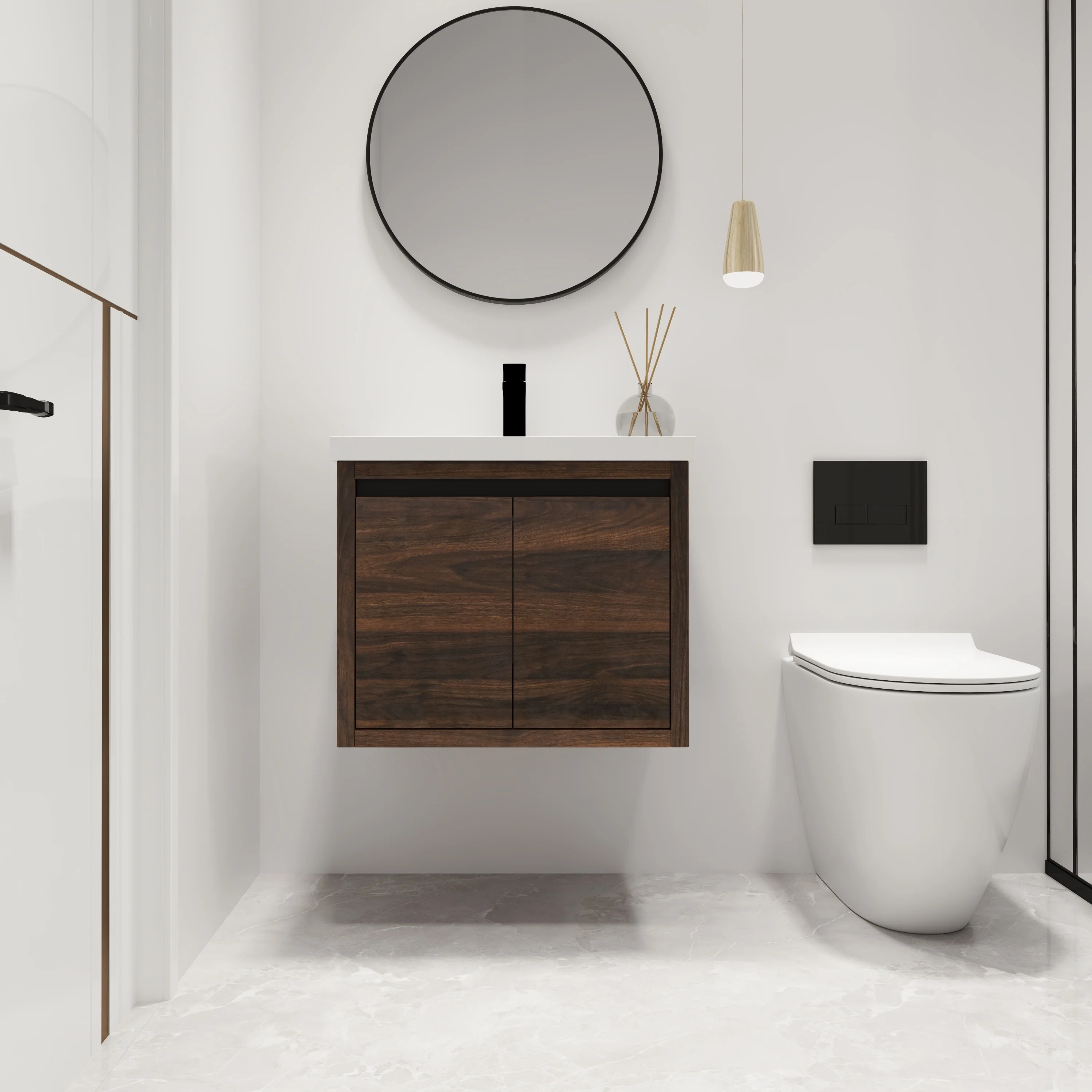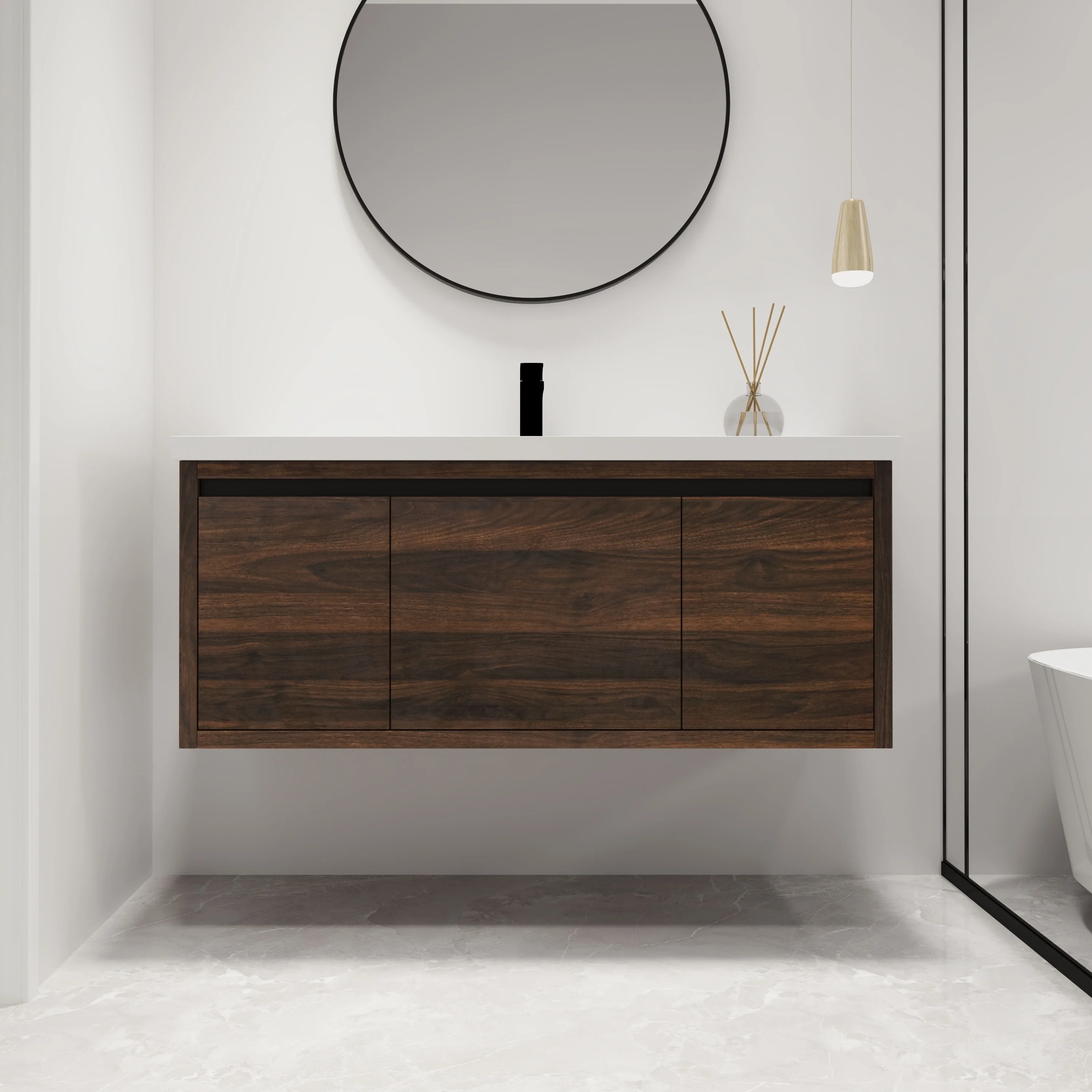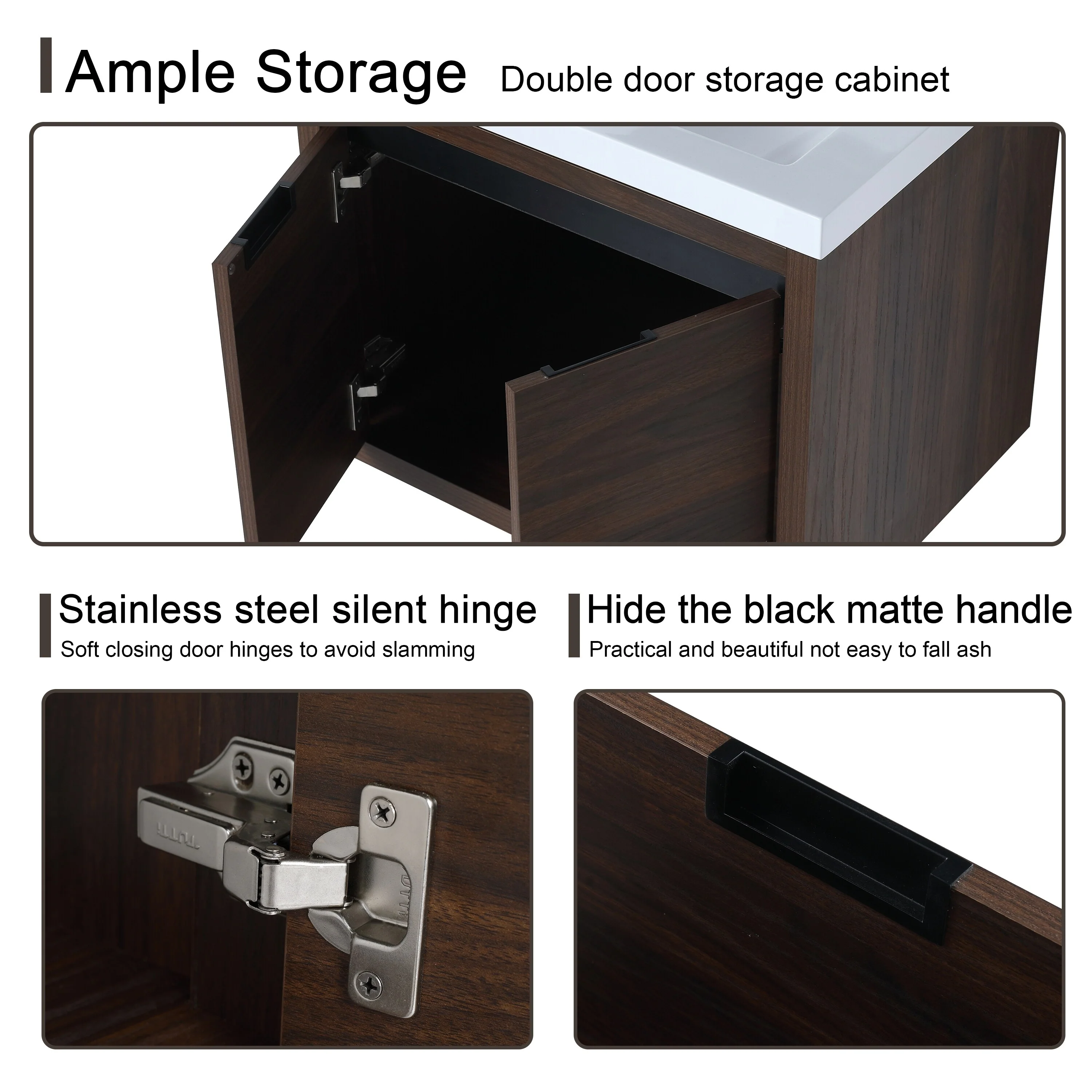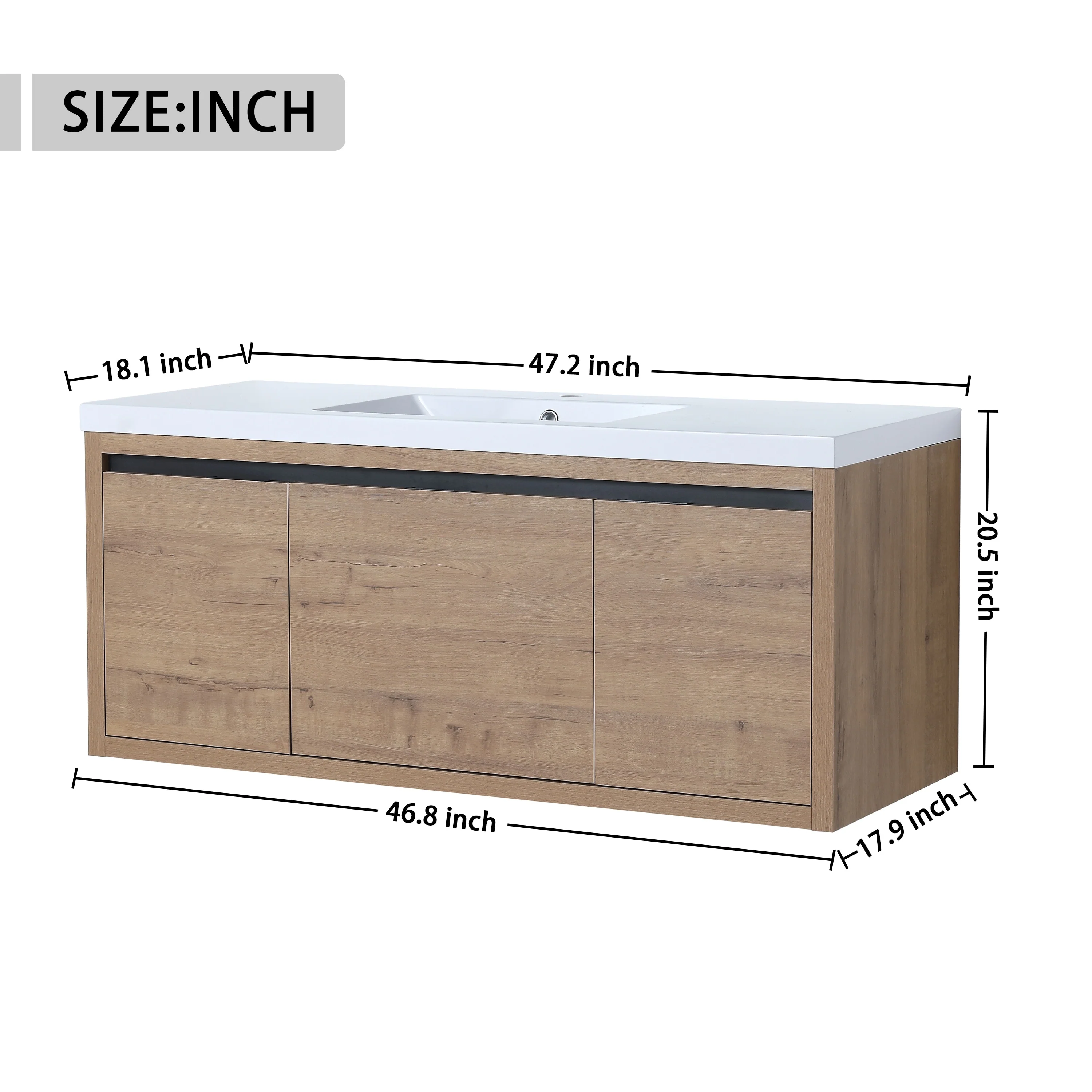 Malwee 24"/48" Floating Bathroom Vanity, Modern Wall Mounted Bathroom Vanity, Single with Resin Top and Soft Close Door