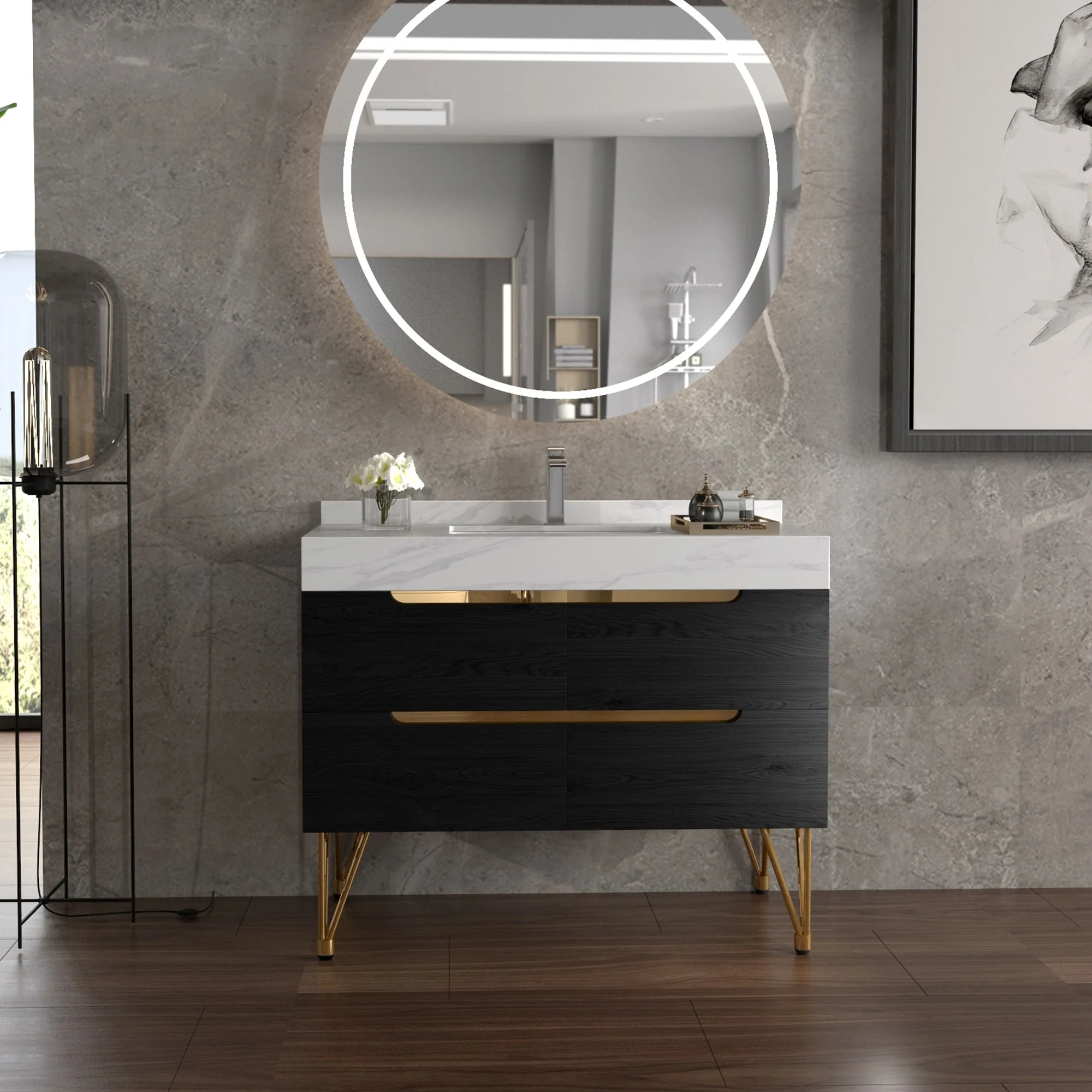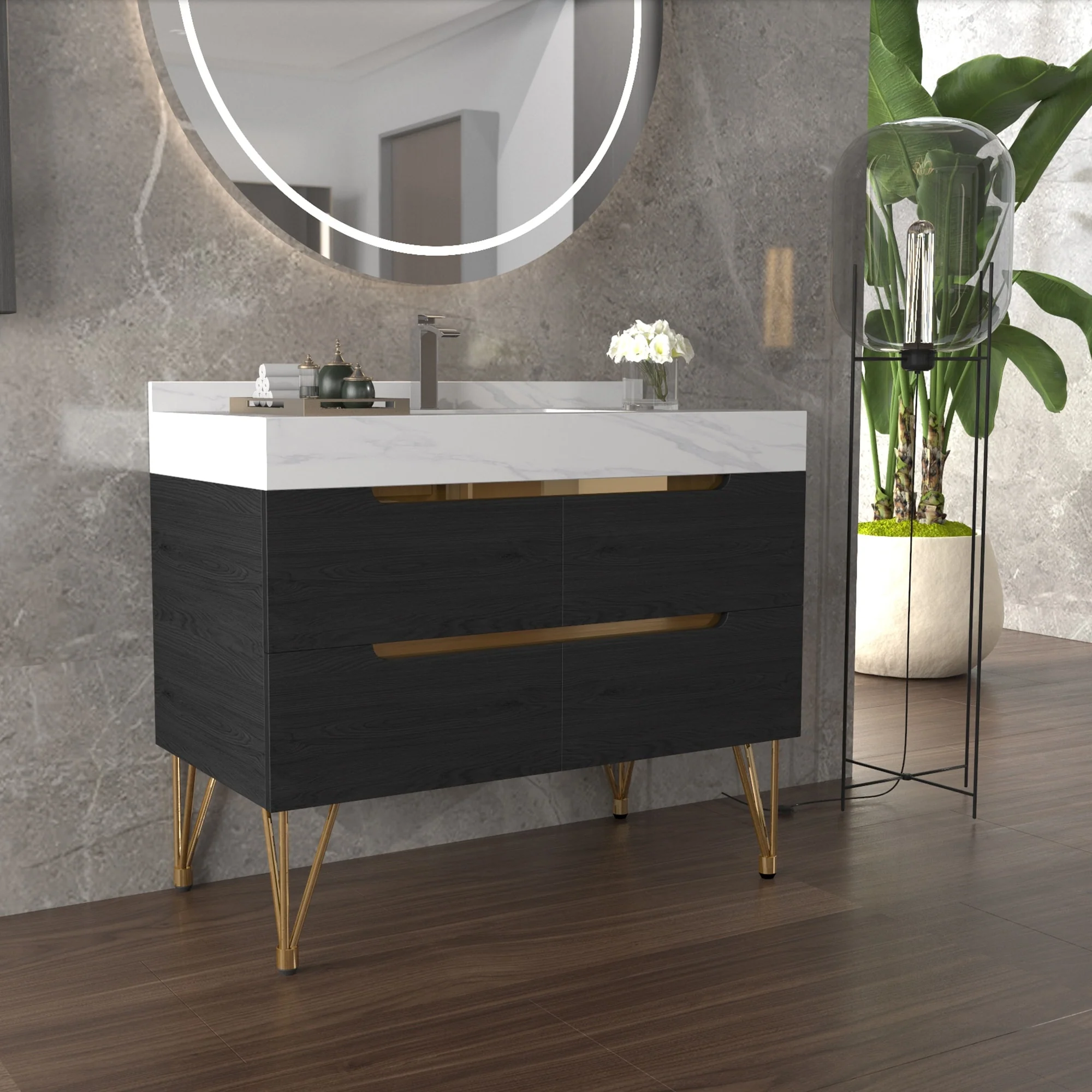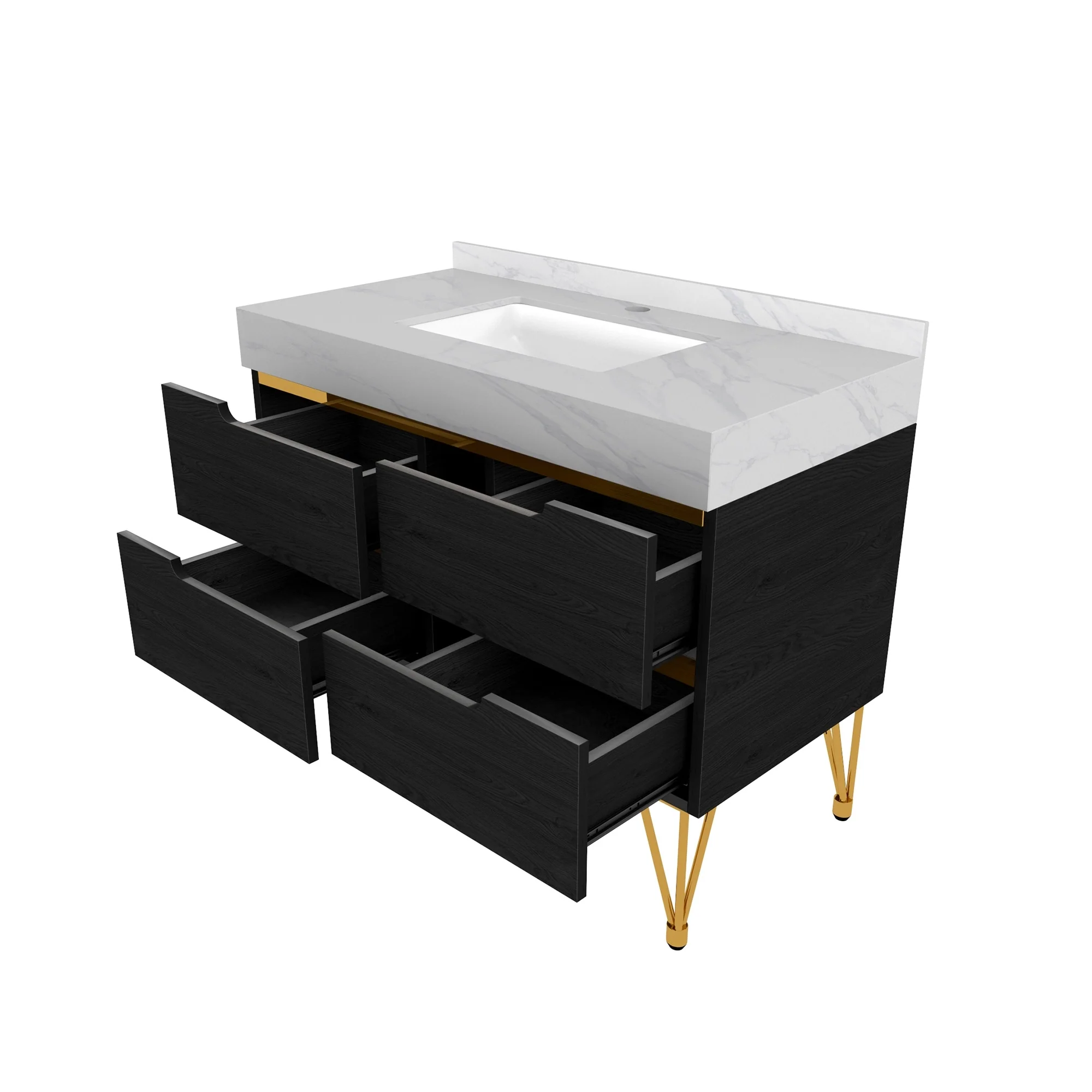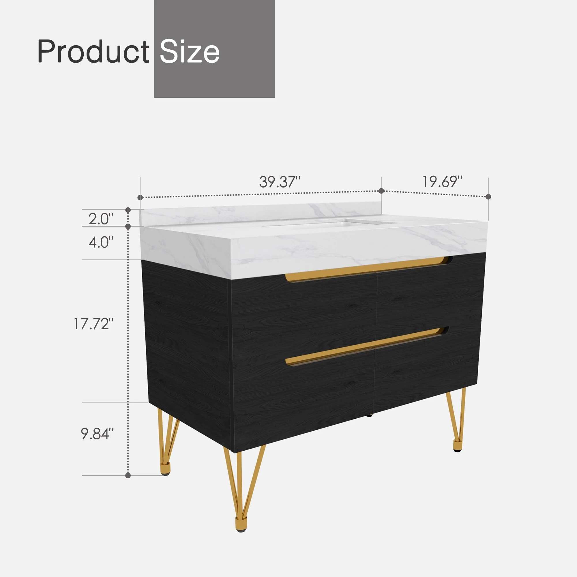 39-inch Marble Bathroom Vanity with 4 Drawers, Easy Assembly