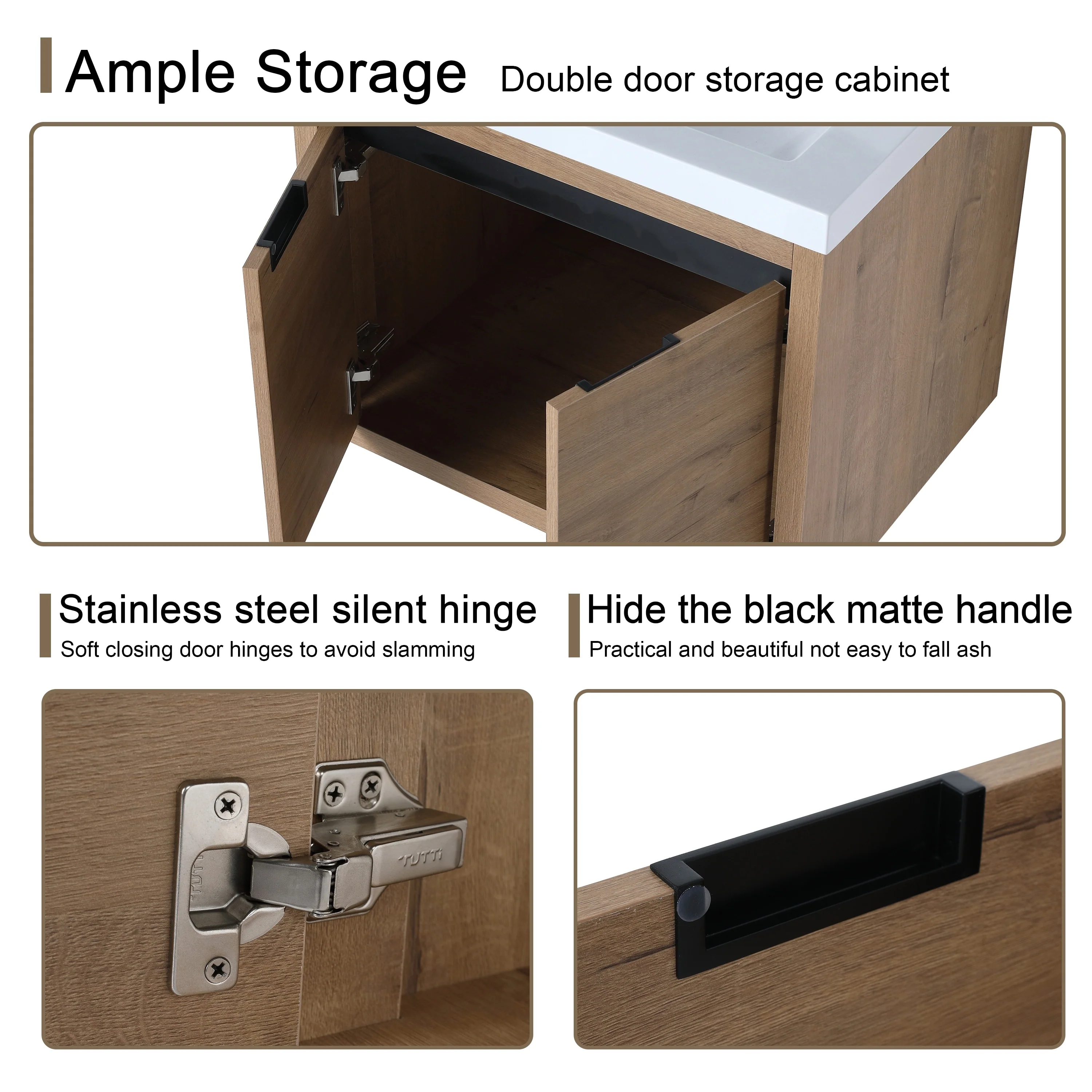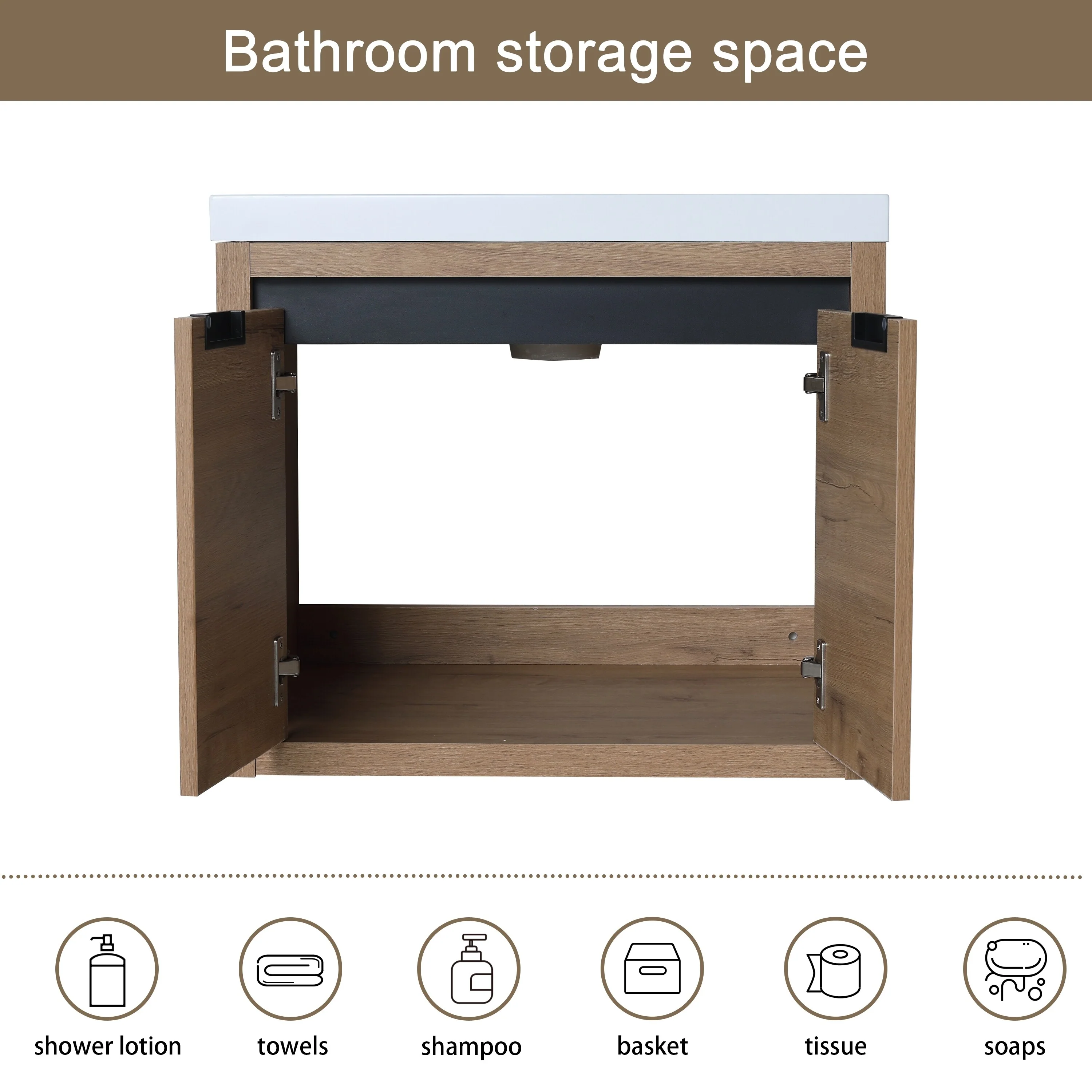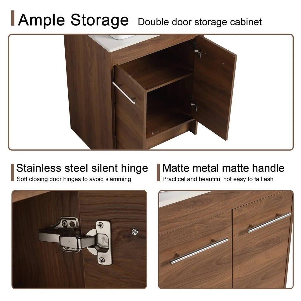 Small Bathroom Vanity with Sink, Bathroom Cabinet with Soft Closing Door, Bathroom Storage Cabinet with Open Storage Shelf
