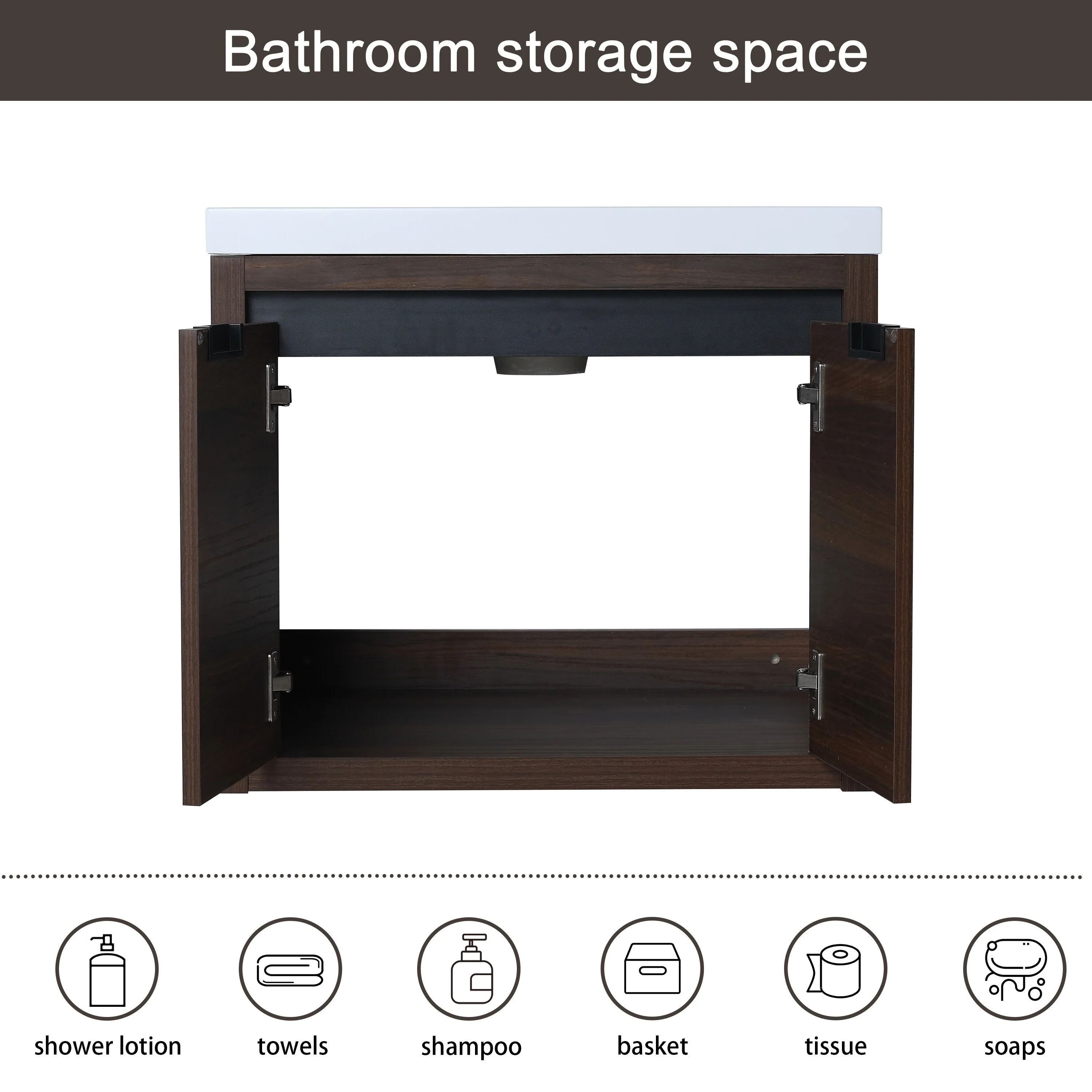 Light Luxury 27.6 in. Single Bathroom Vanity, Stone Countertop Wall Mounted Black Countertop Sink Connected Bathroom Vanity