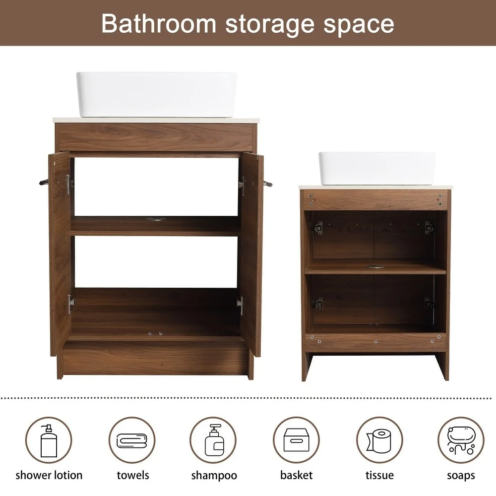 24'' Bathroom Vanity with Top Sink: Modern 2-Tier Storage Cabinet, Single Sink, Large Shelves