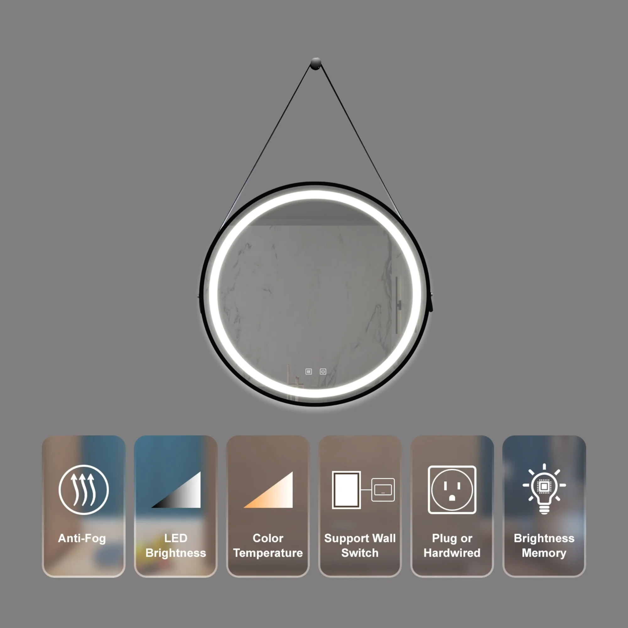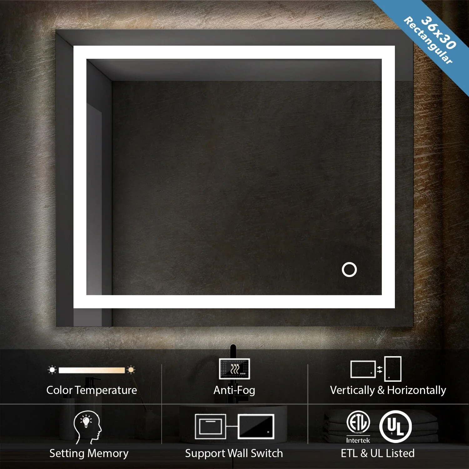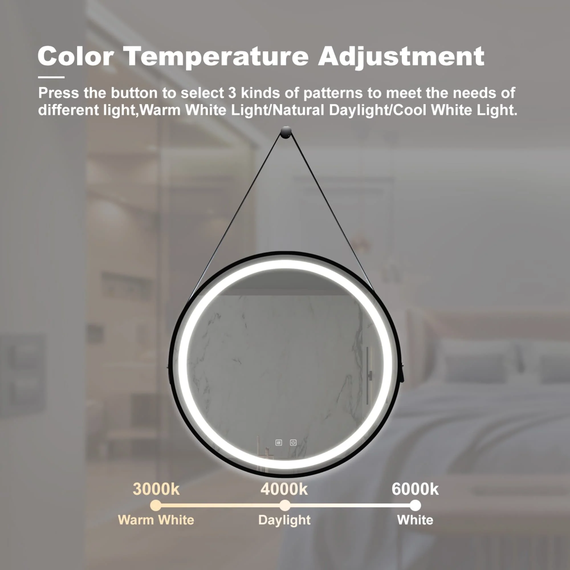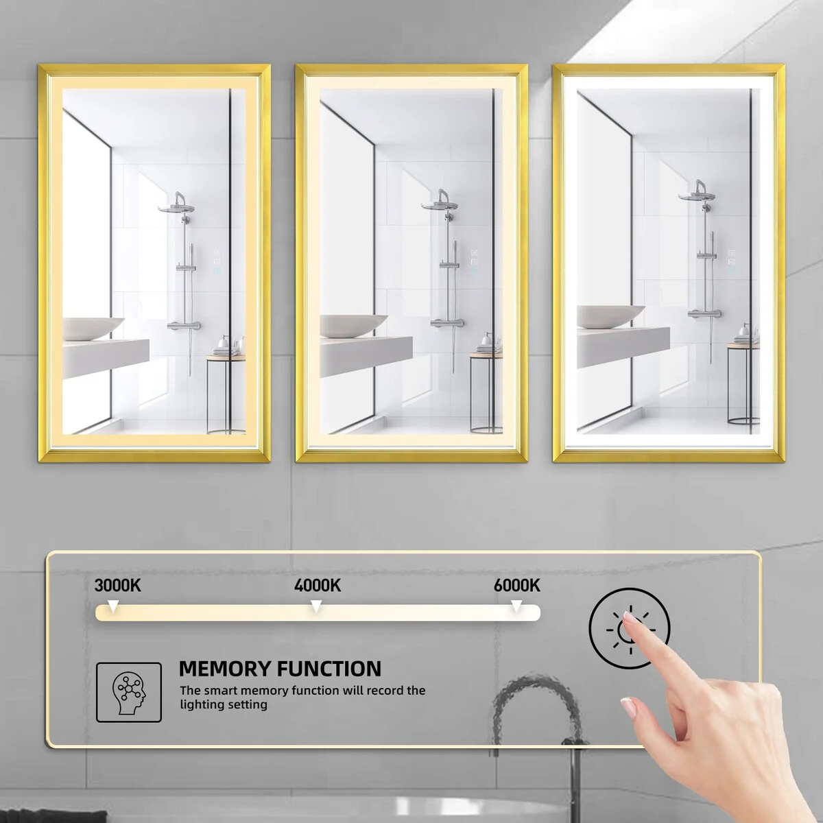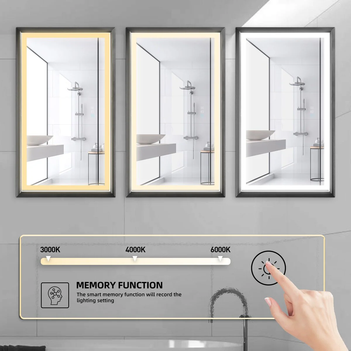 Lyra Led Bathroom Mirror with Antifog, Dimmer, Adjustable Color Temperature, Smart Bathroom Led Mirror