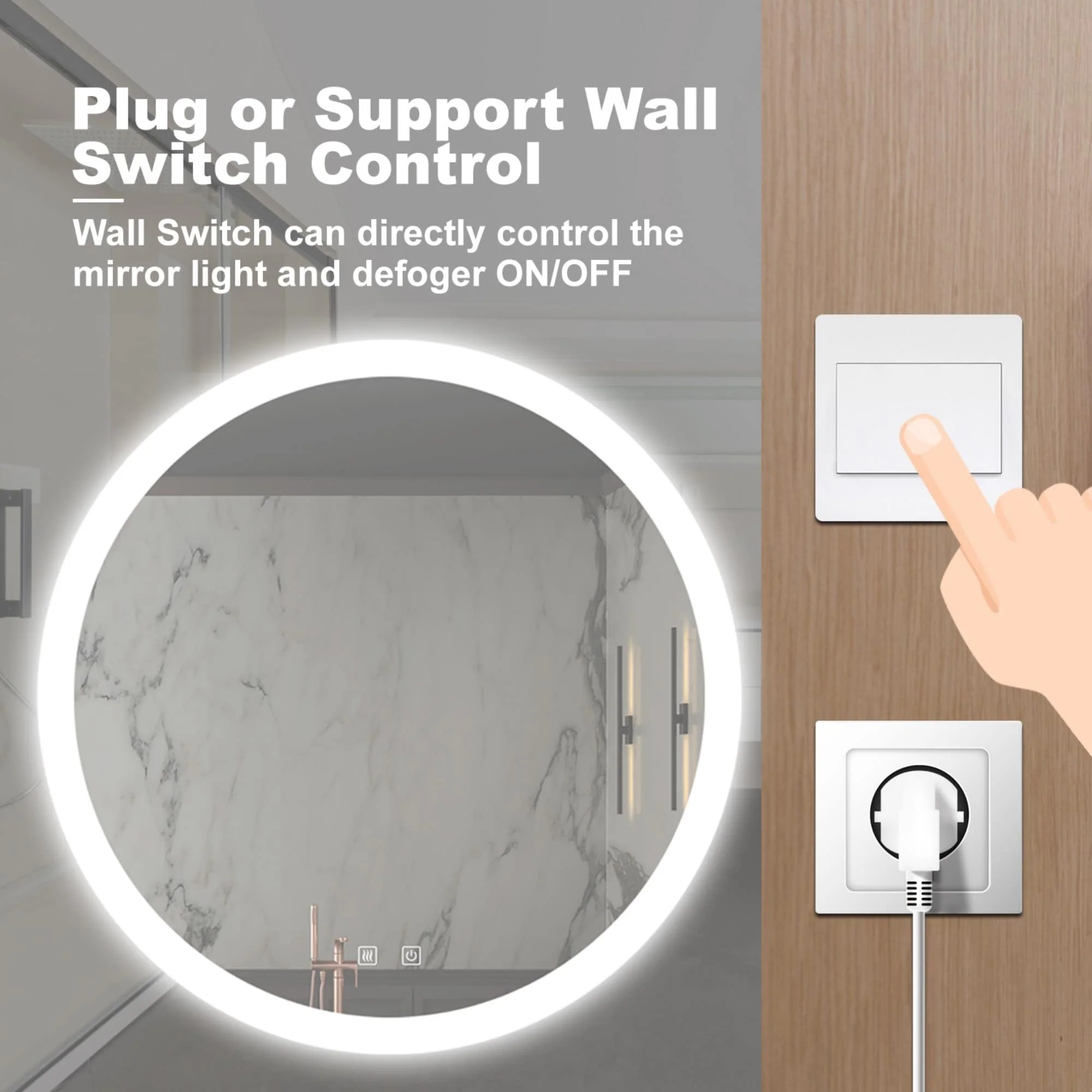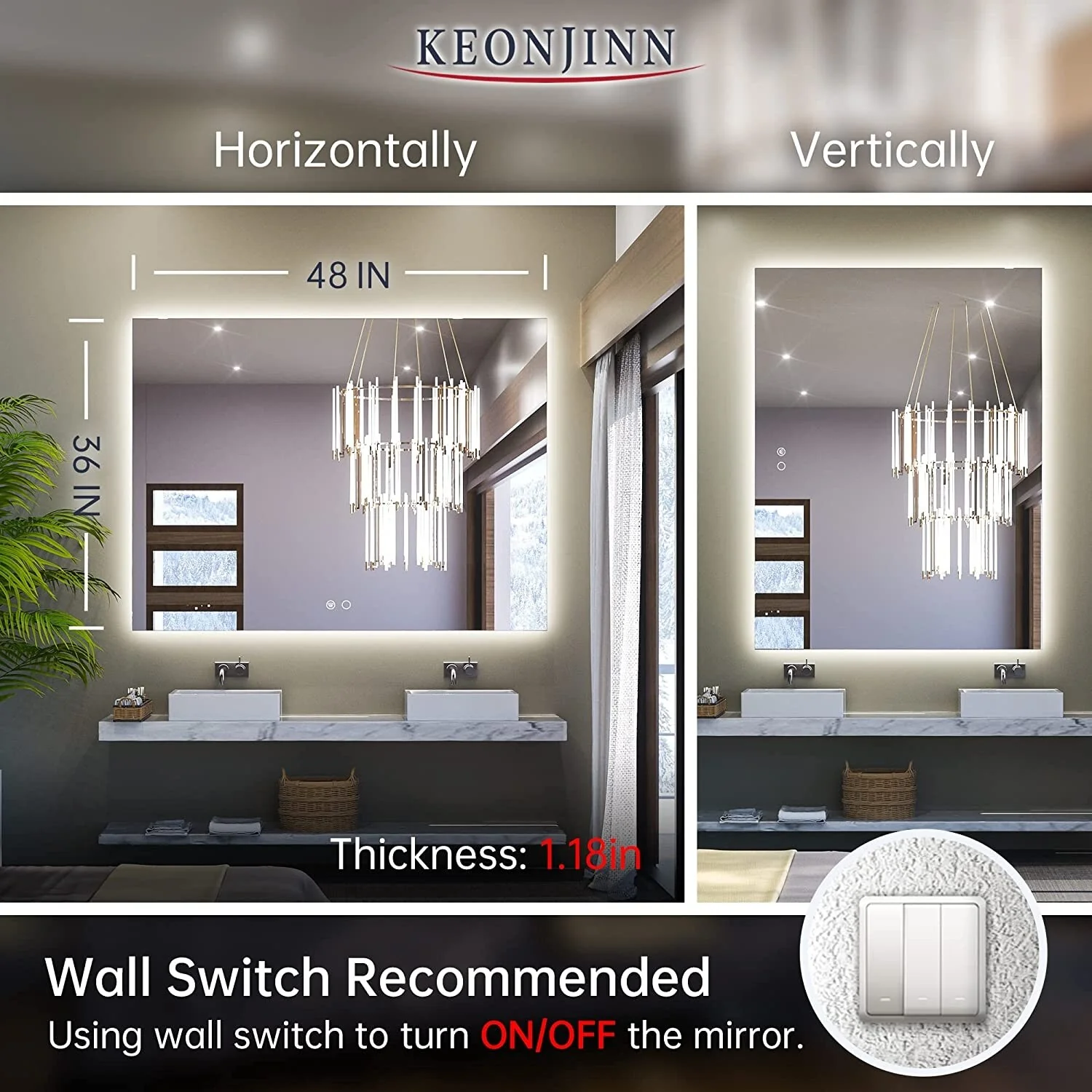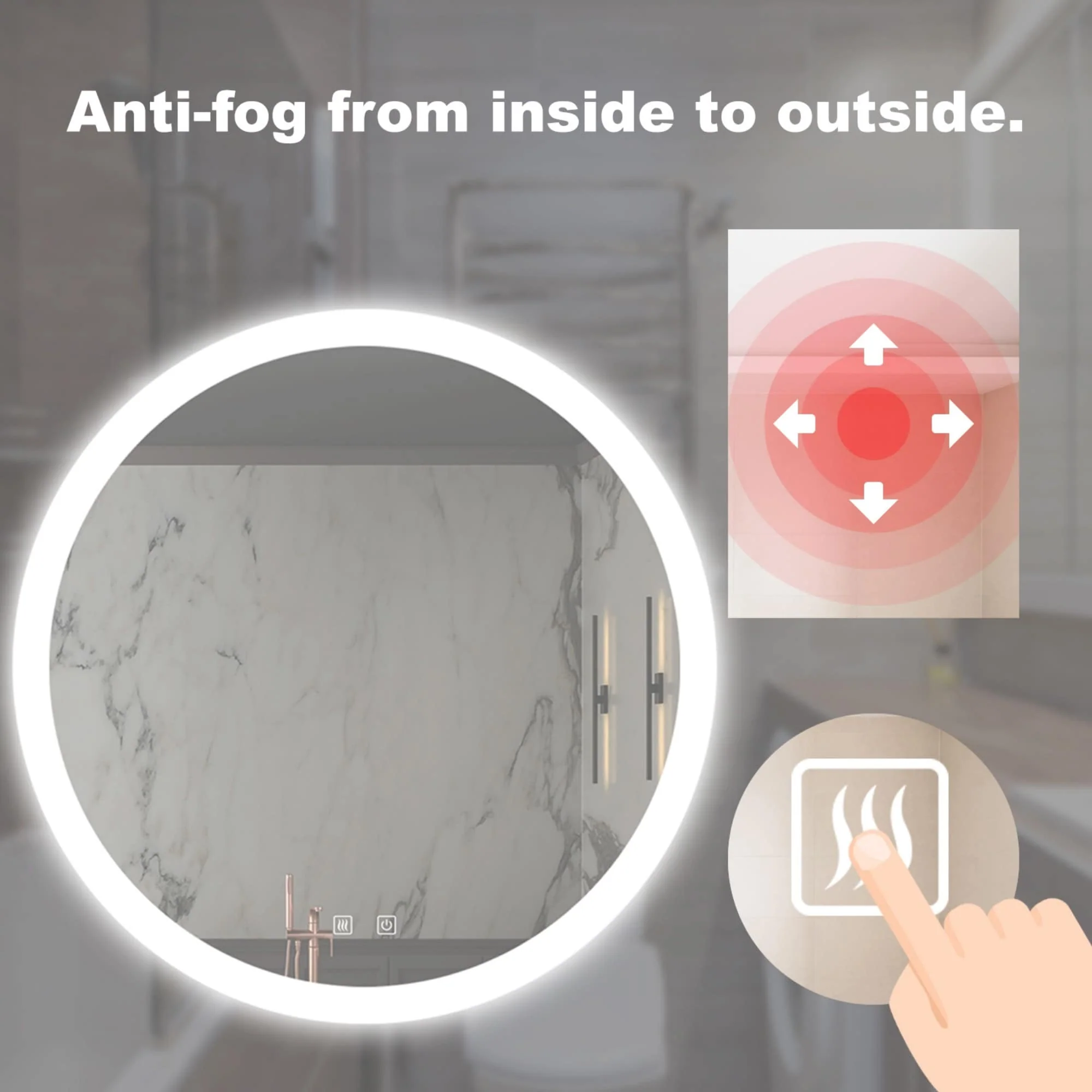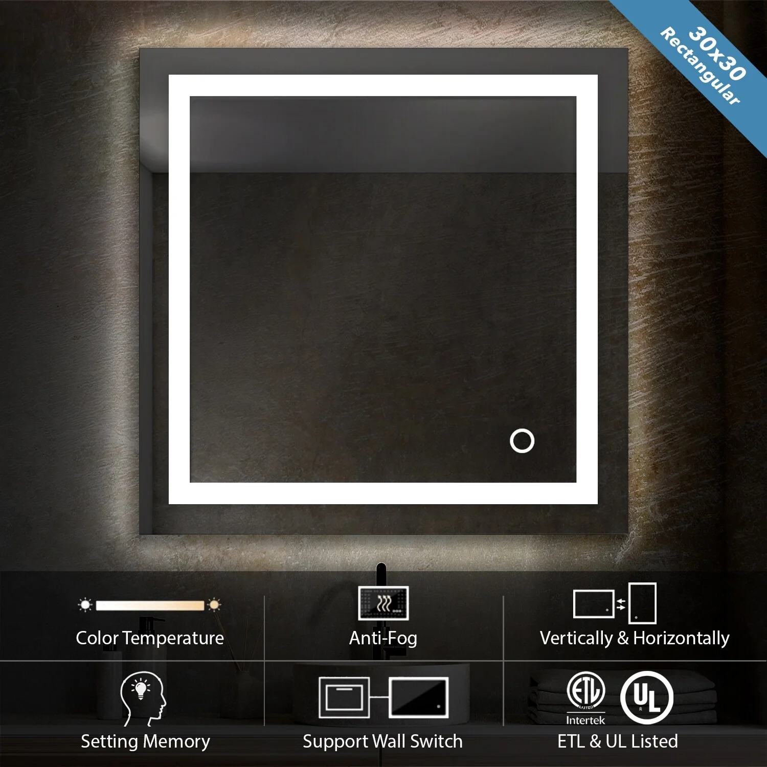 Lyra Led Bathroom Mirror with Antifog, Dimmer, Adjustable Color Temperature, Smart Bathroom Led Mirror