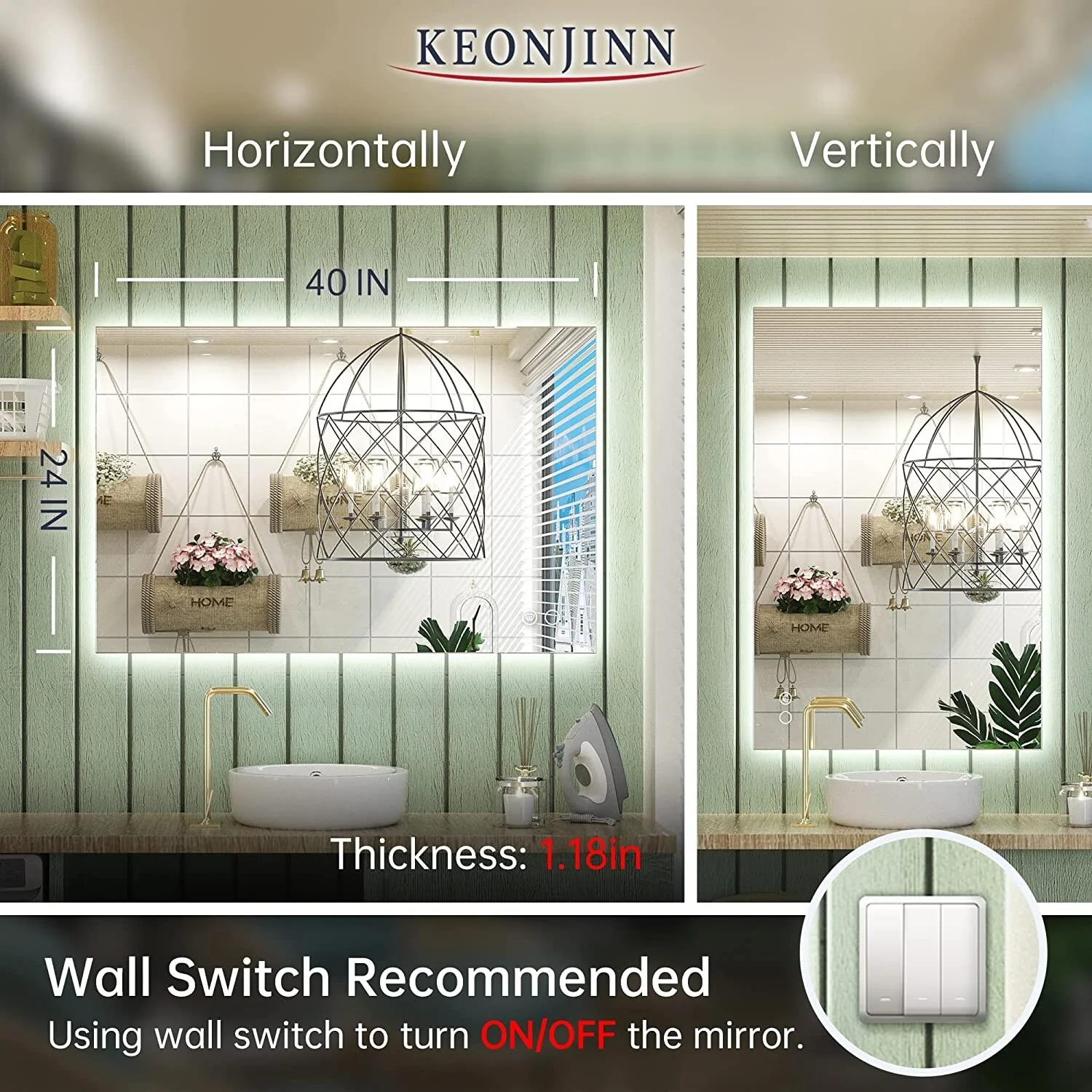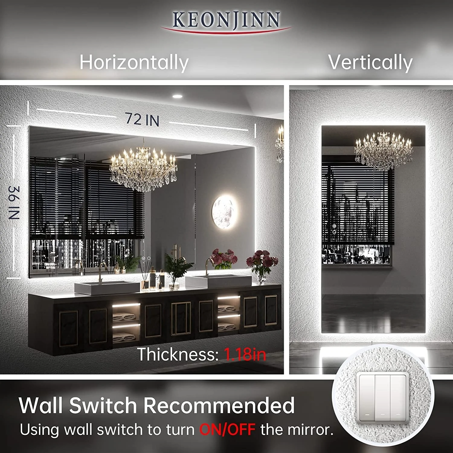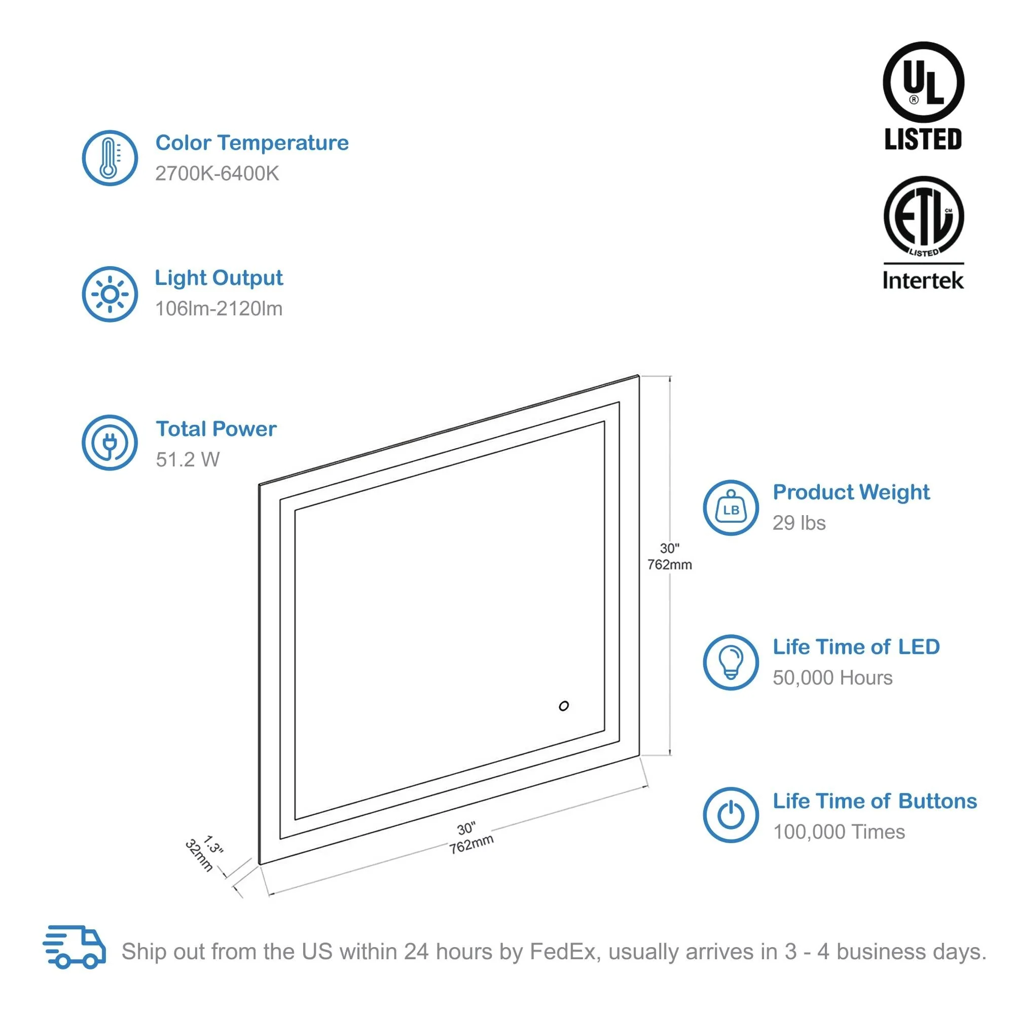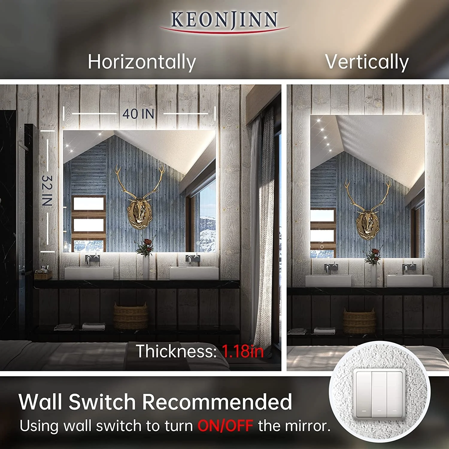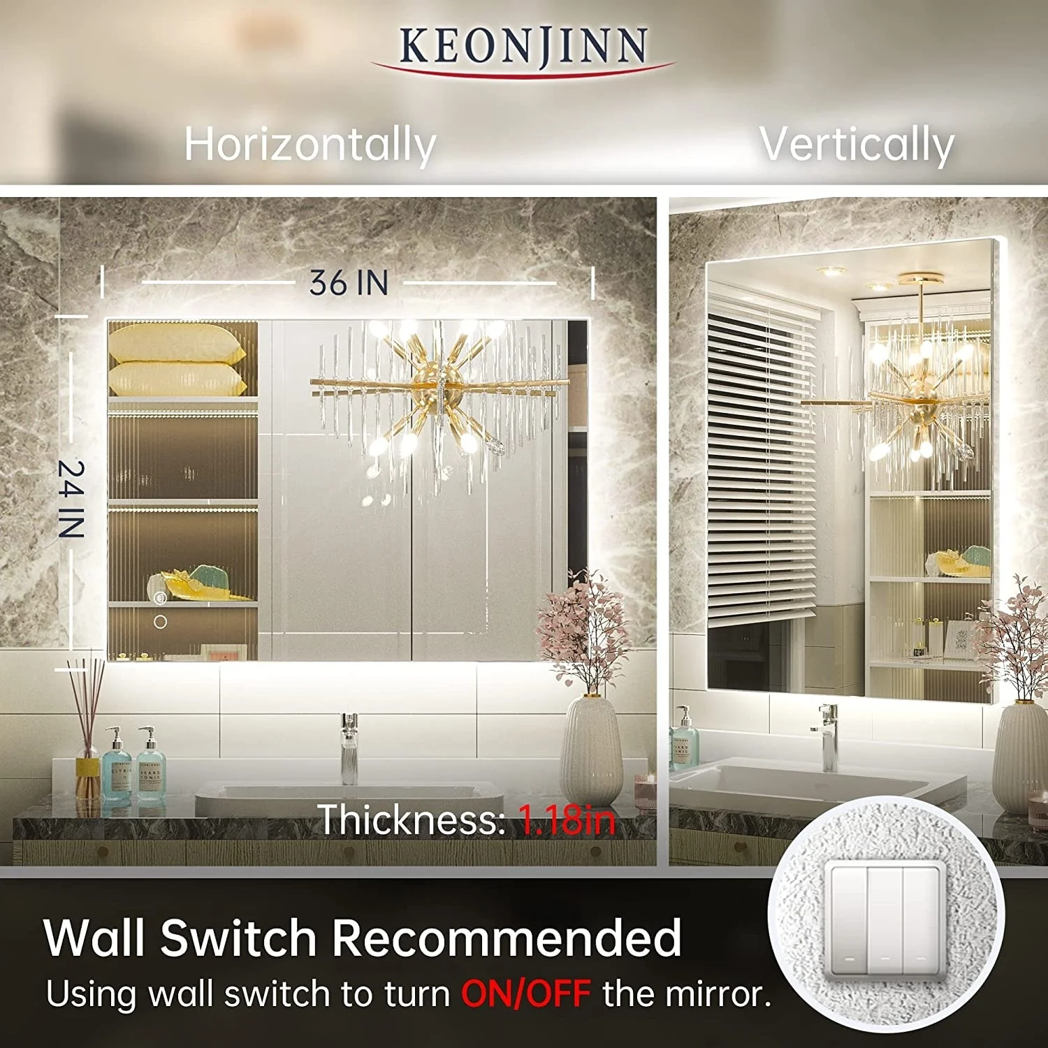 Lyra Led Bathroom Mirror with Antifog, Dimmer, Adjustable Color Temperature, Smart Bathroom Led Mirror