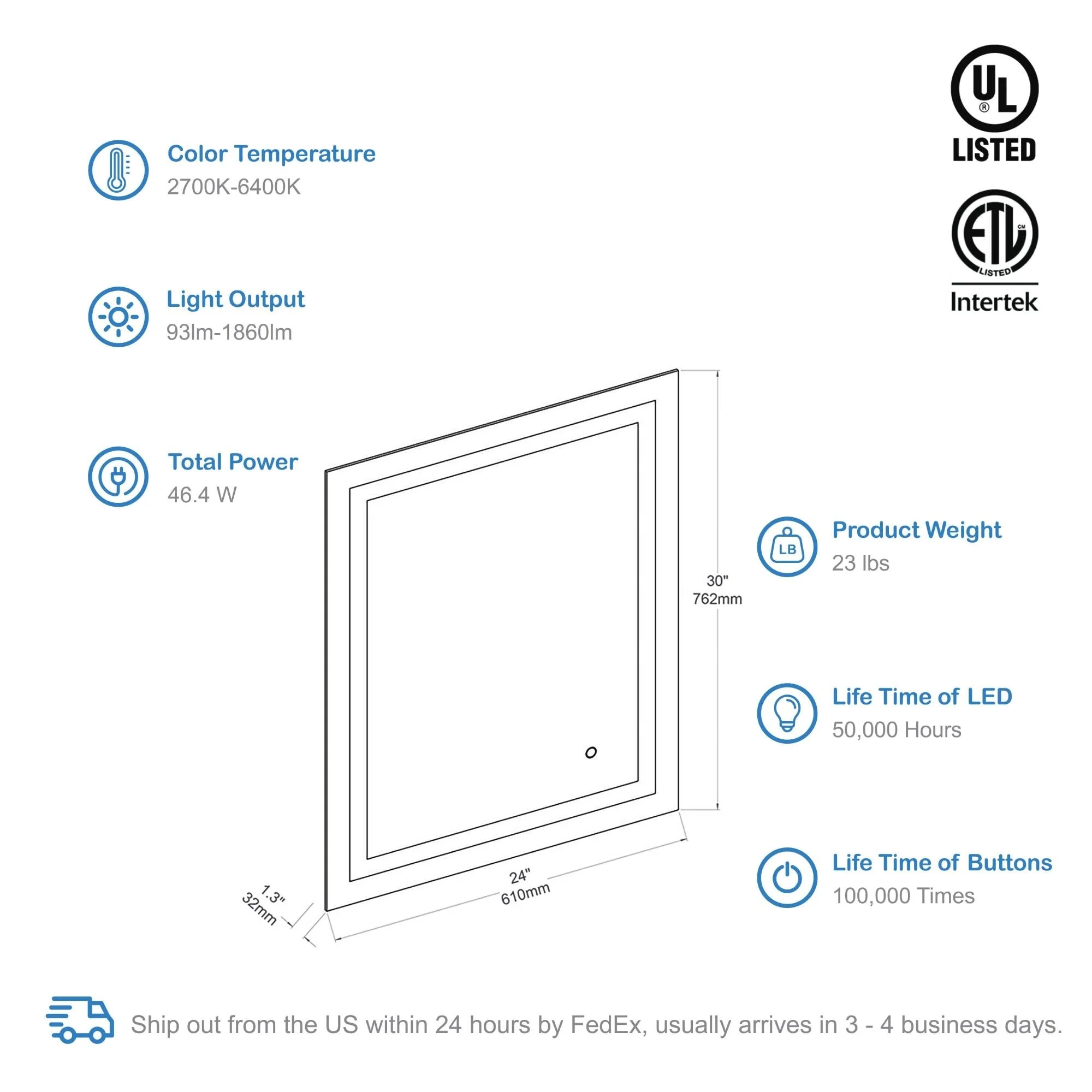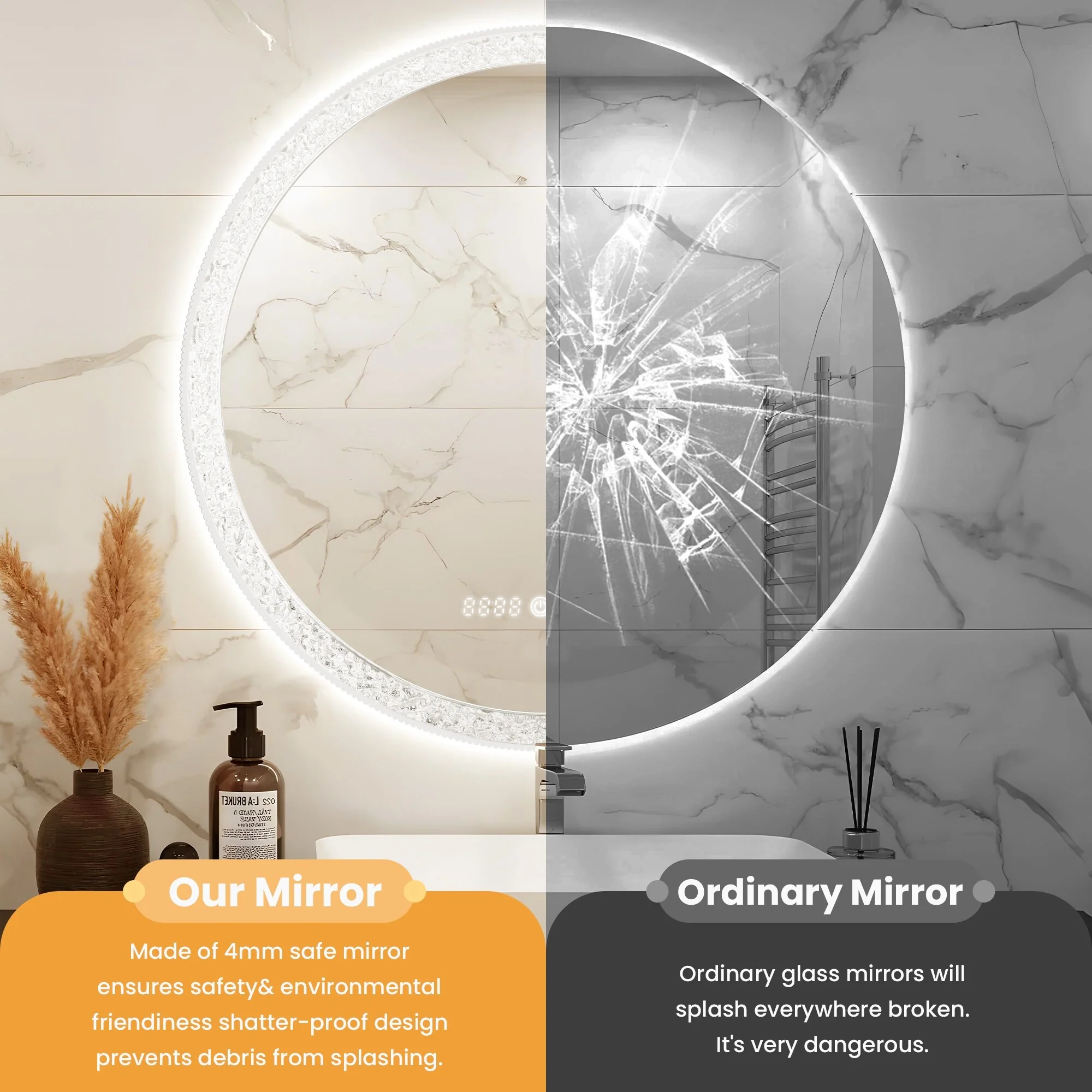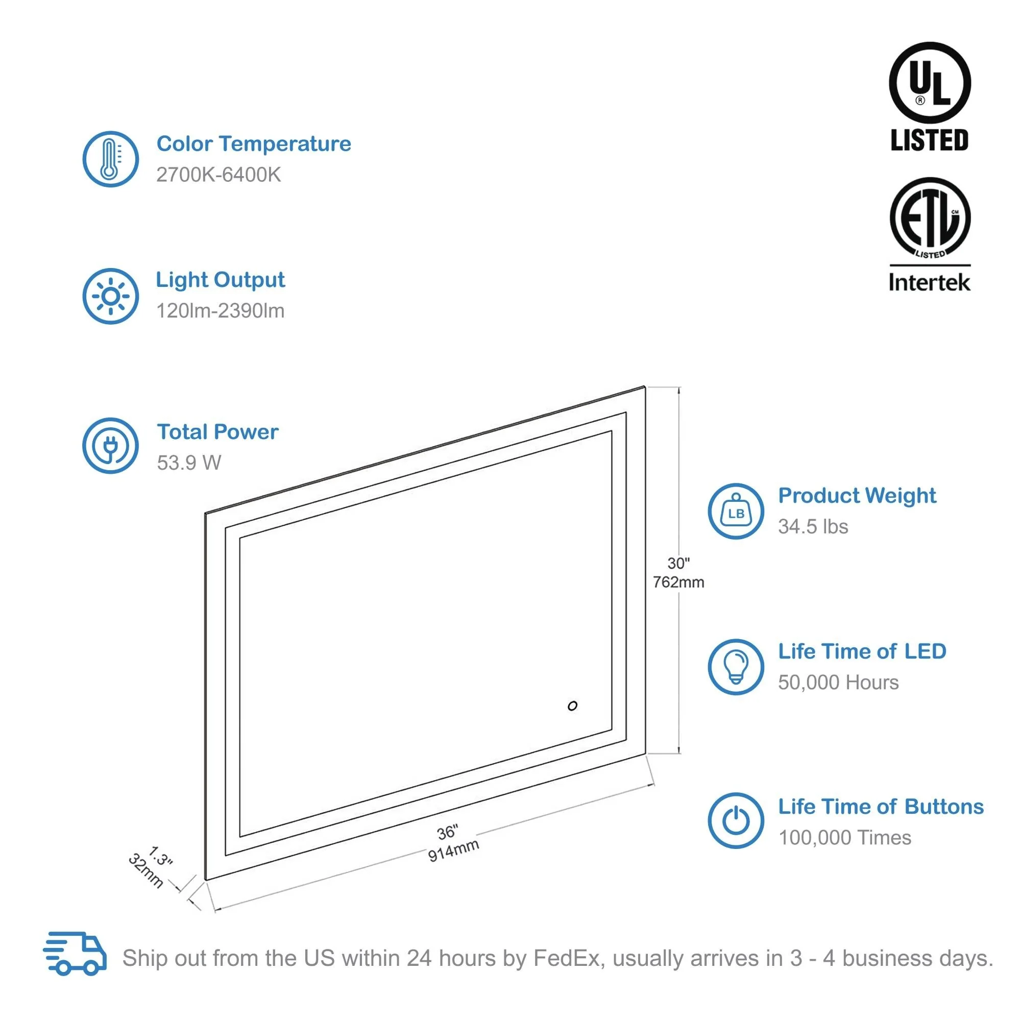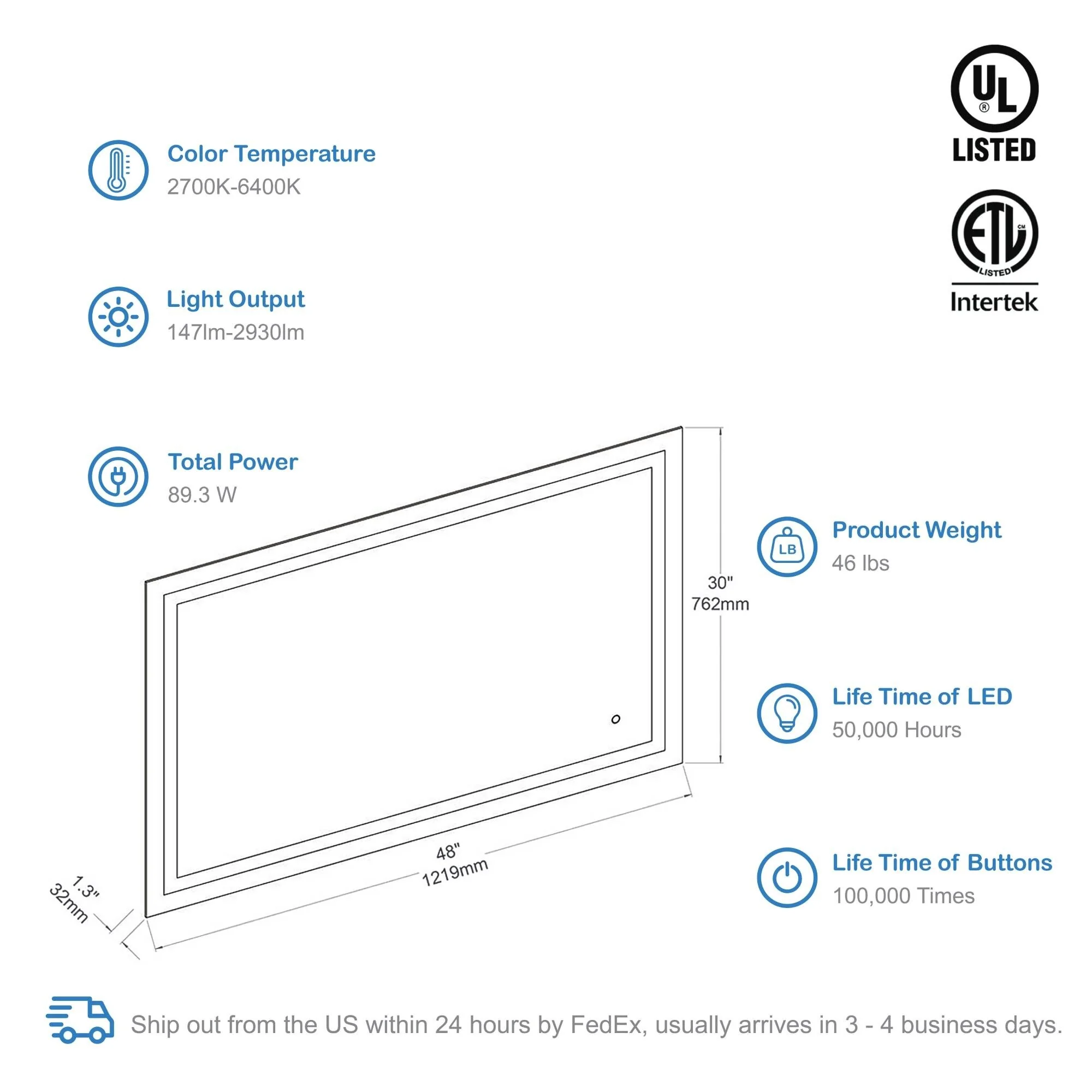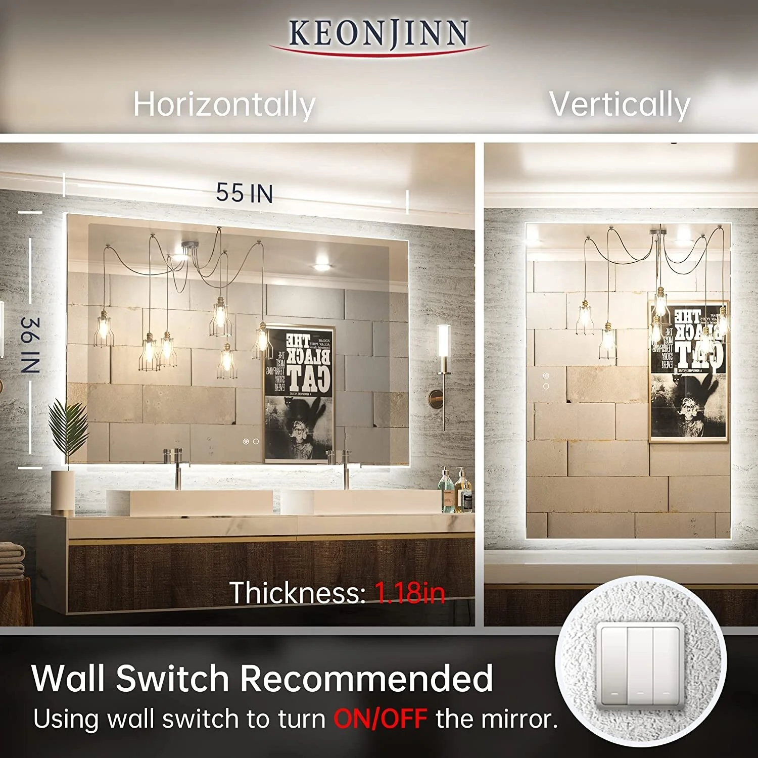 Lyra Led Bathroom Mirror with Antifog, Dimmer, Adjustable Color Temperature, Smart Bathroom Led Mirror