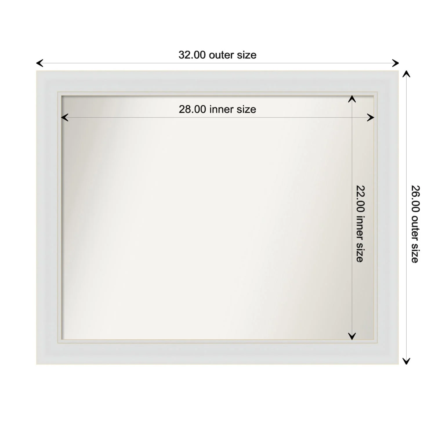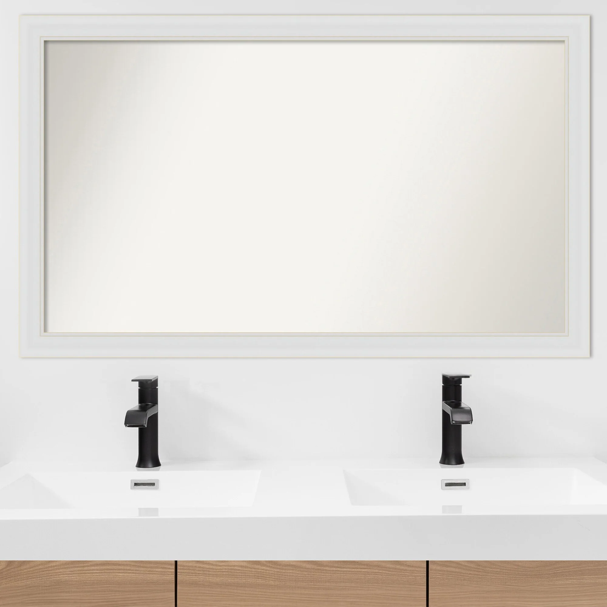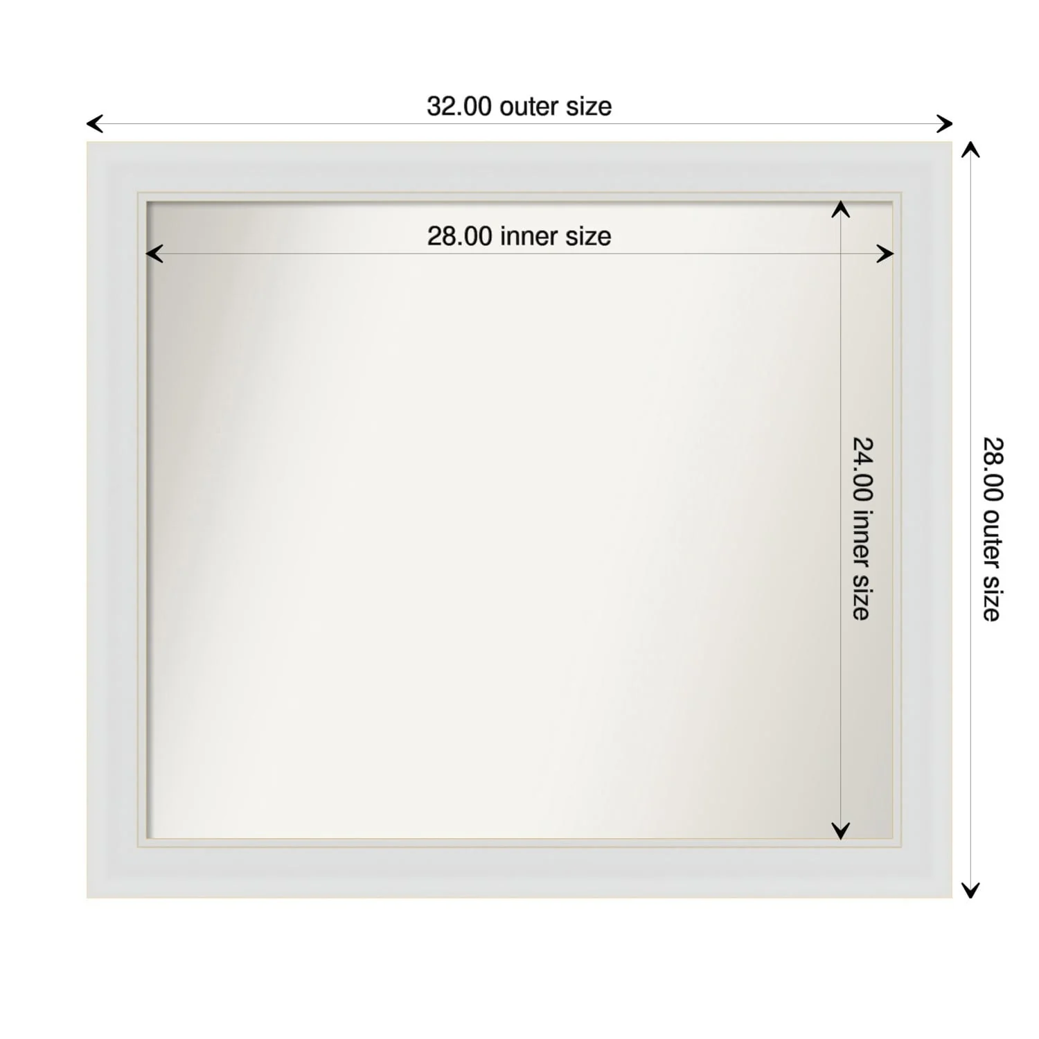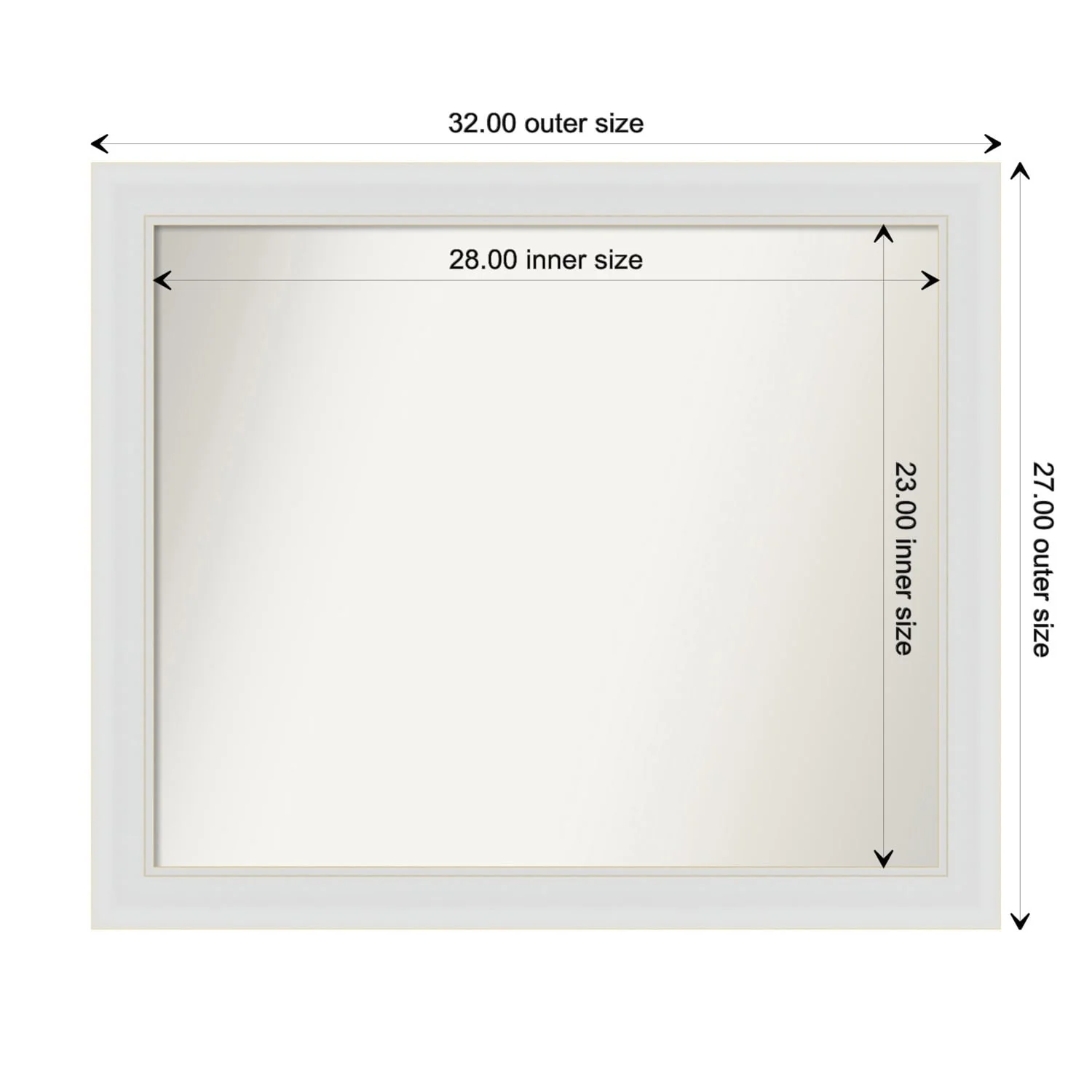 Flair Soft White Narrow Framed Non-Beveled Custom Wall Mirror, Bathroom Vanity Mirror