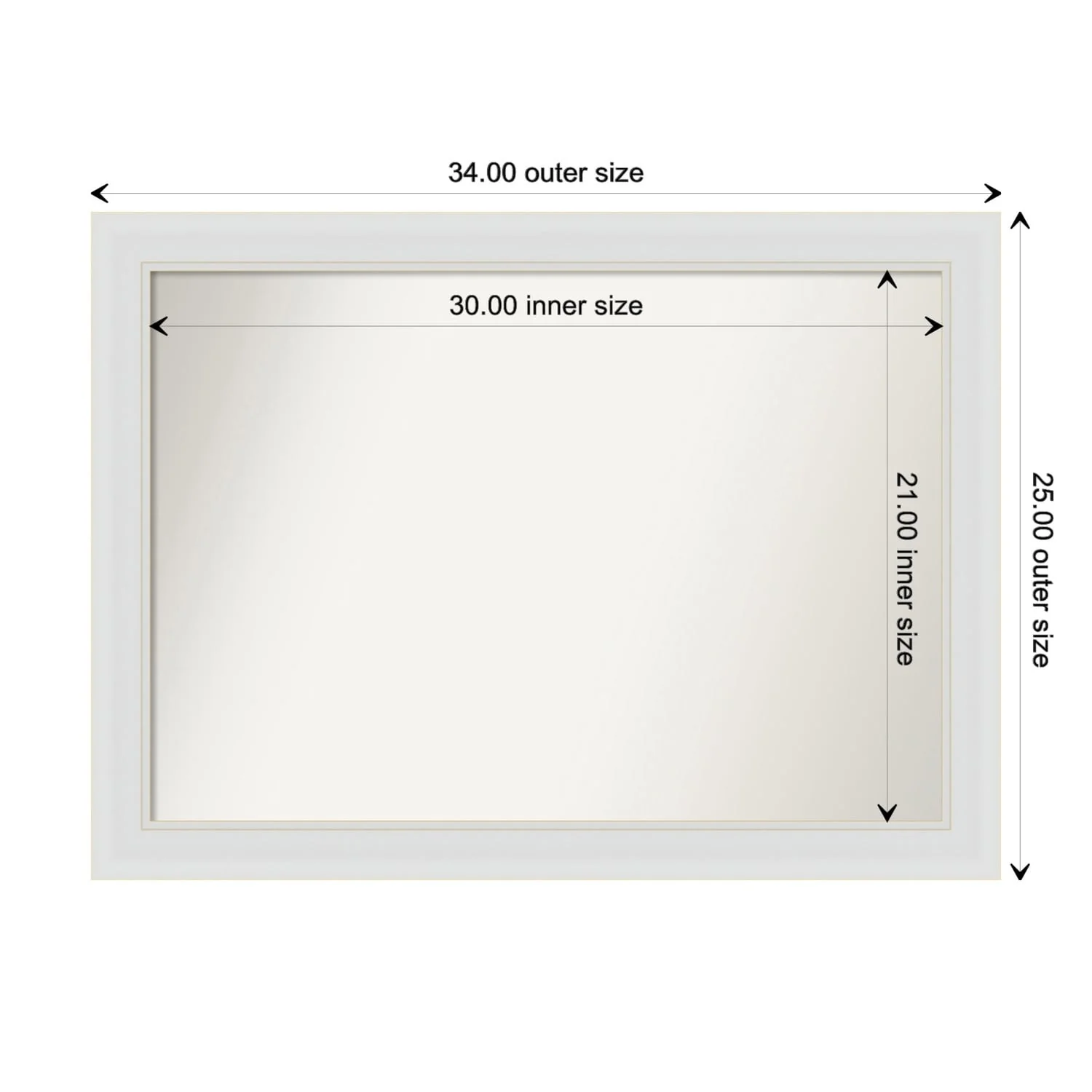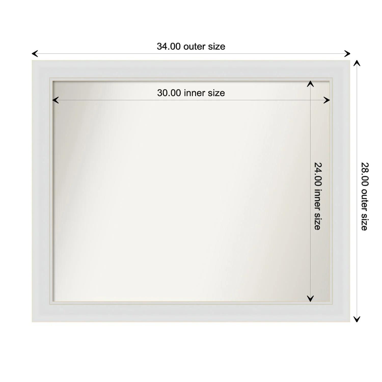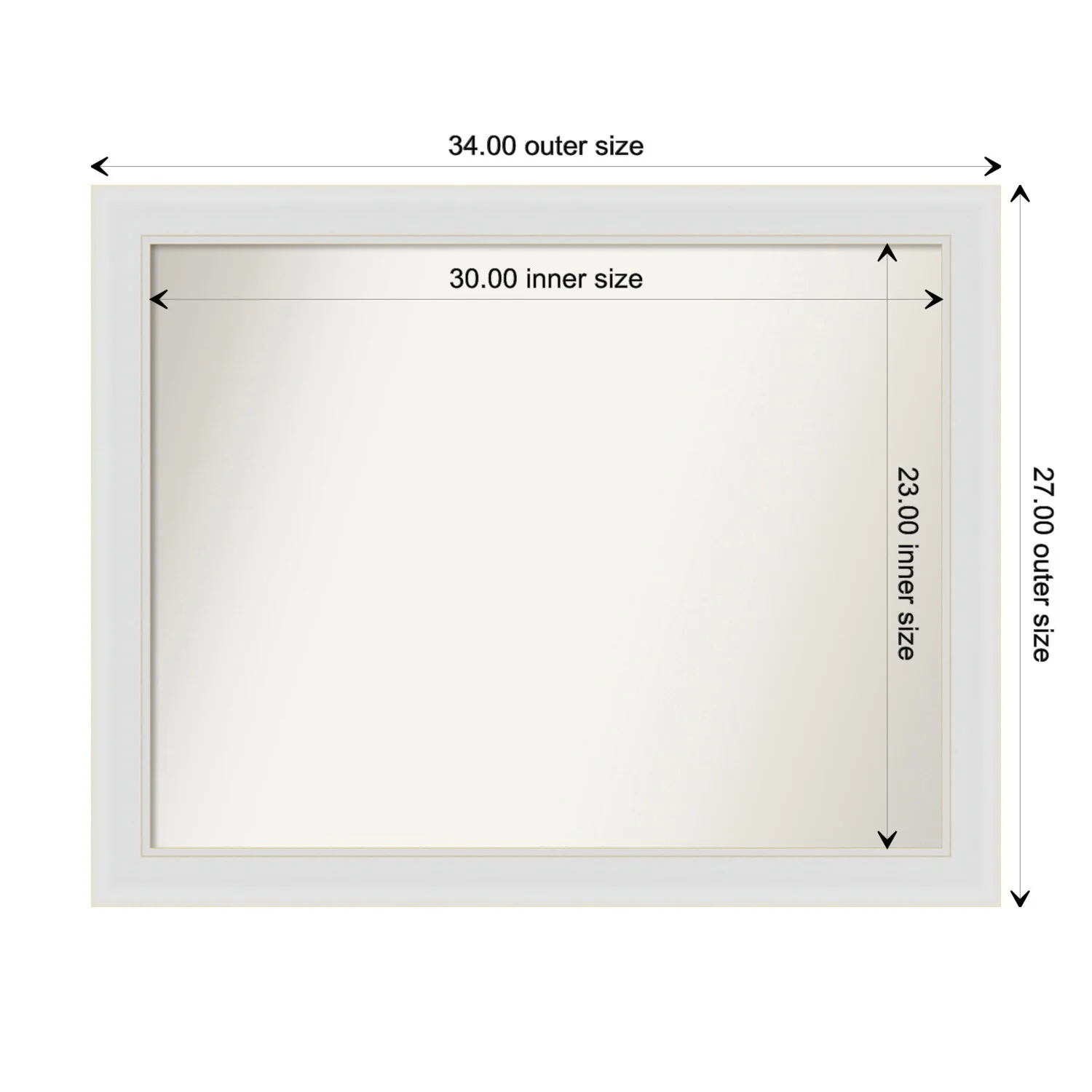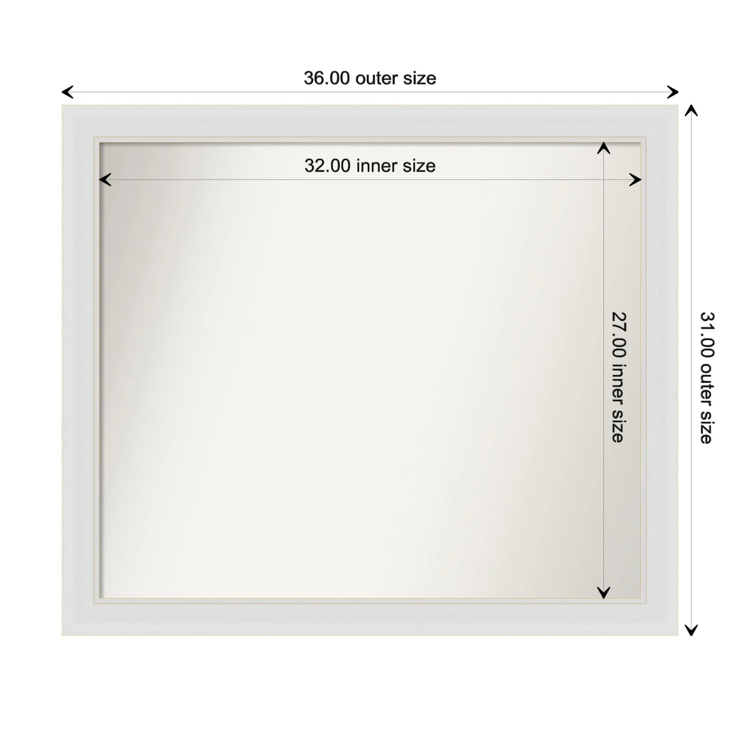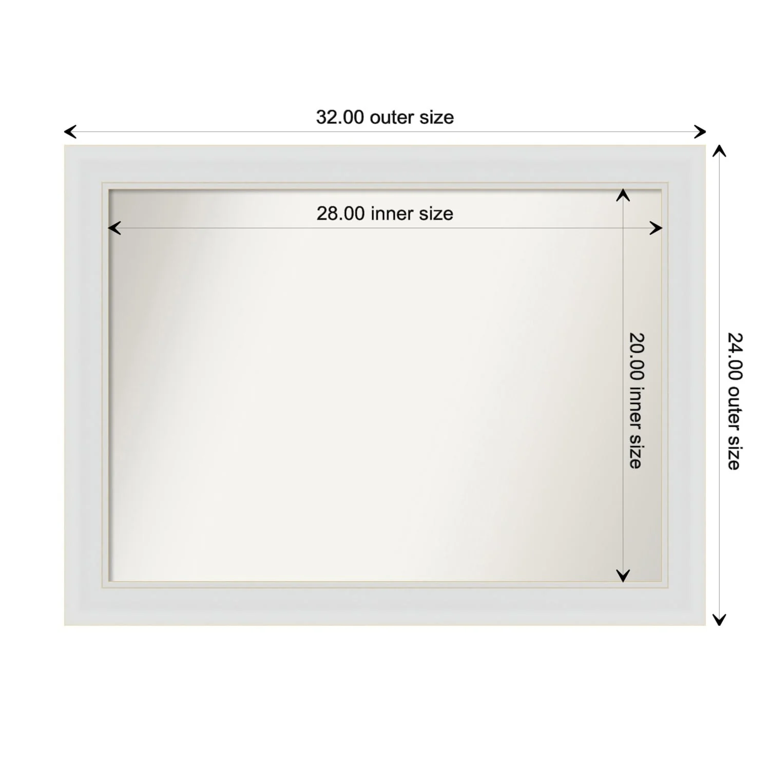 Flair Soft White Narrow Framed Non-Beveled Custom Wall Mirror, Bathroom Vanity Mirror