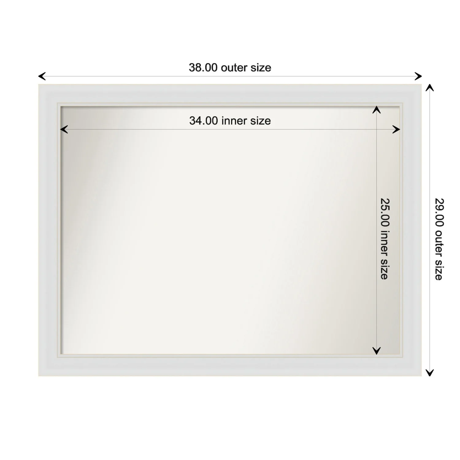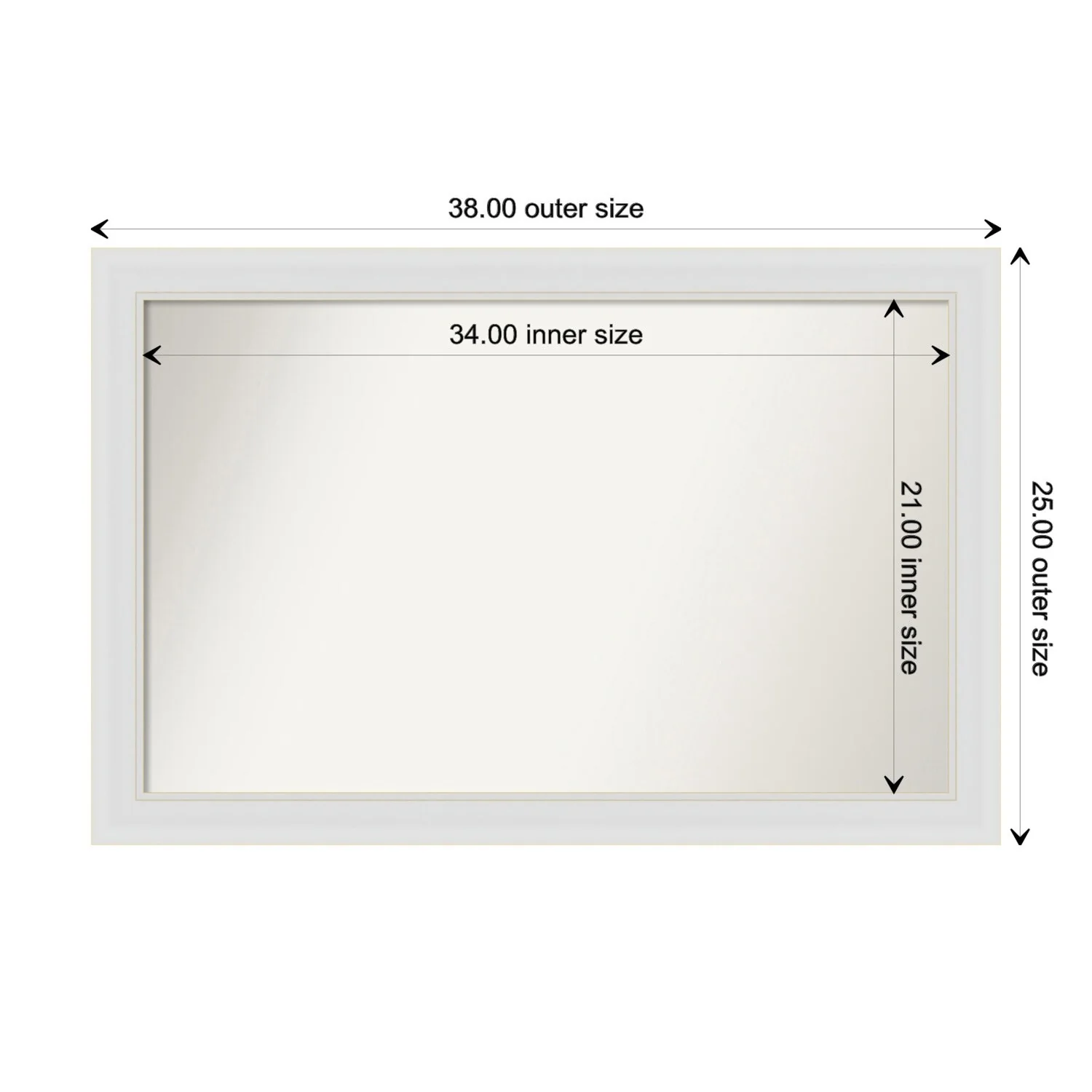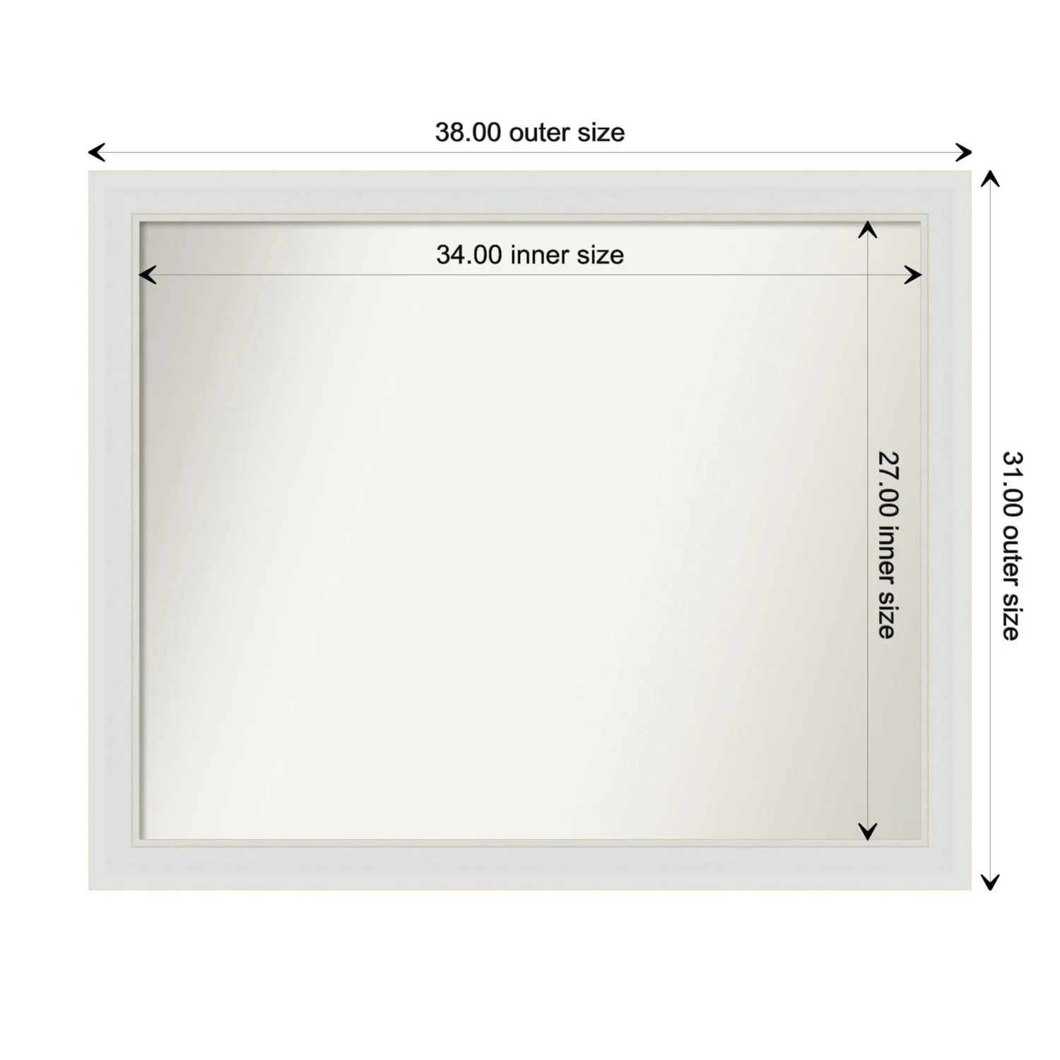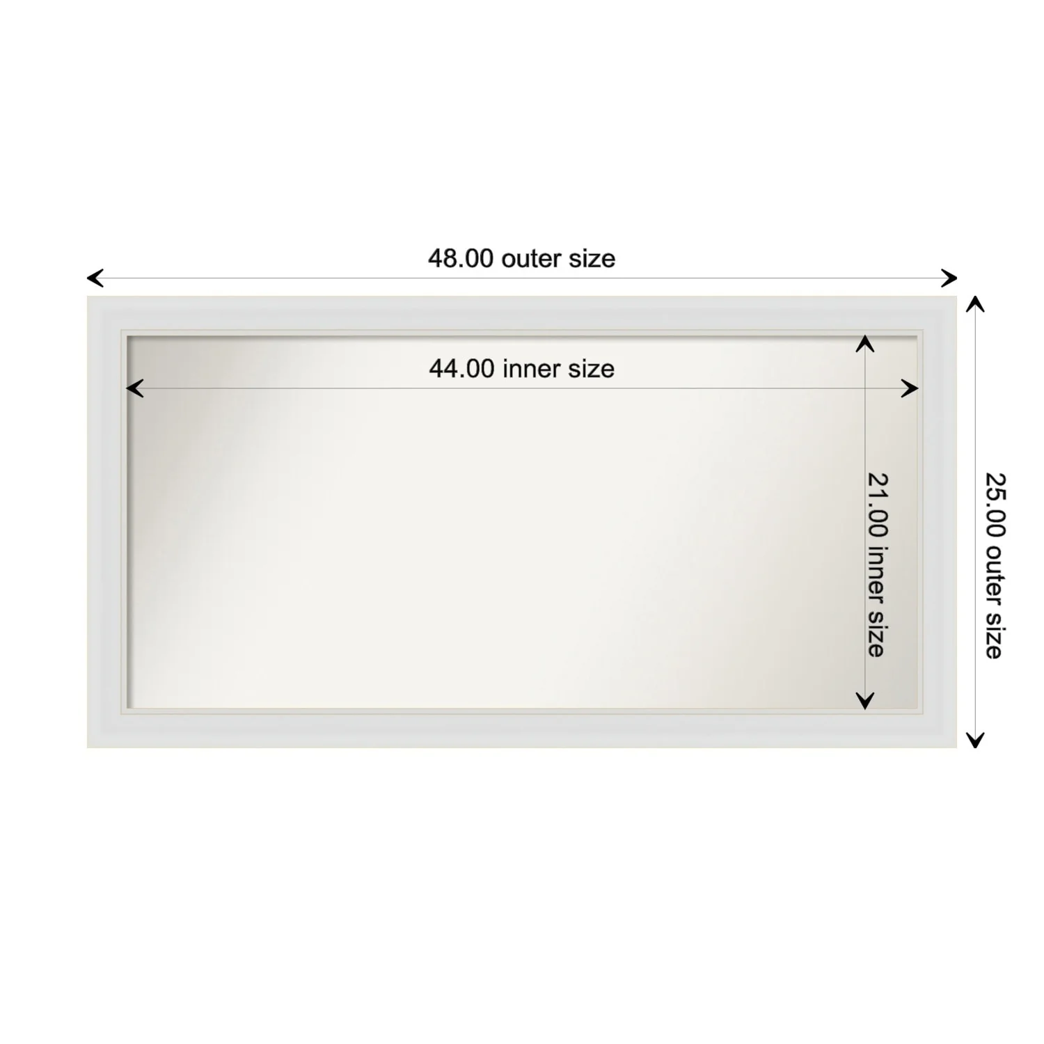 Flair Soft White Narrow Framed Non-Beveled Custom Wall Mirror, Bathroom Vanity Mirror