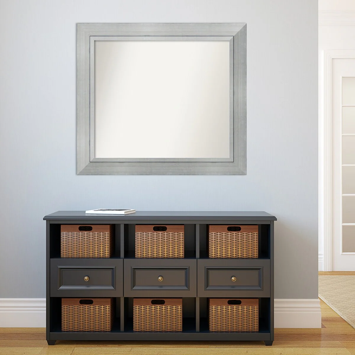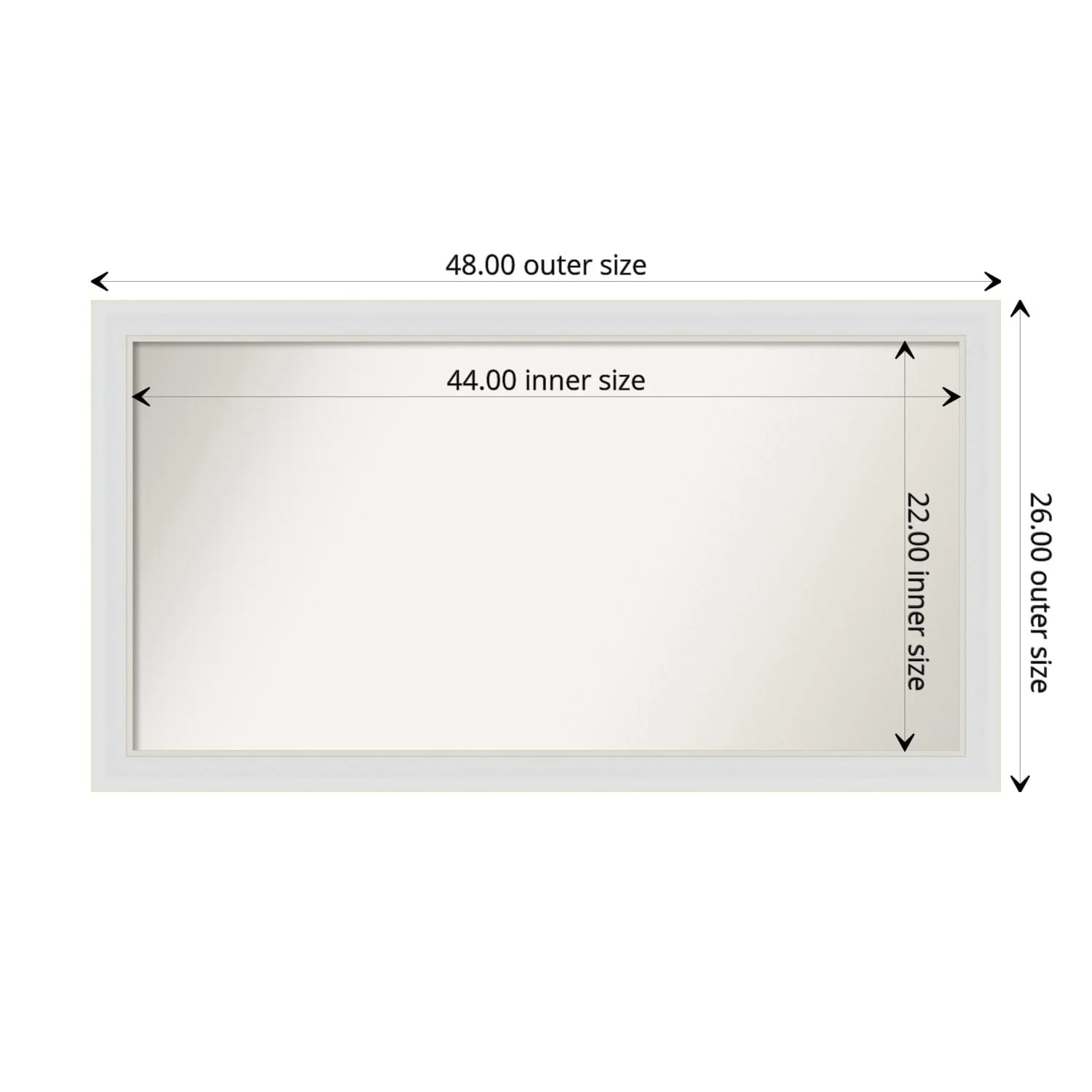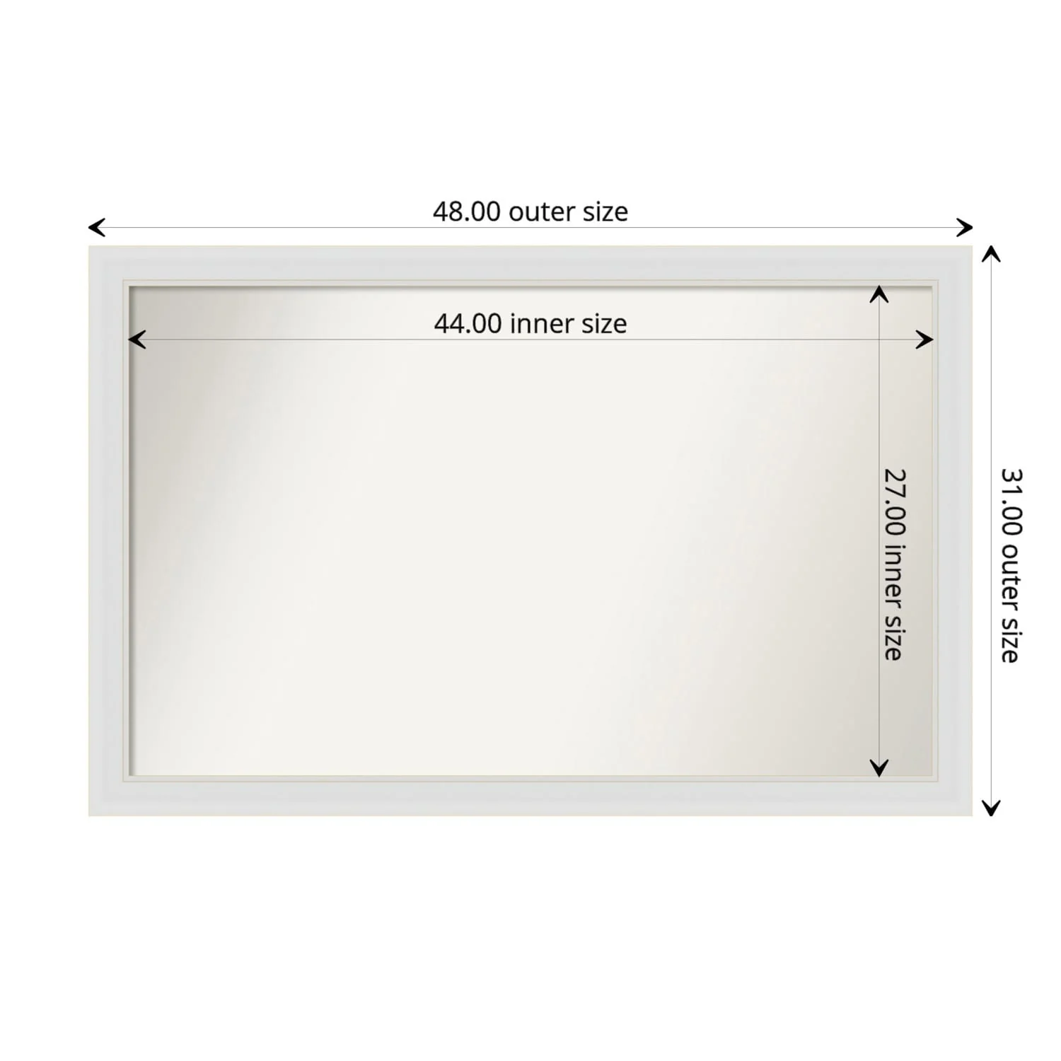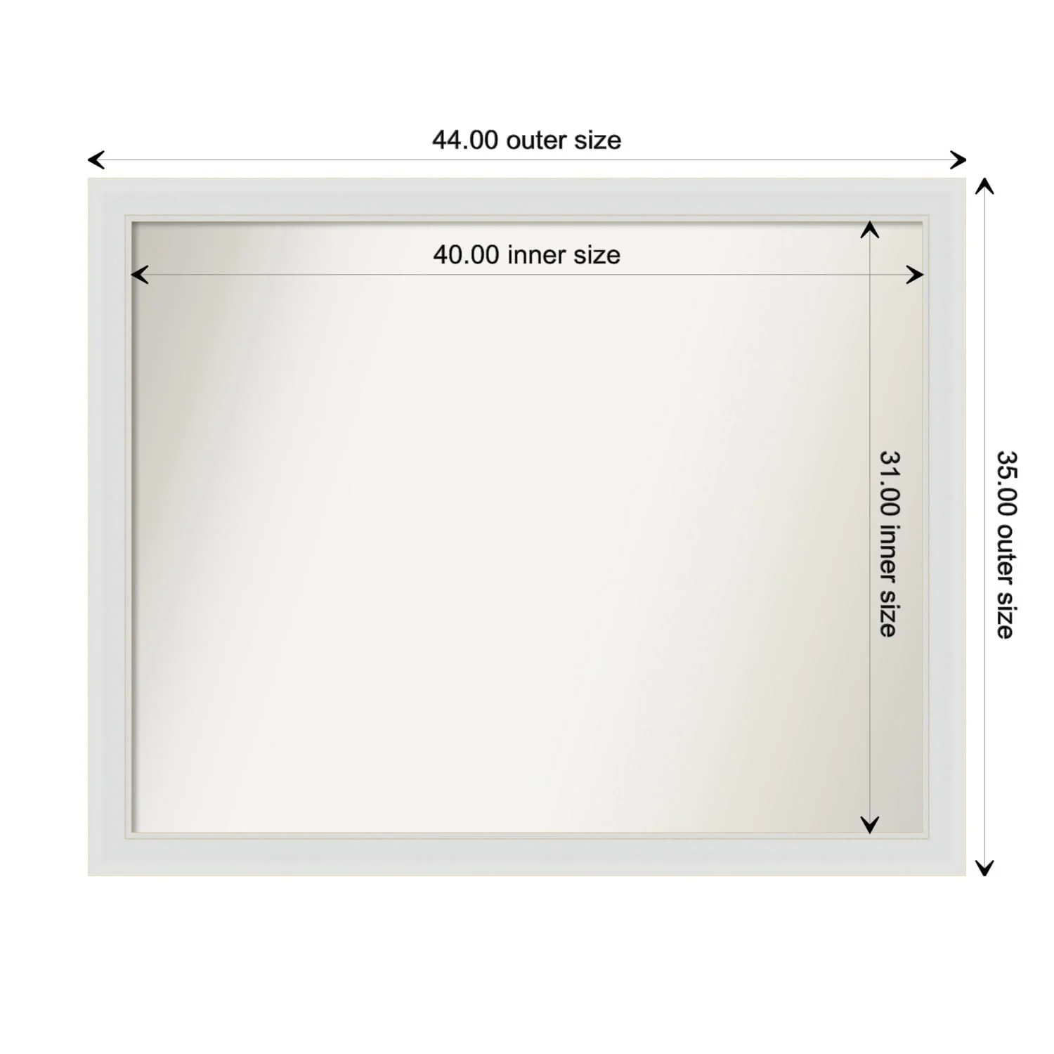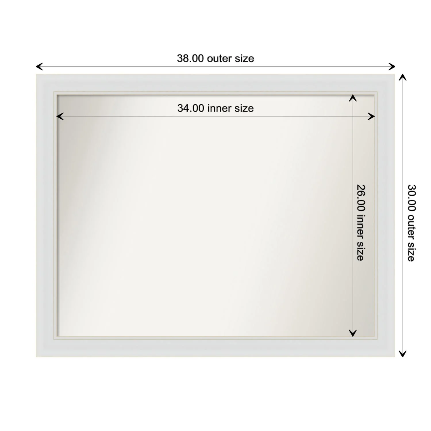 Flair Soft White Narrow Framed Non-Beveled Custom Wall Mirror, Bathroom Vanity Mirror