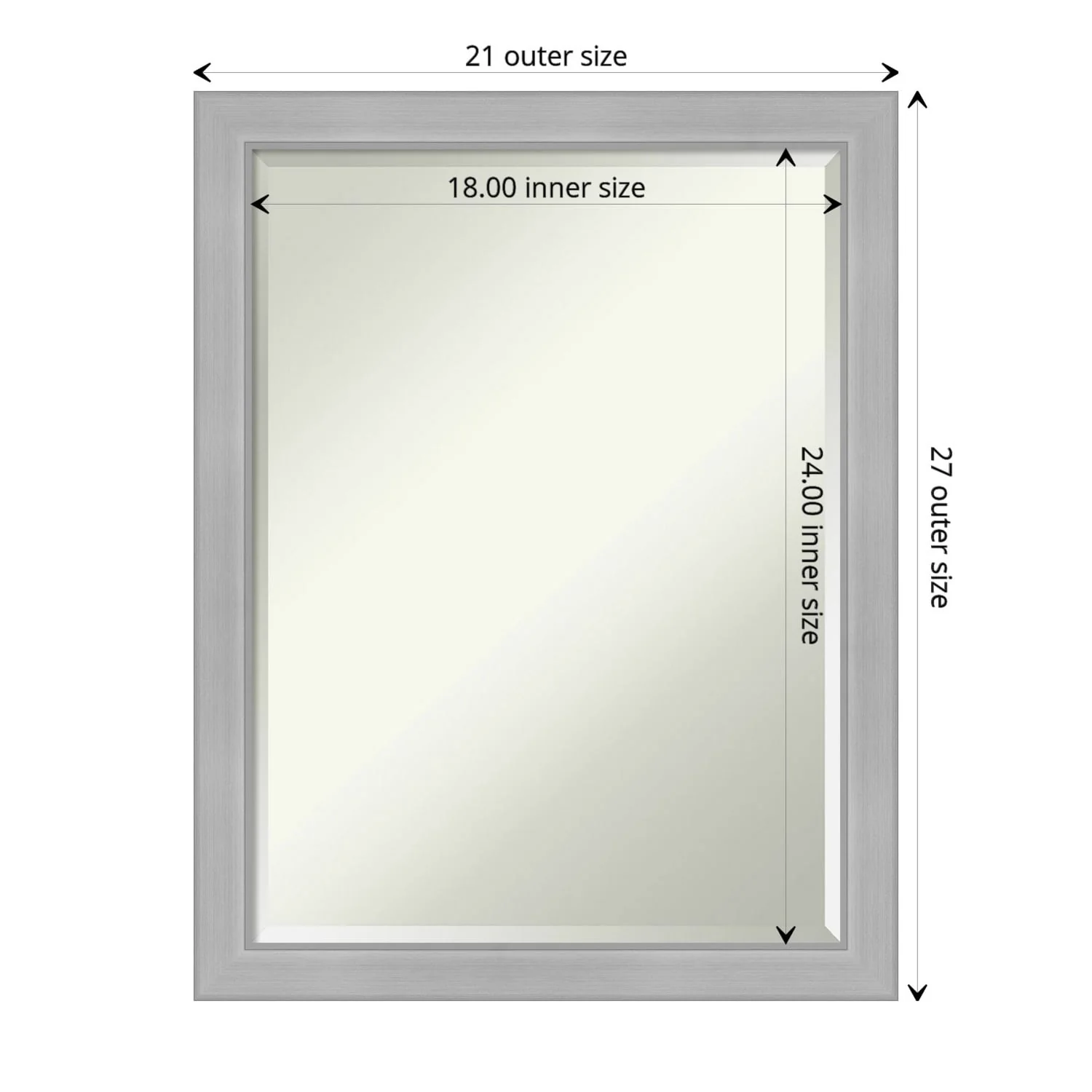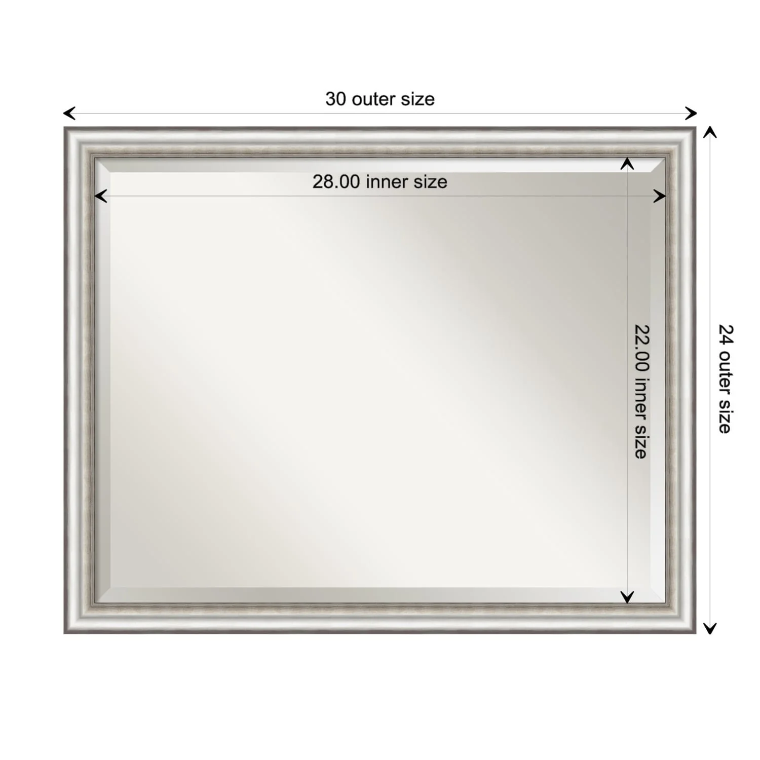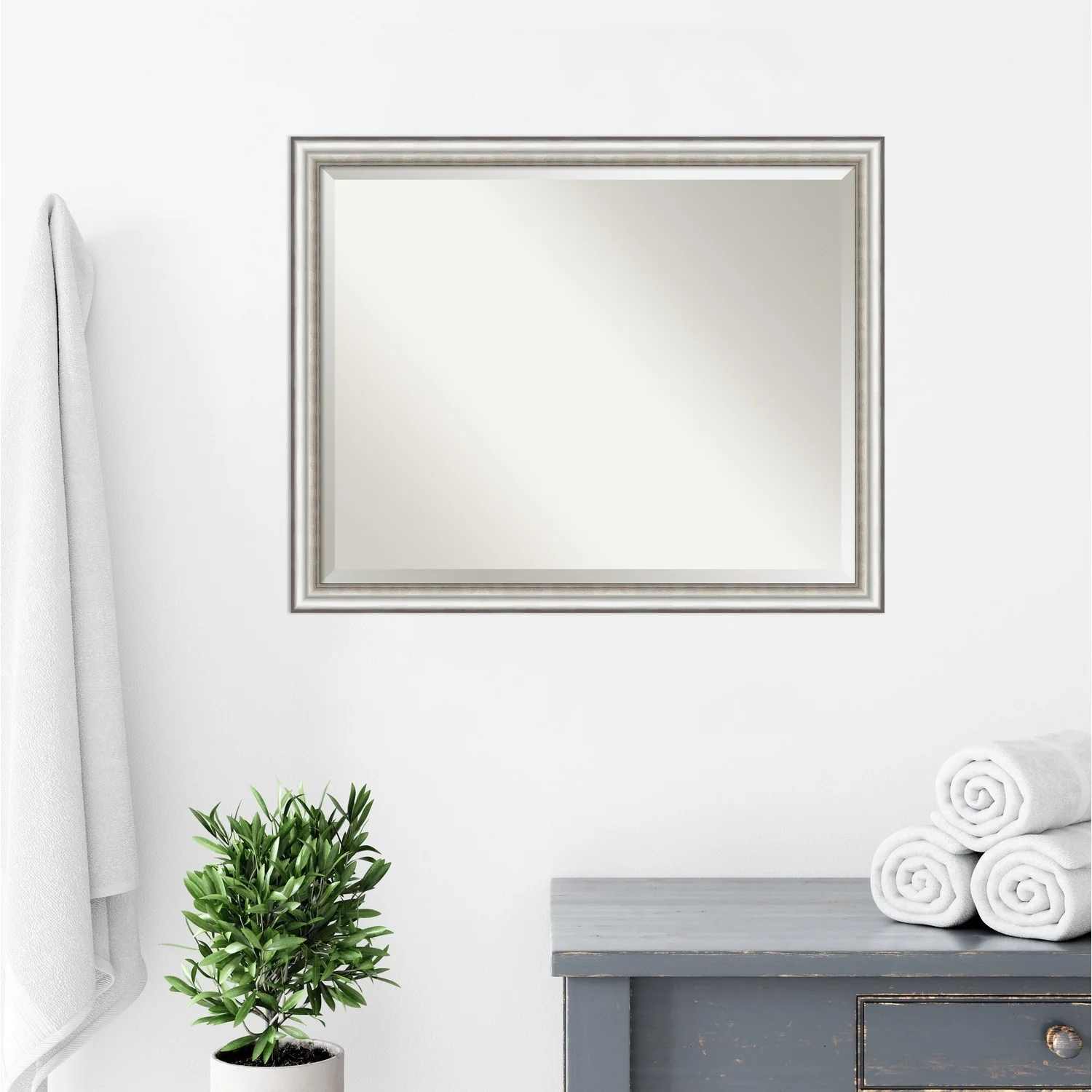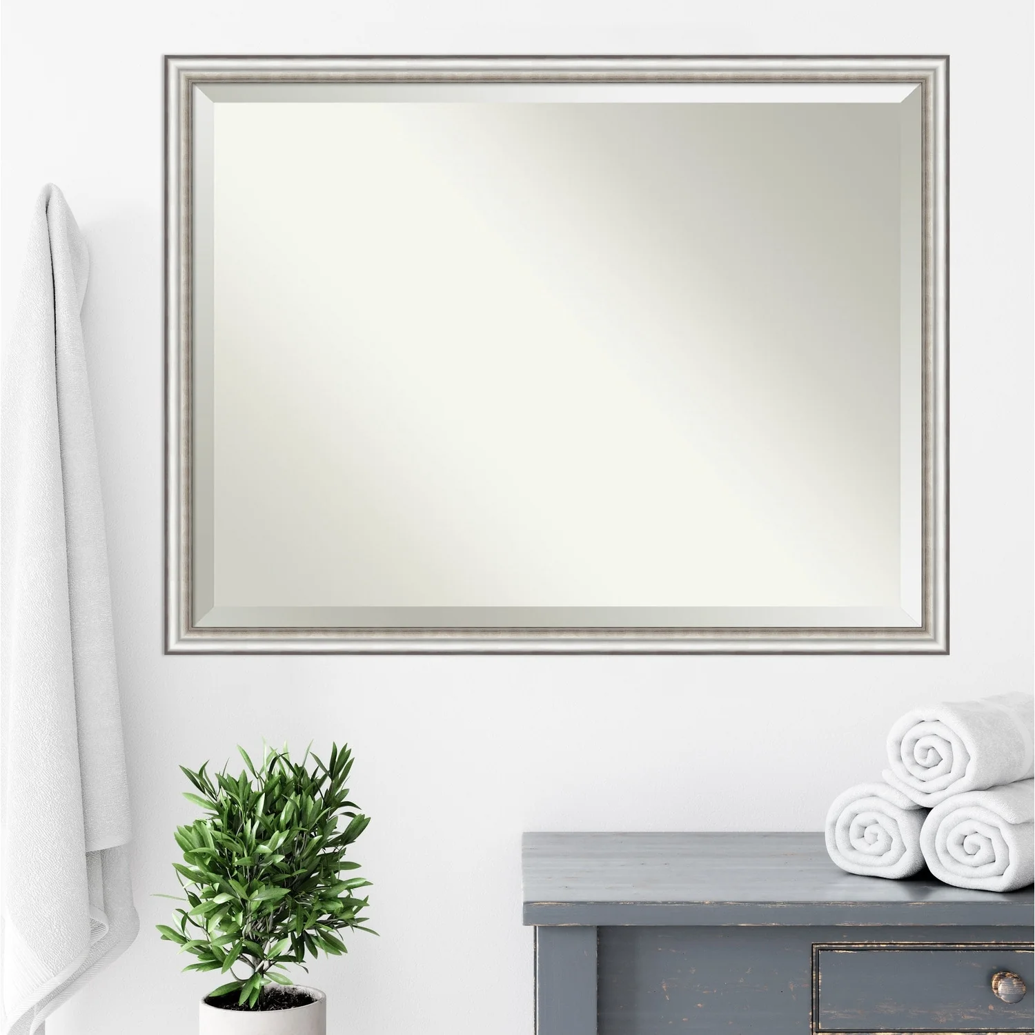 Beveled Bathroom Wall Mirror - Salon Silver Narrow Frame - Salon Silver Narrow