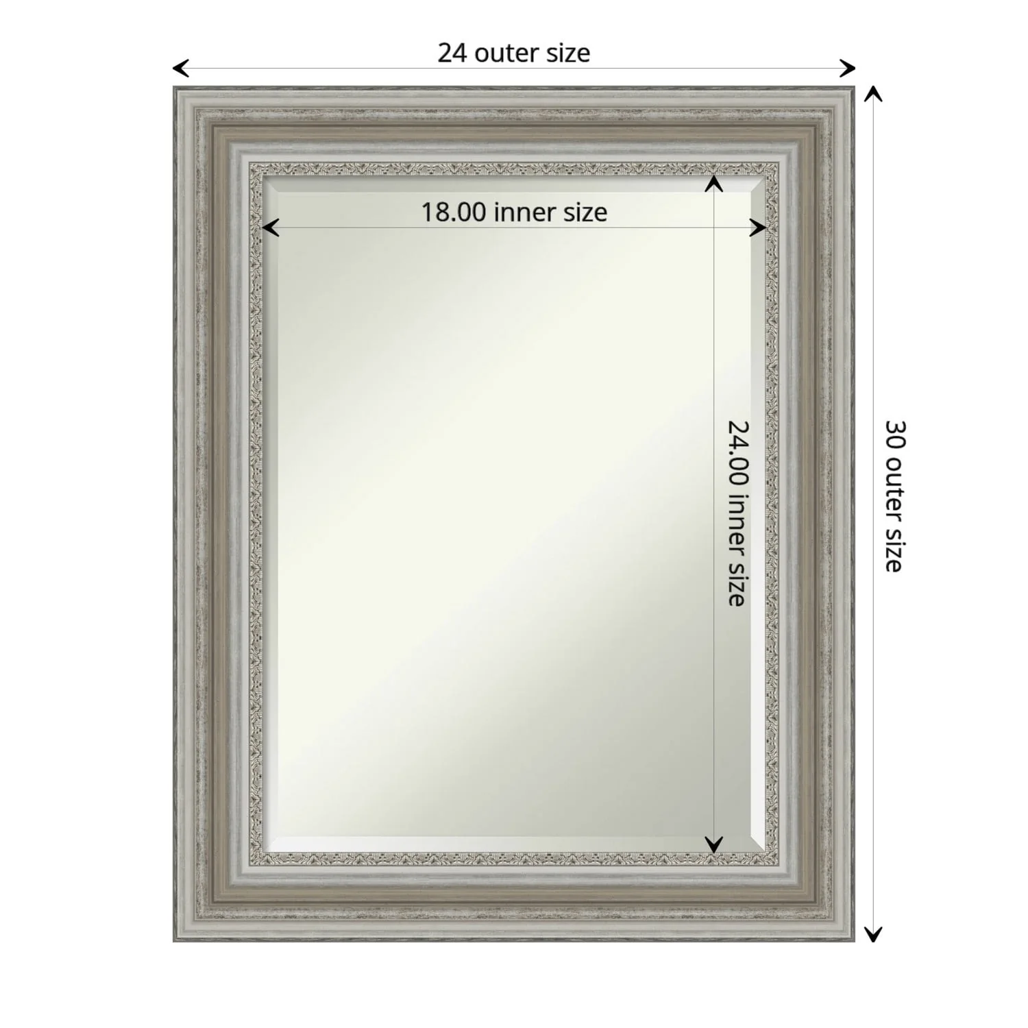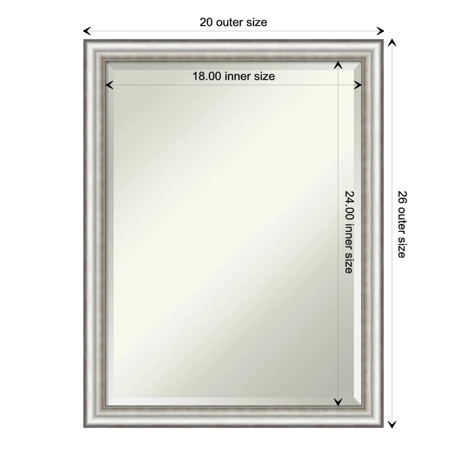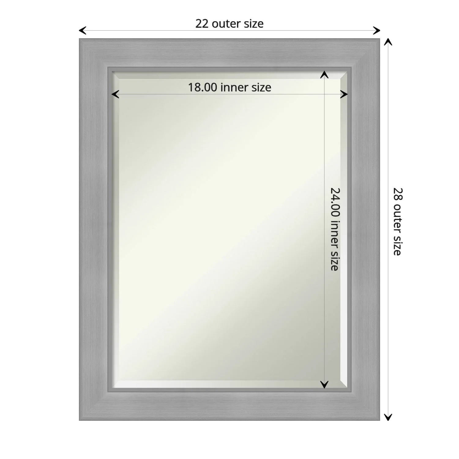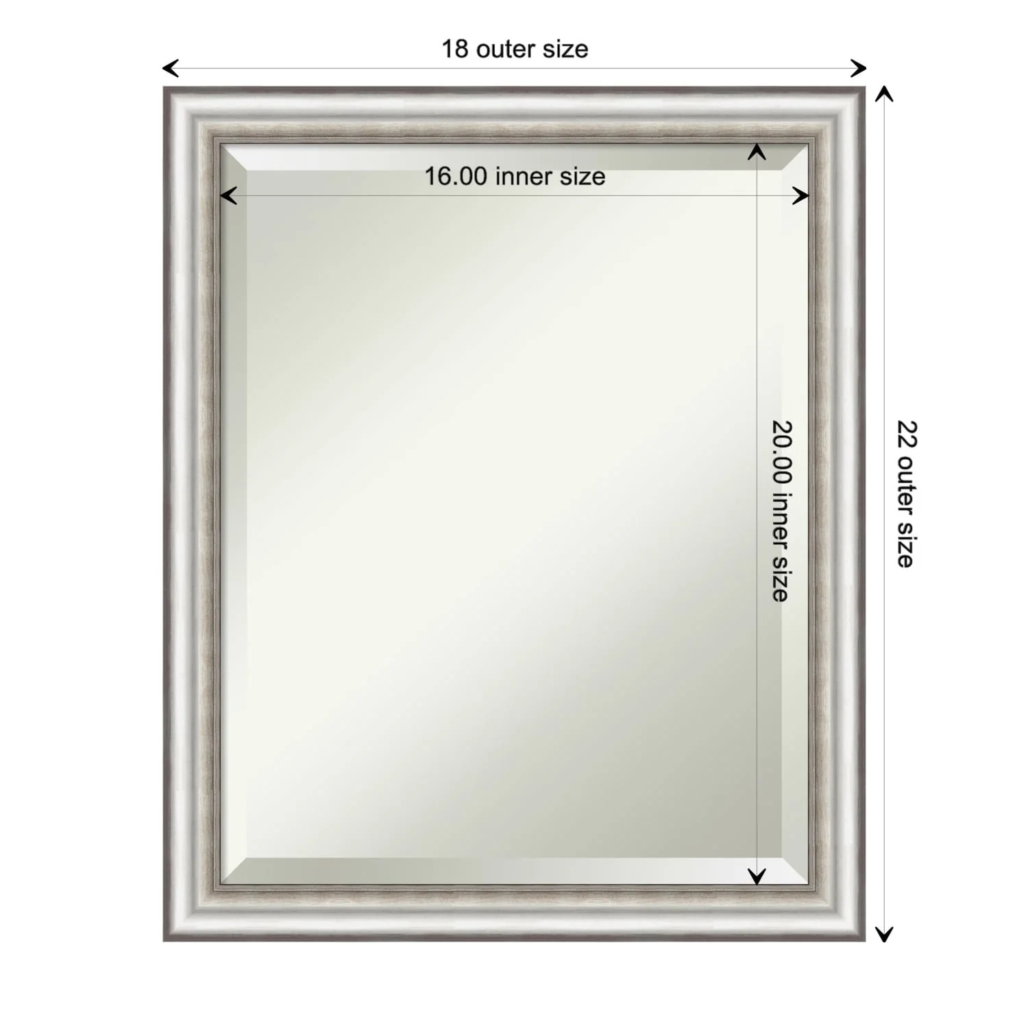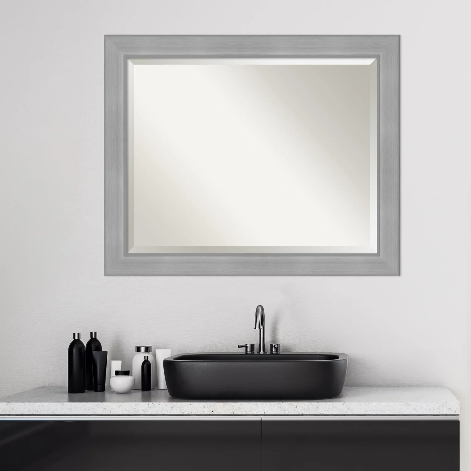 Beveled Bathroom Wall Mirror - Salon Silver Narrow Frame - Salon Silver Narrow