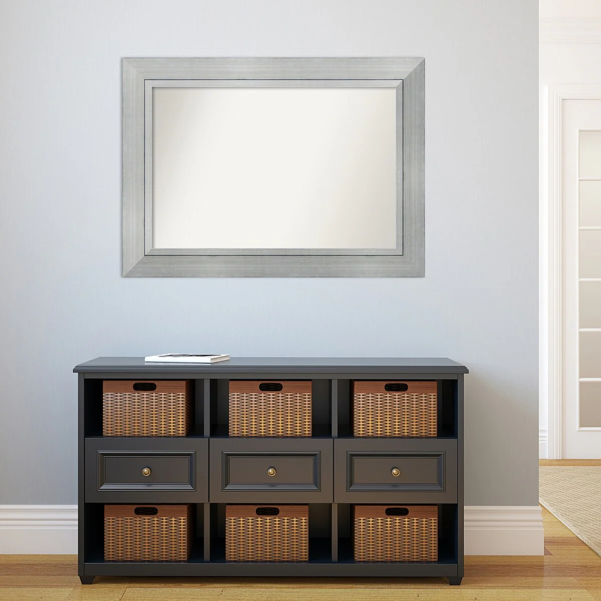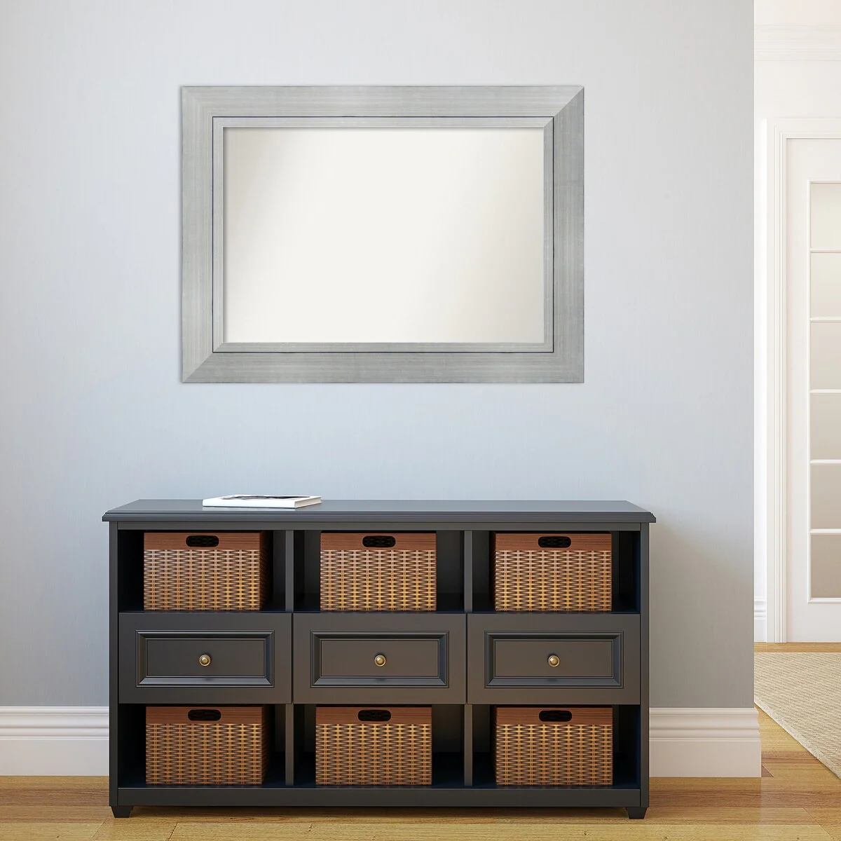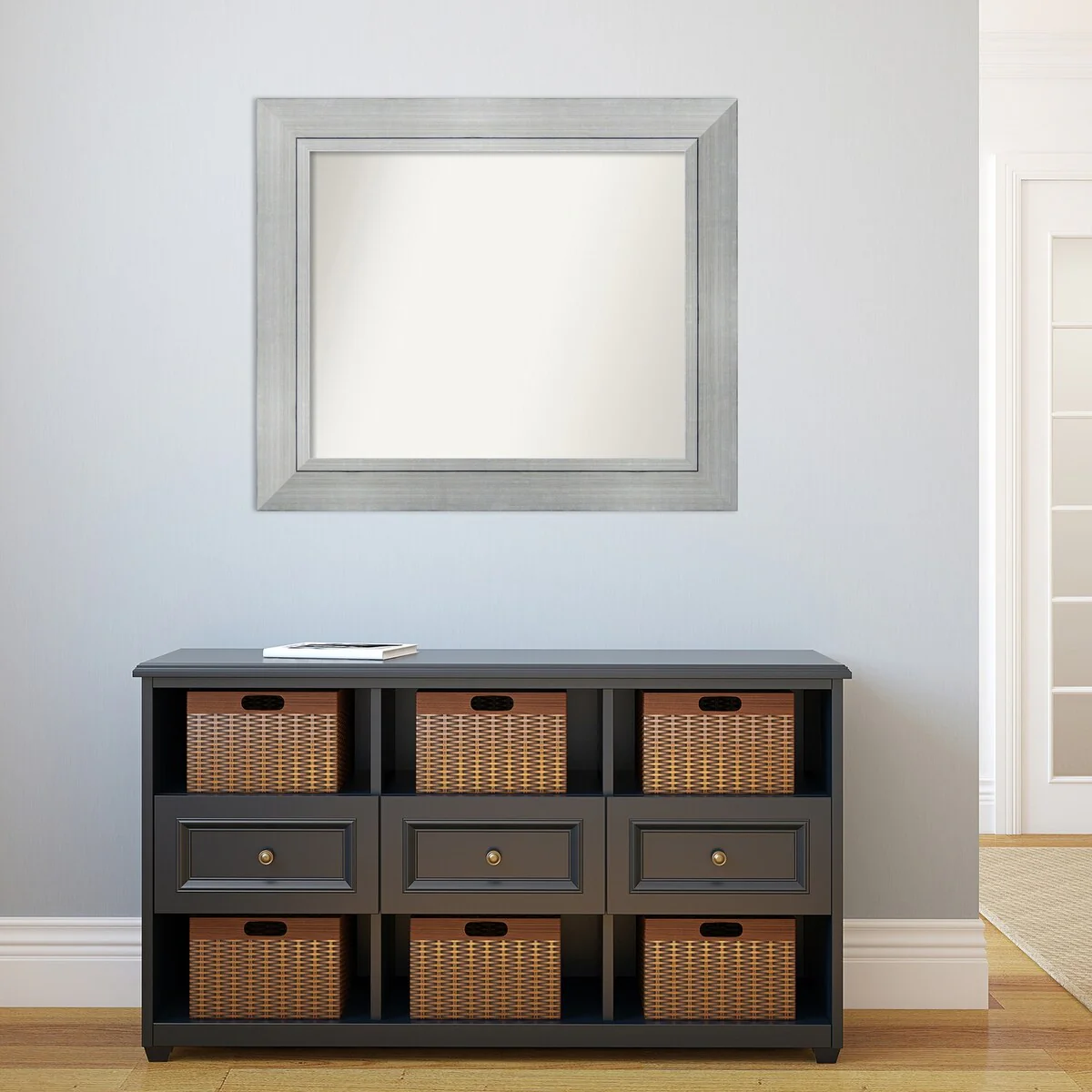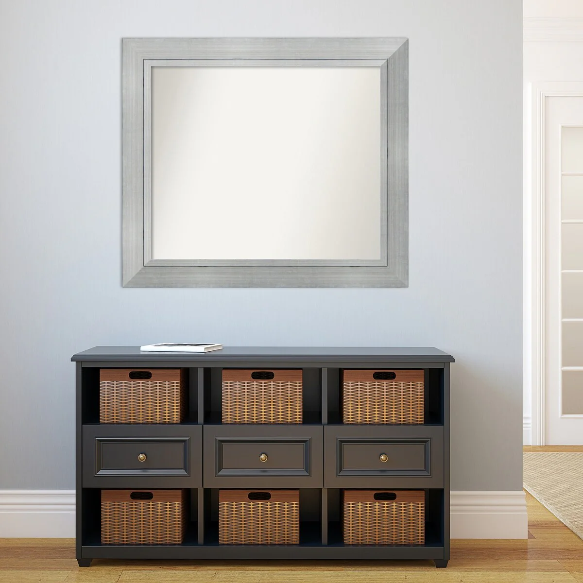 Beveled Bathroom Wall Mirror - Salon Silver Narrow Frame - Salon Silver Narrow