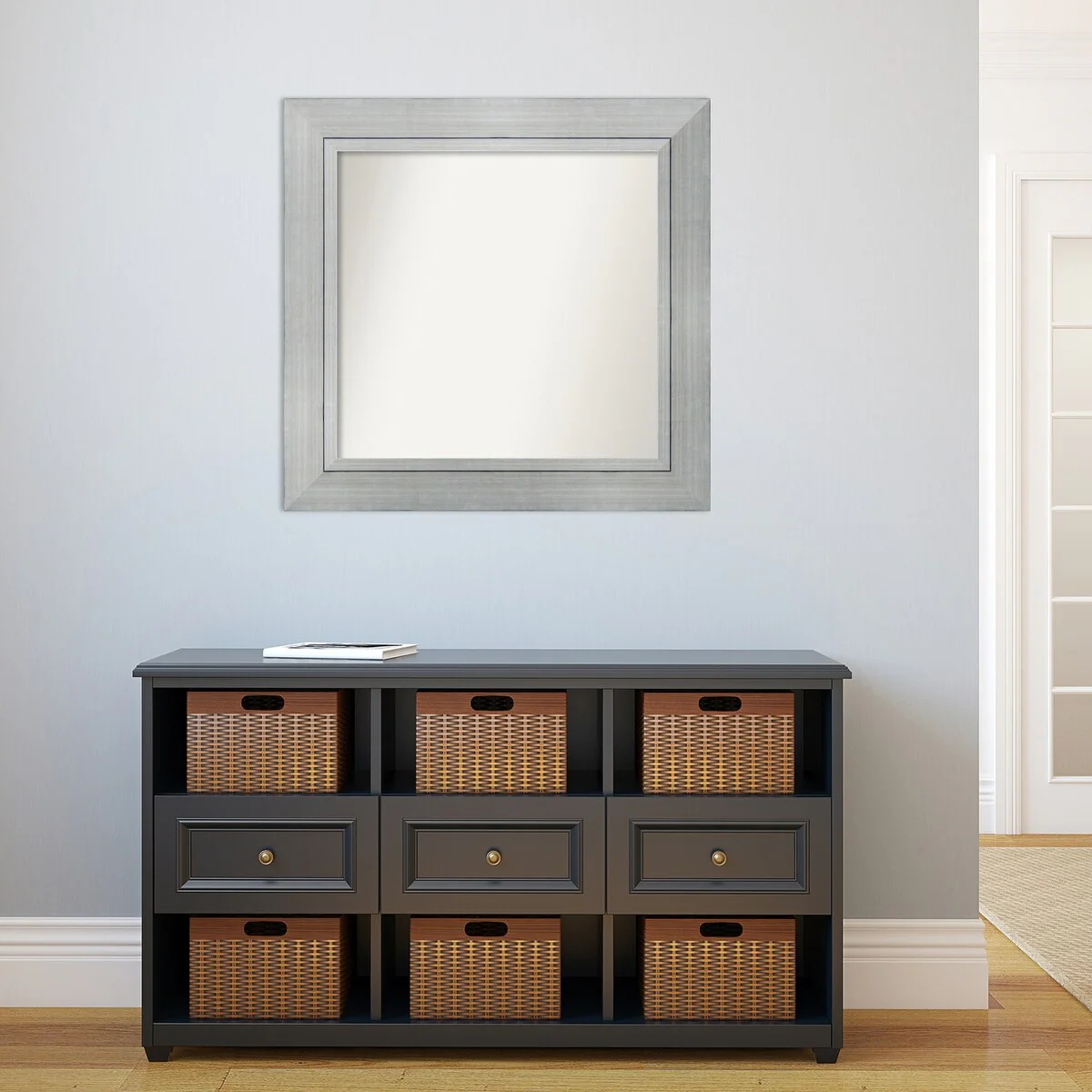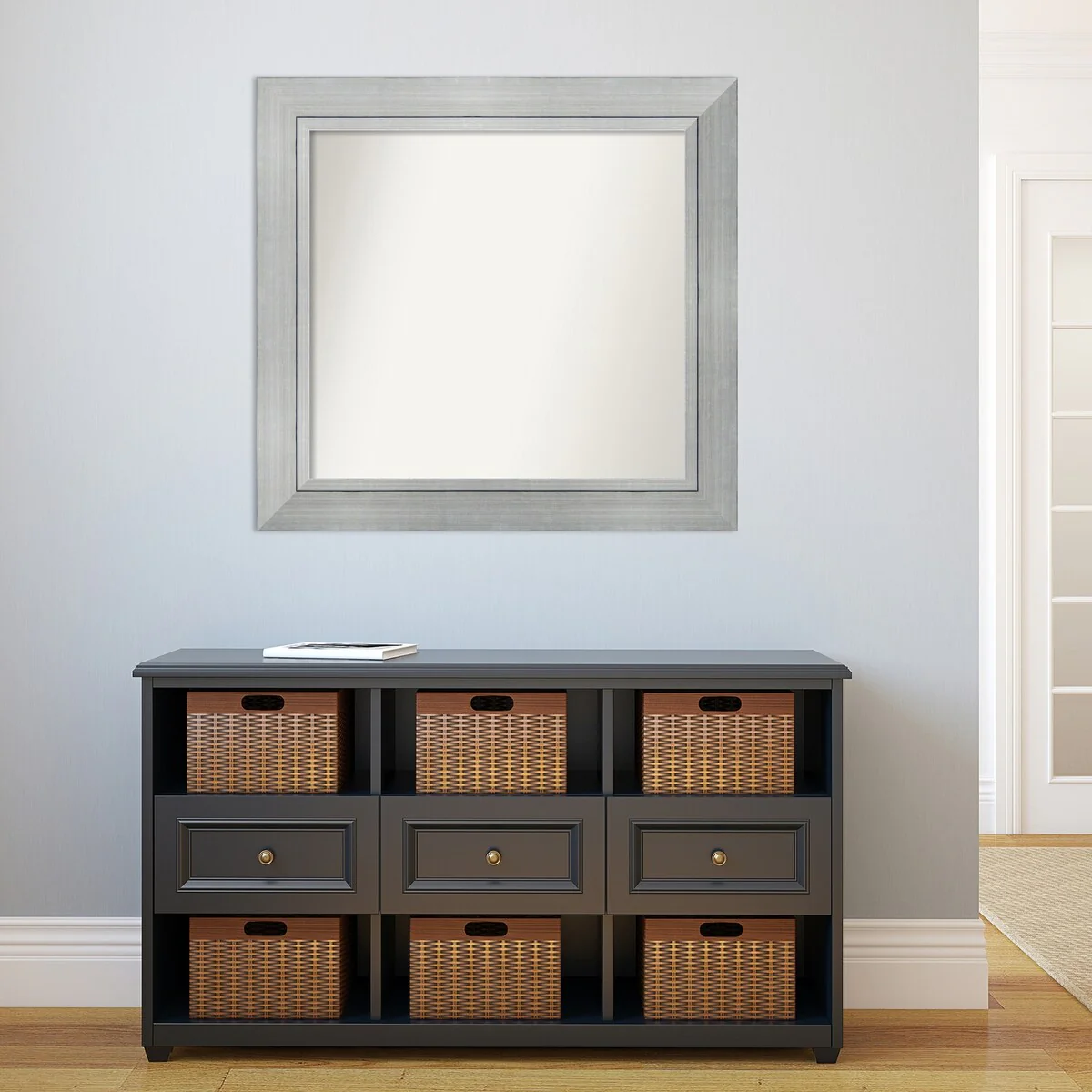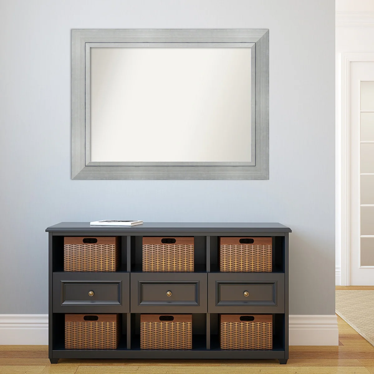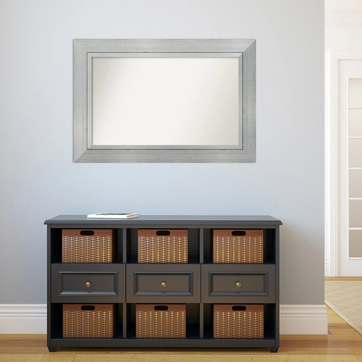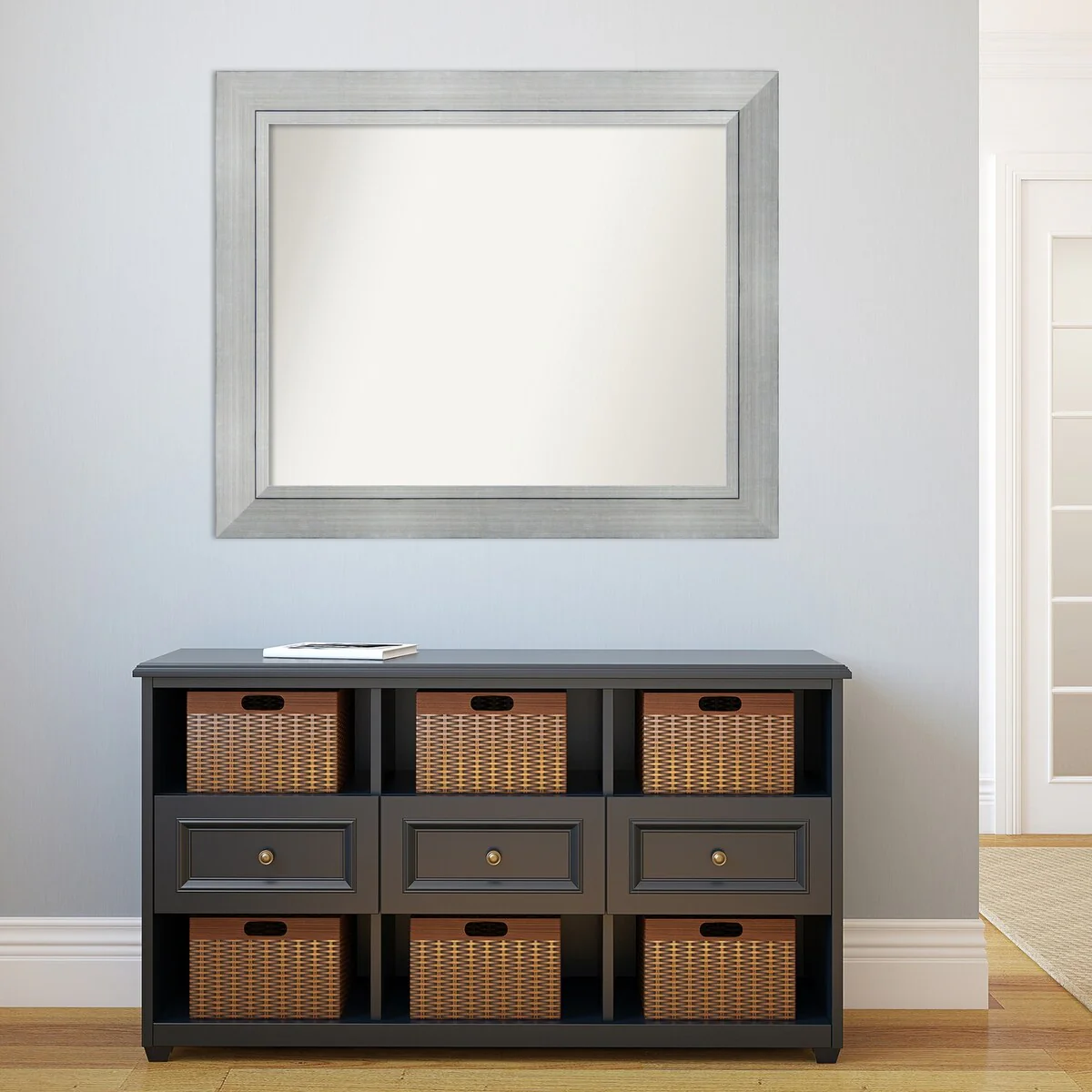 Beveled Bathroom Wall Mirror - Salon Silver Narrow Frame - Salon Silver Narrow