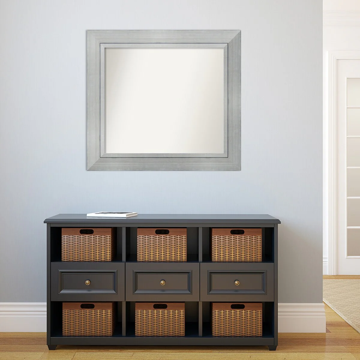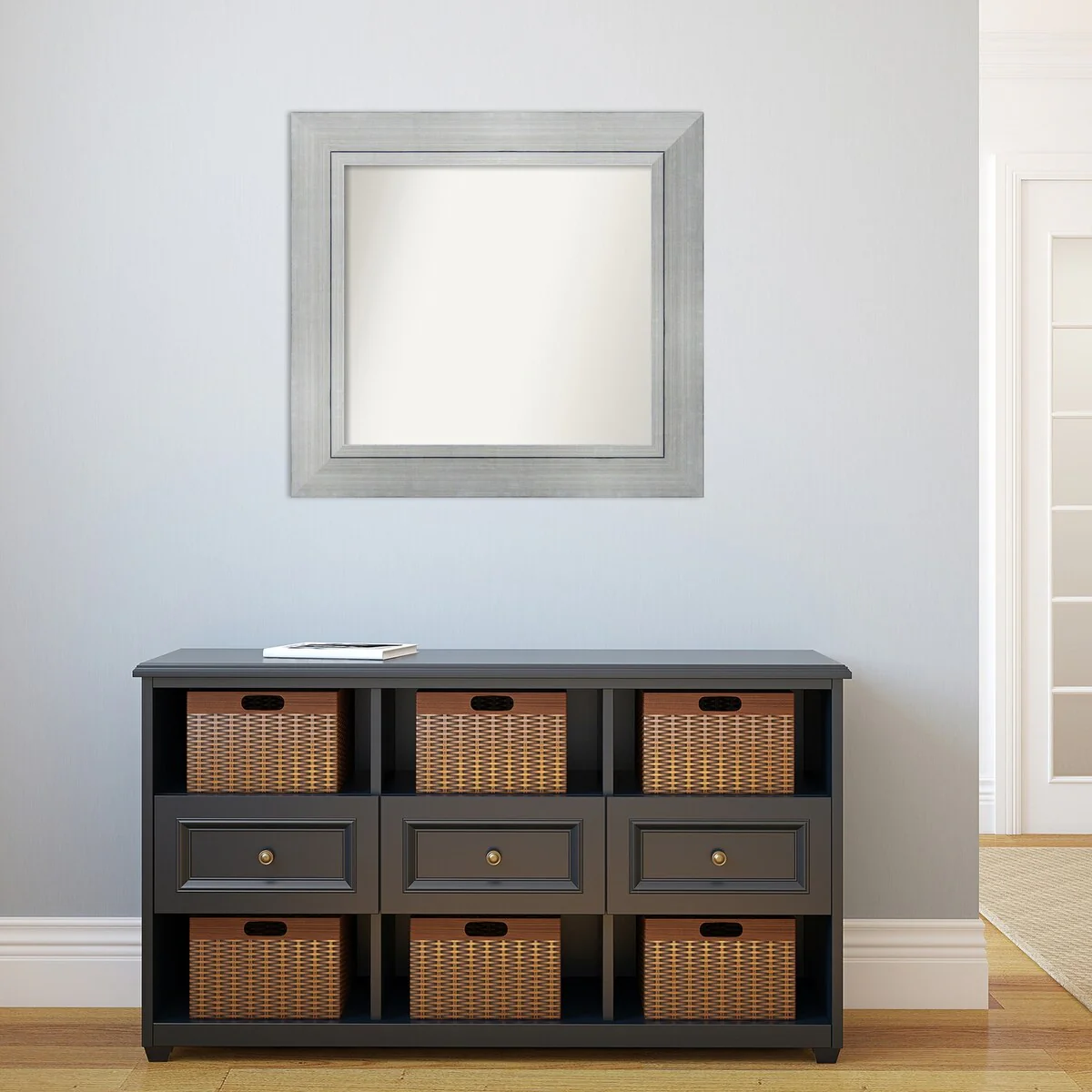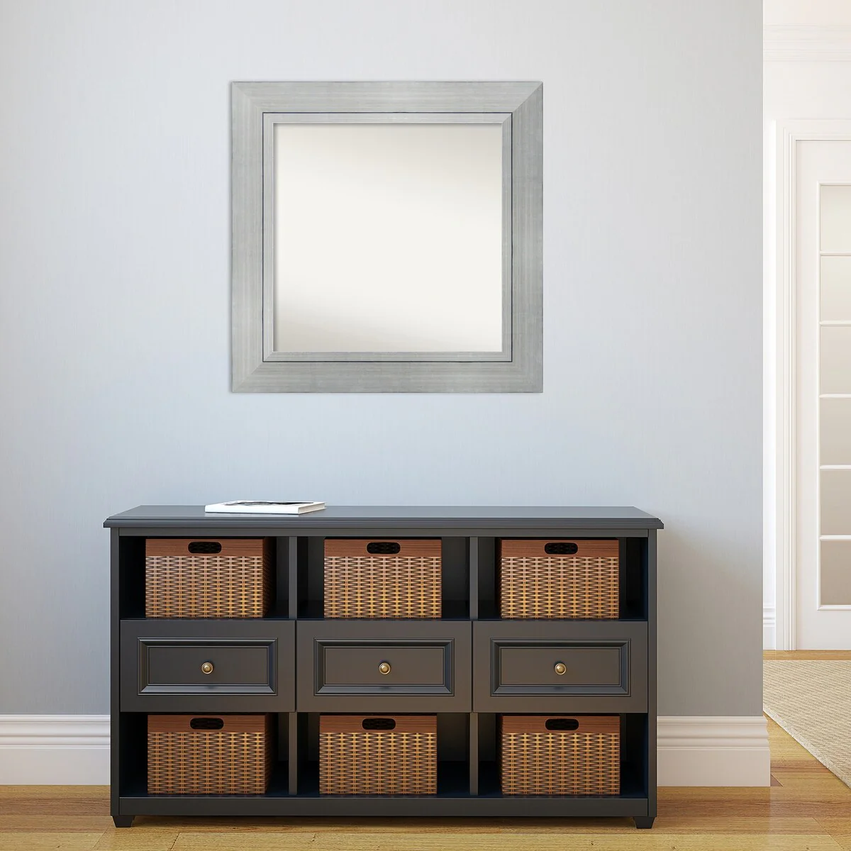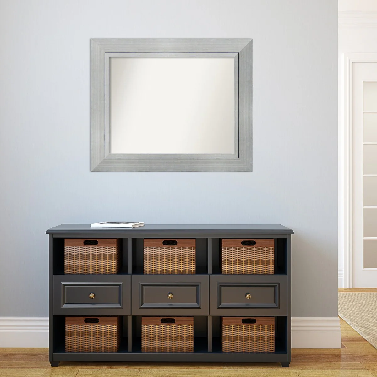 Beveled Bathroom Wall Mirror - Salon Silver Narrow Frame - Salon Silver Narrow