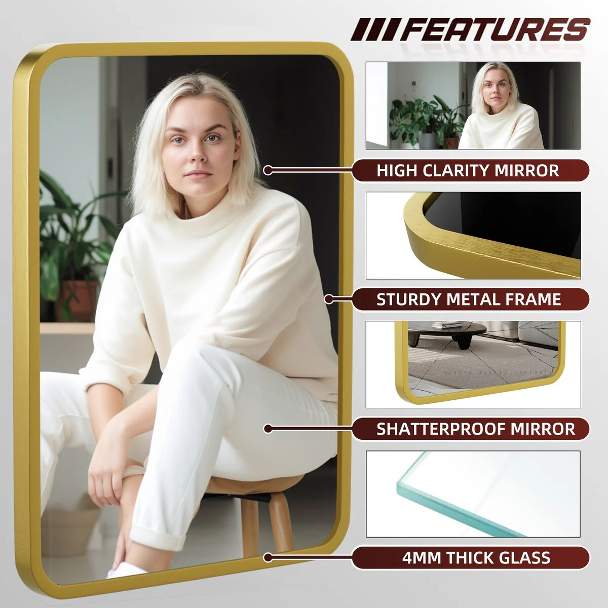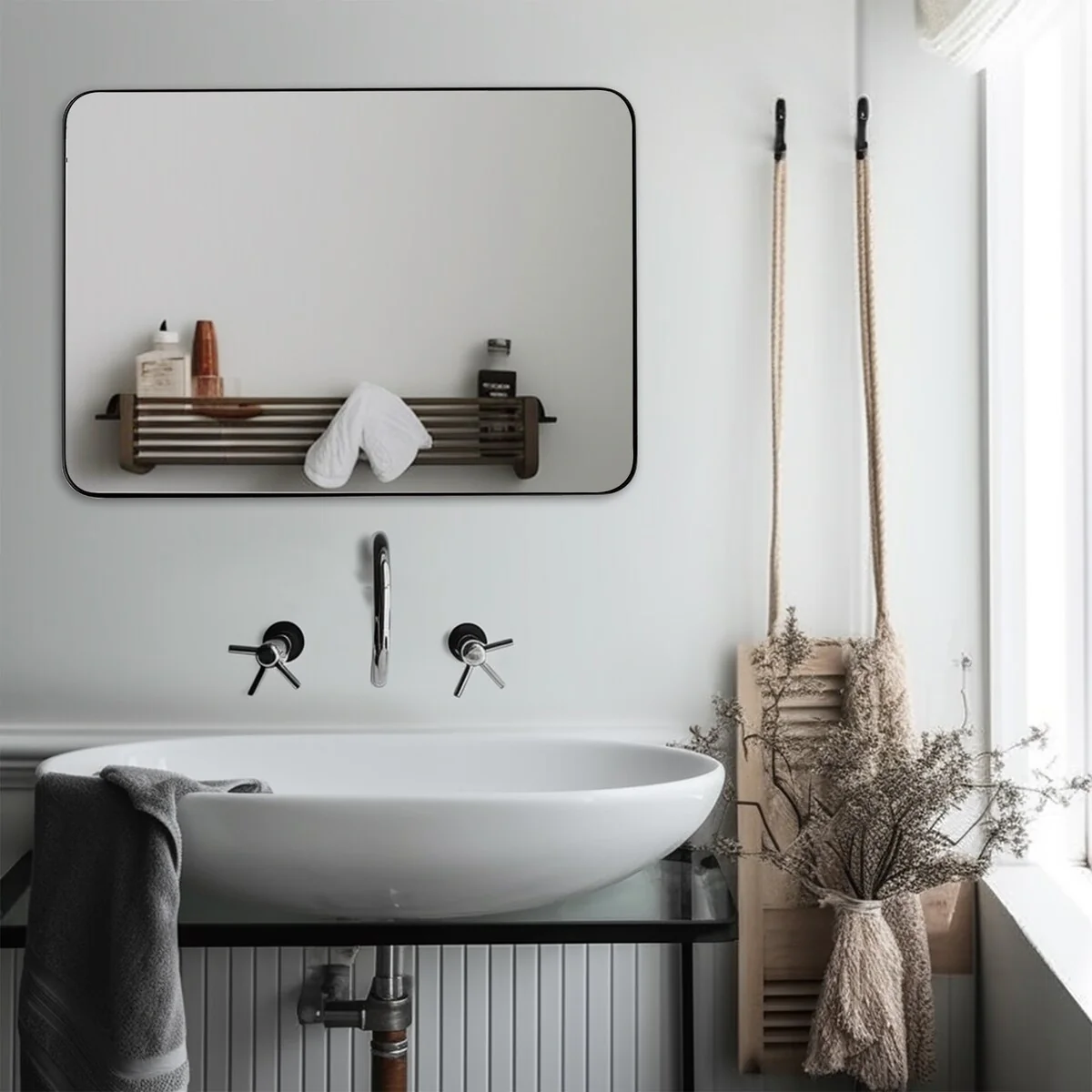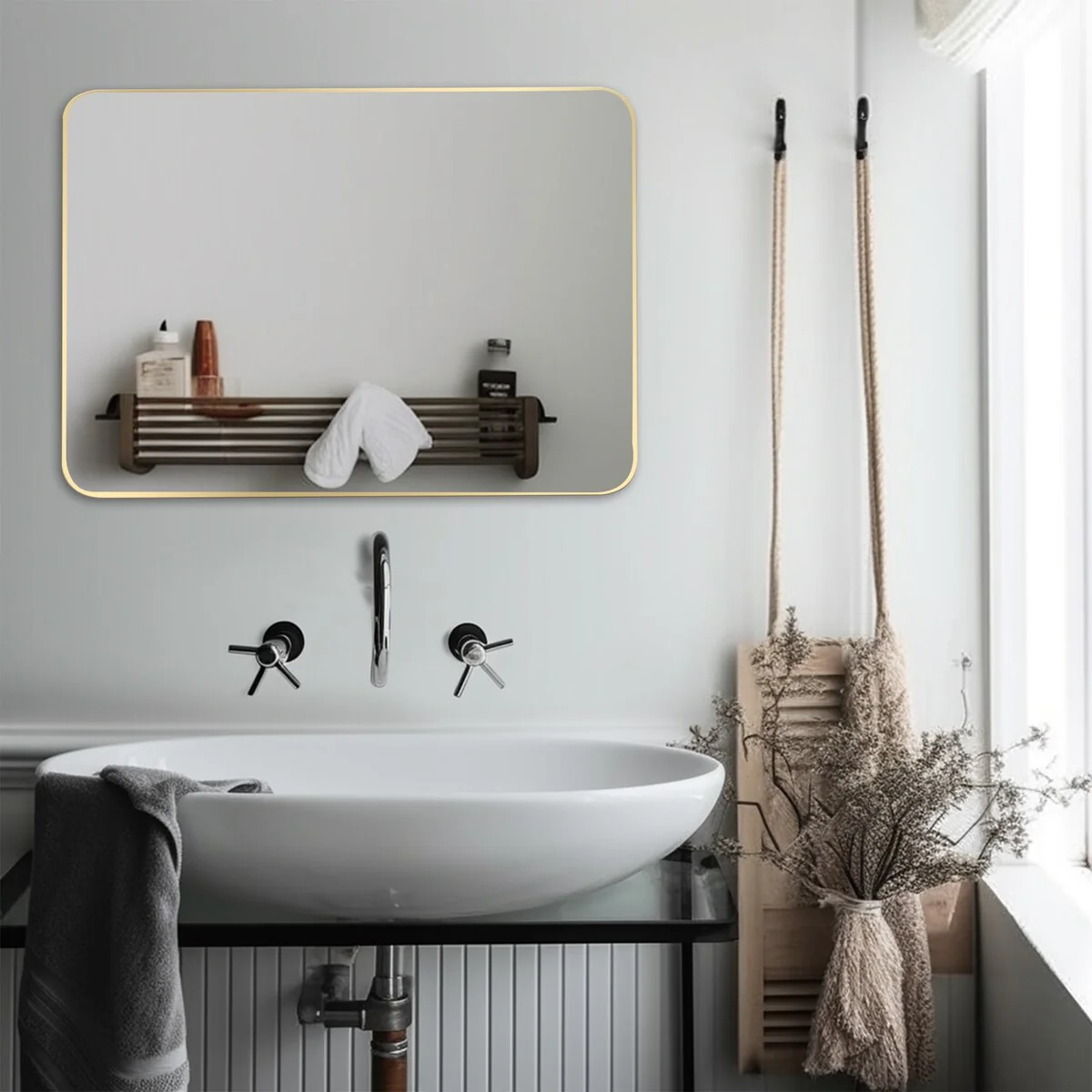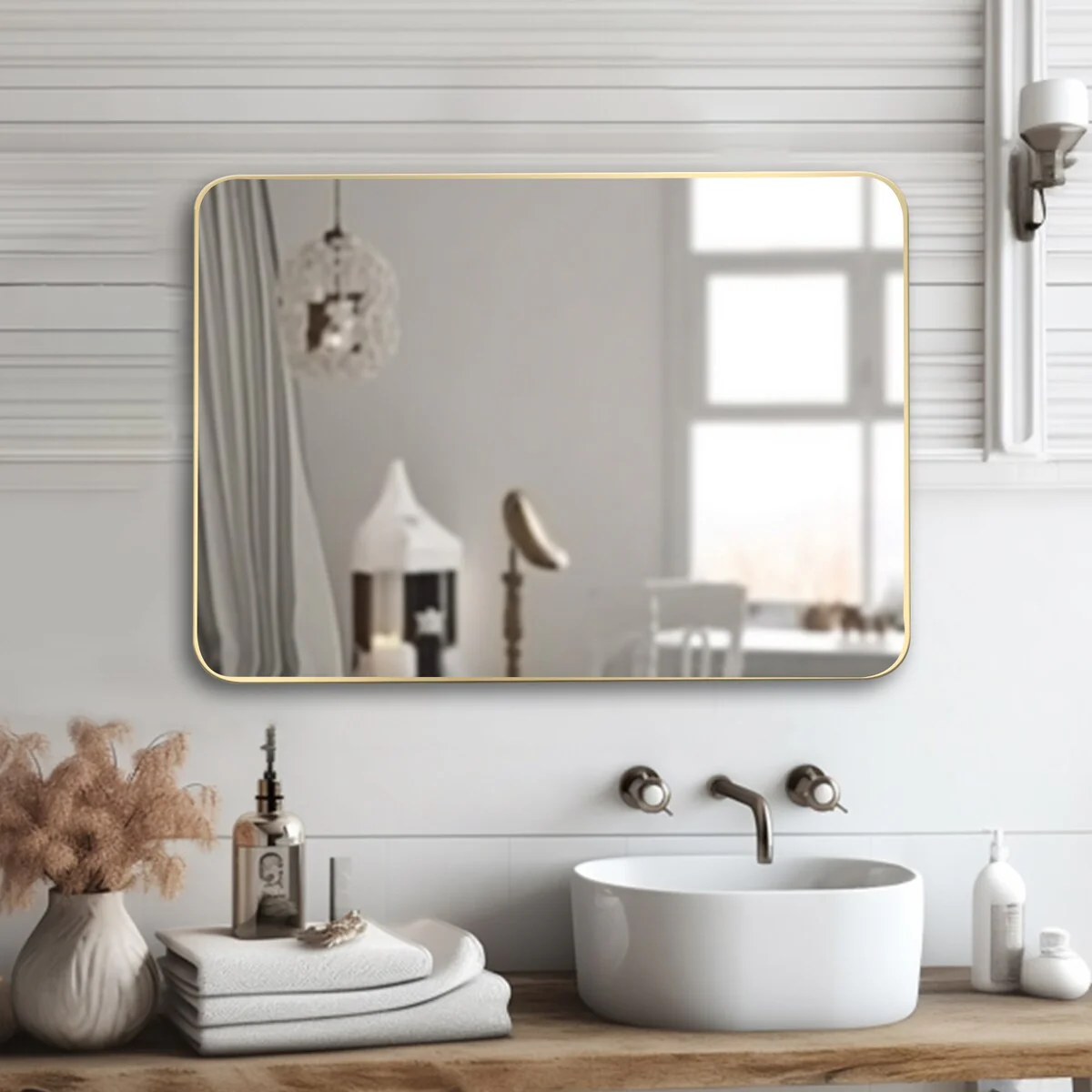 Wide Edge Wall Mirror Rectangle Bathroom Metal Frame Vanity Mirror