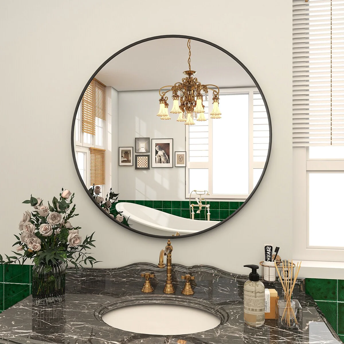 Round Wall Mirror Bathroom Metal Frame Vanity Mirror