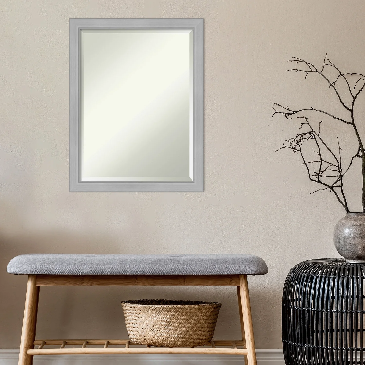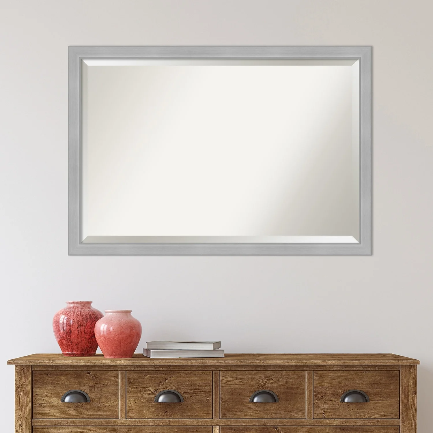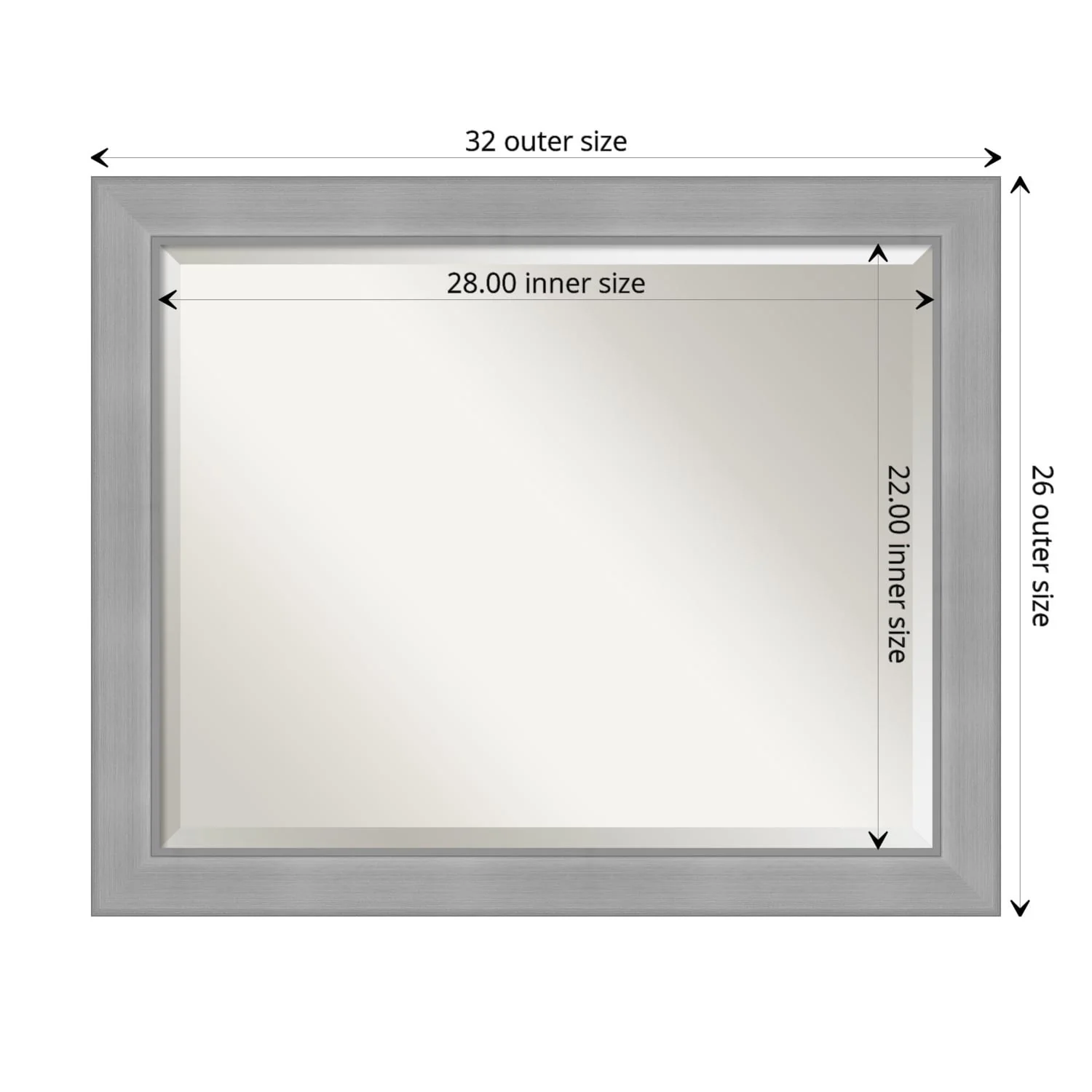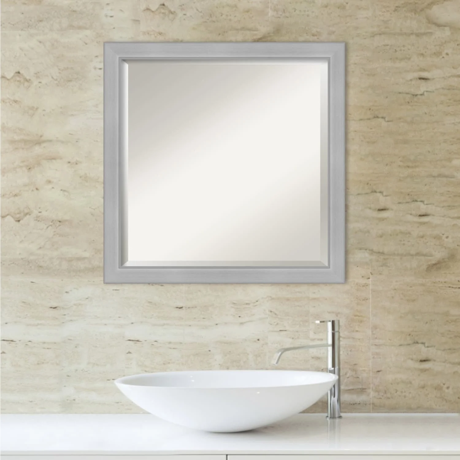 Beveled Bathroom Wall Mirror - Vista Brushed Nickel Frame