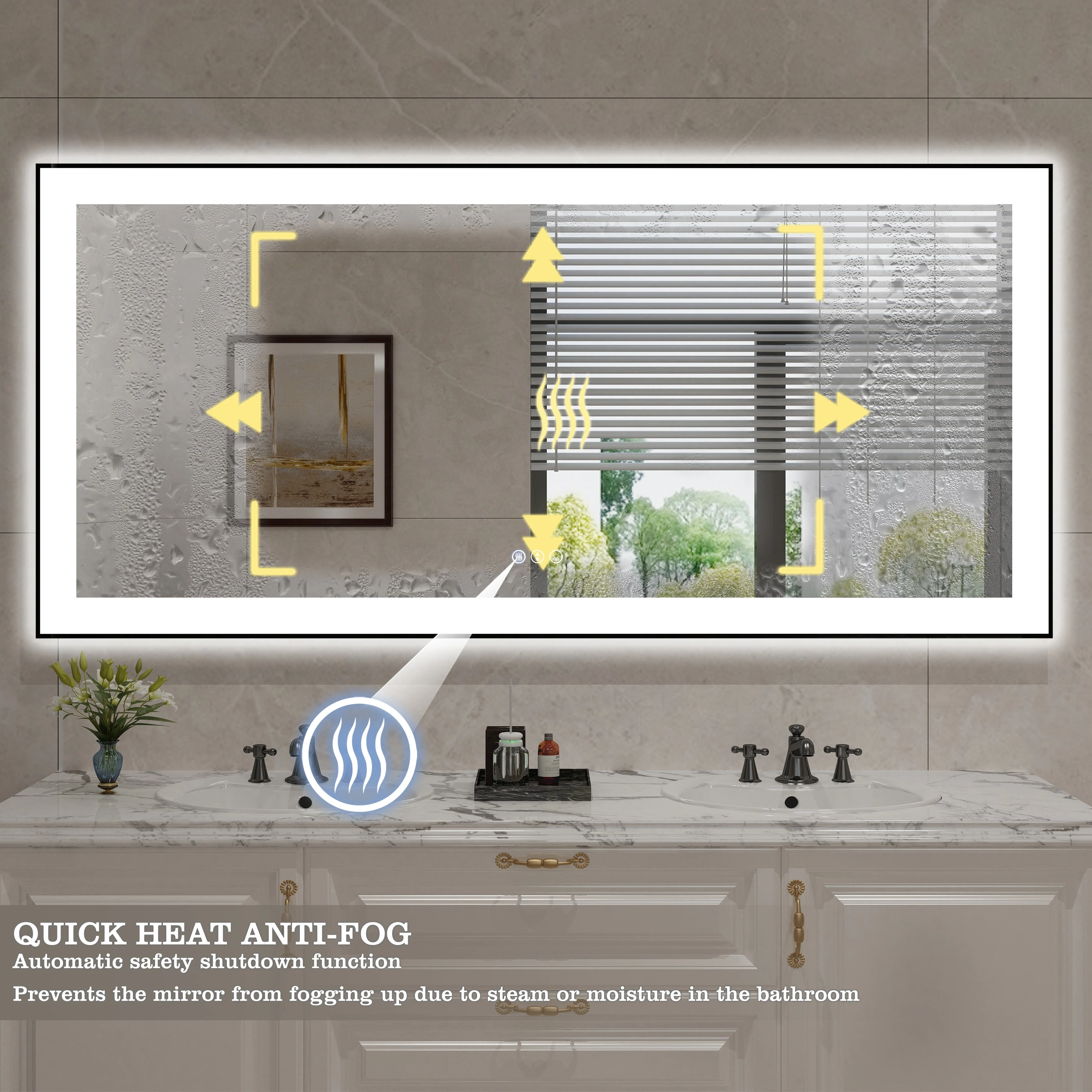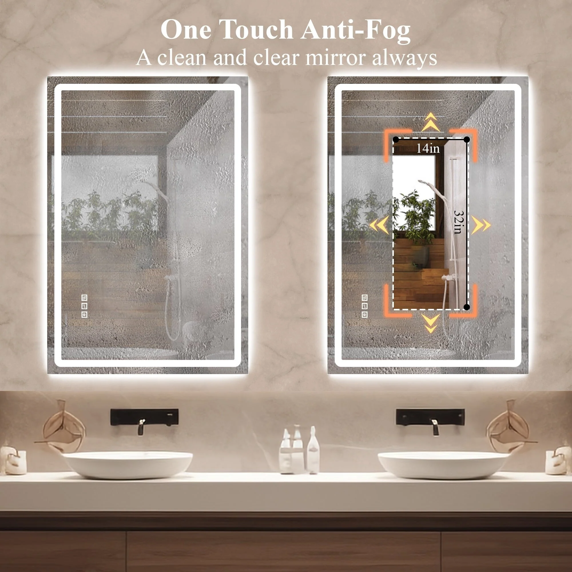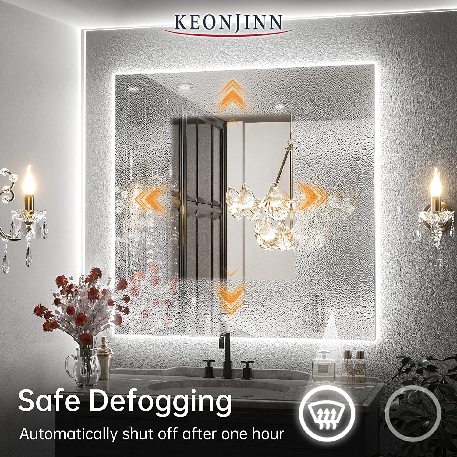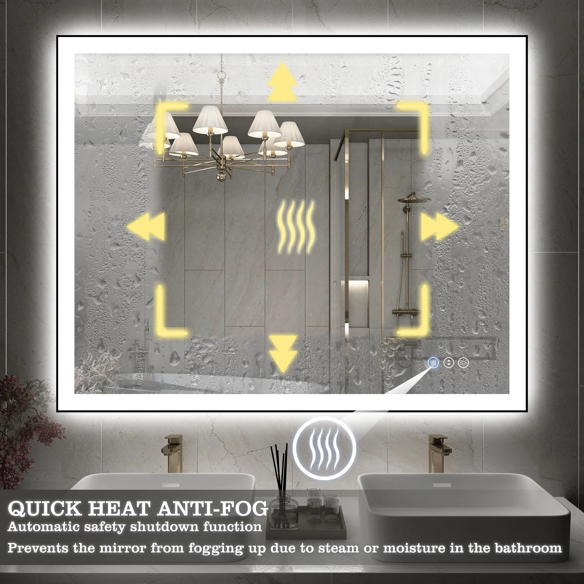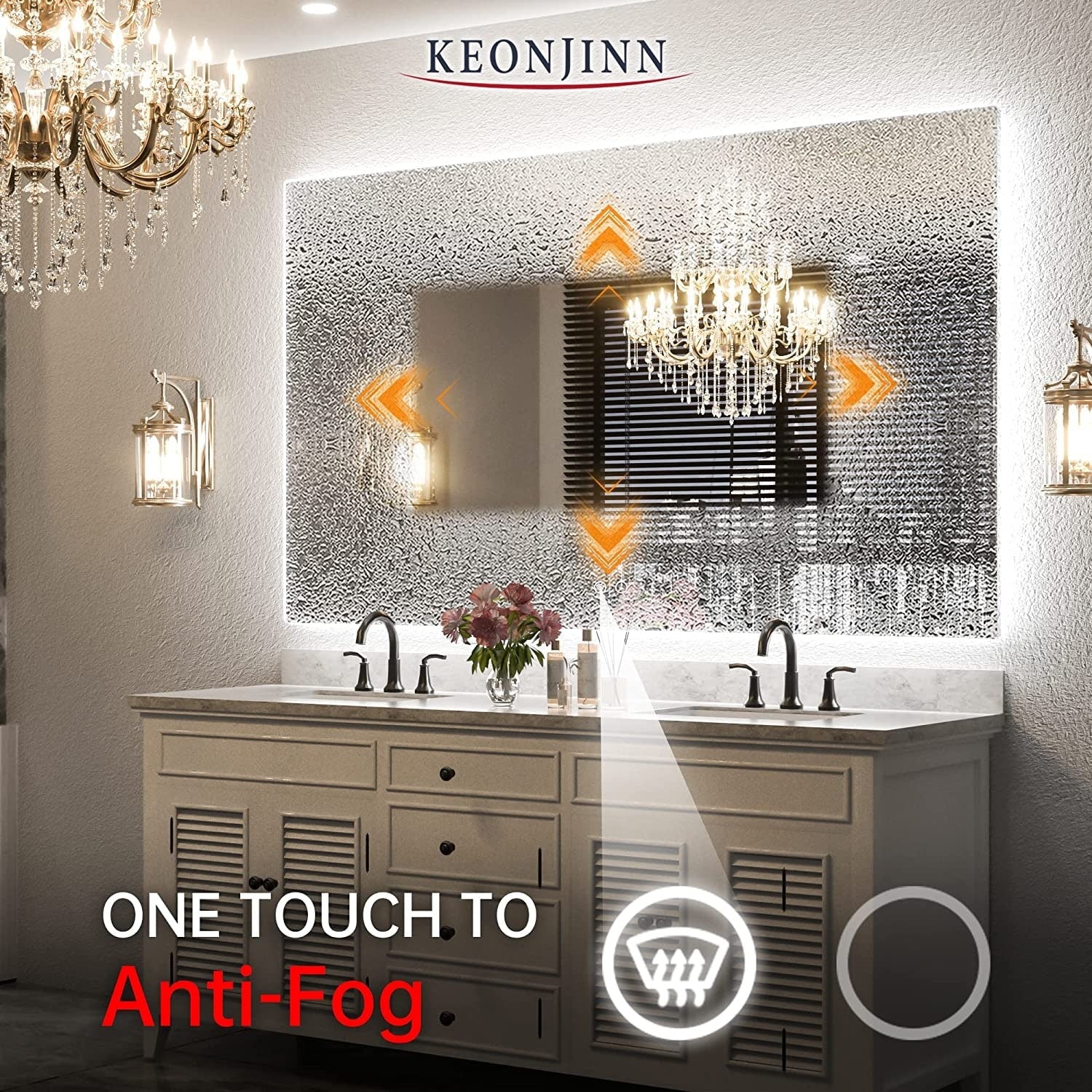 KIOTEE Super Bright Anti-fog Frameless Dimmable Mirror with Backlit and Front Lighting and 3-Year Warranty