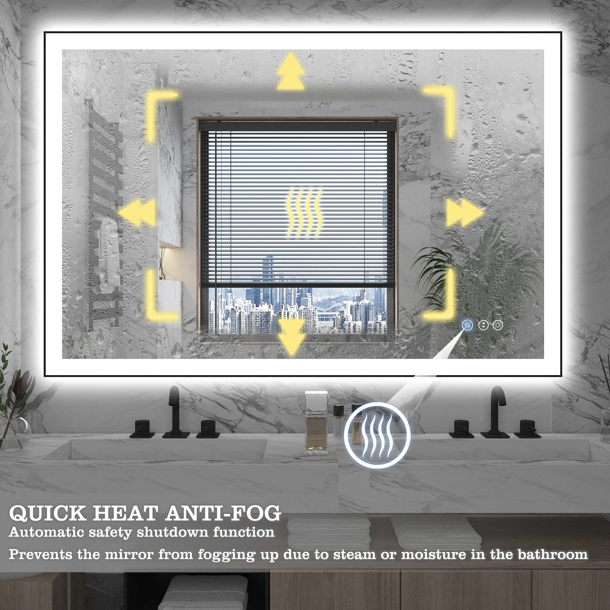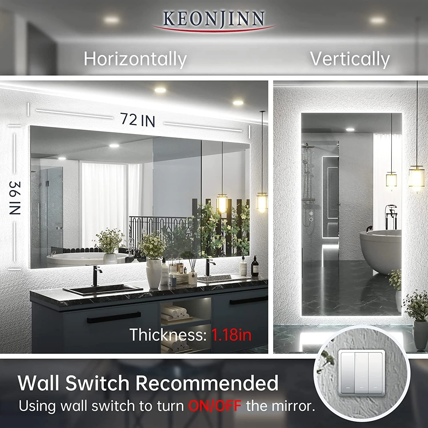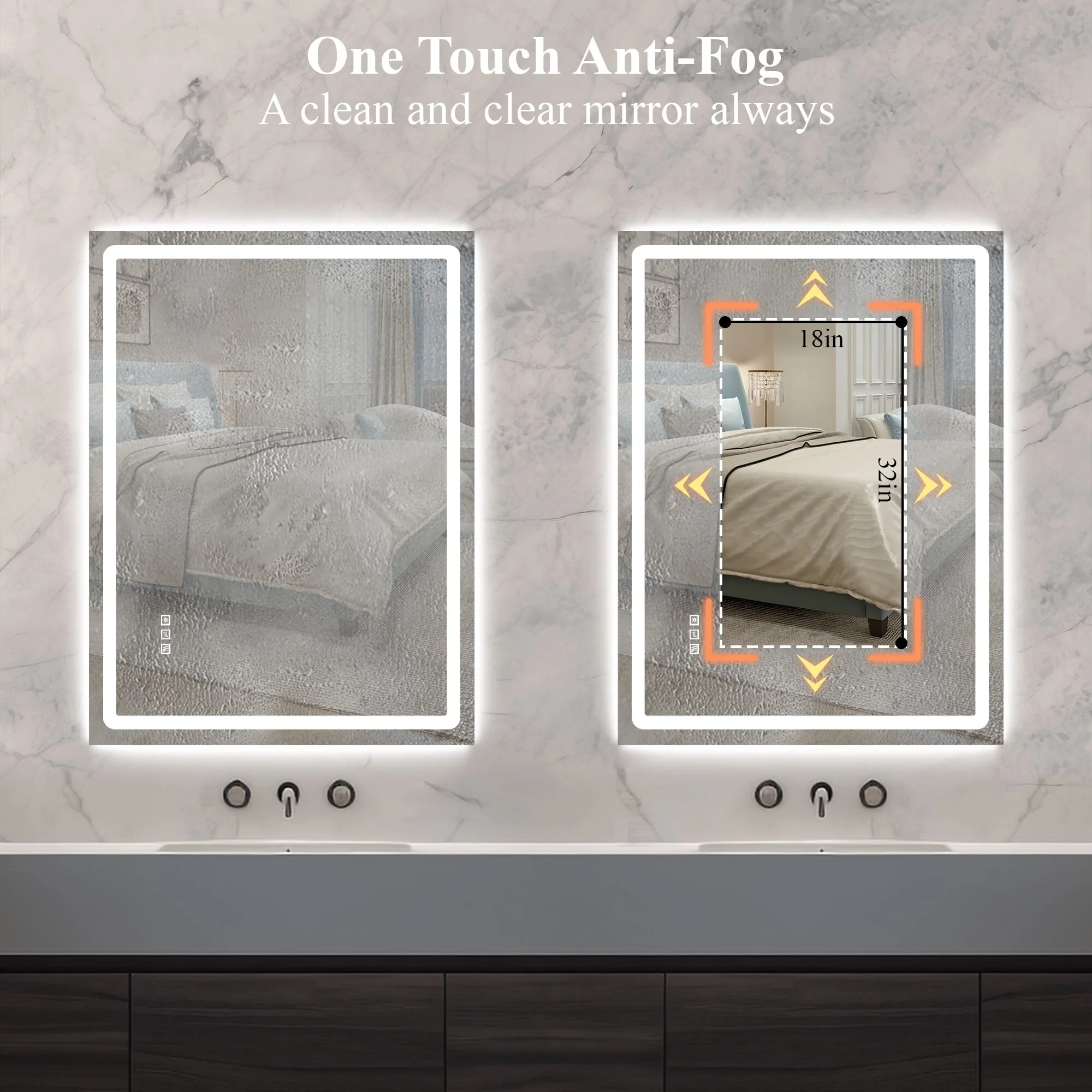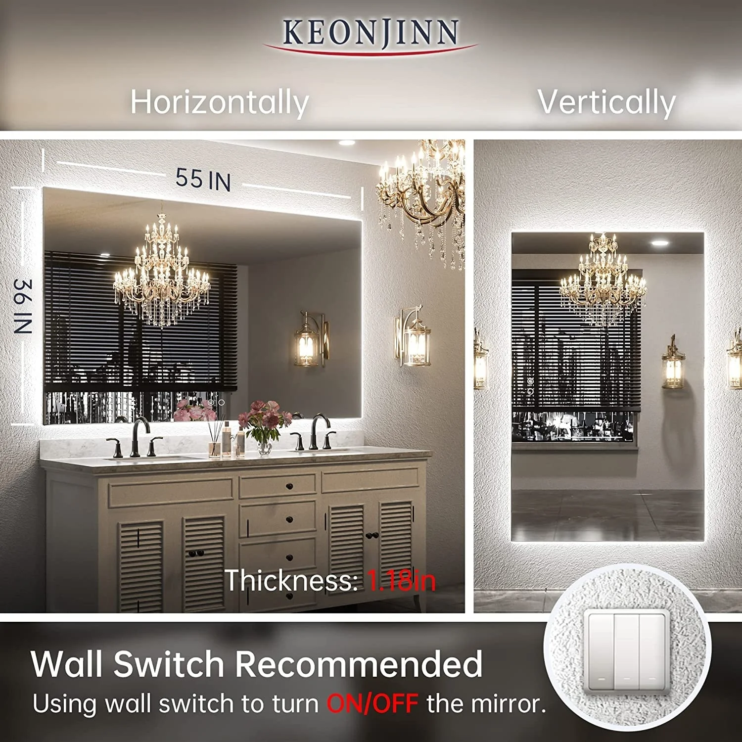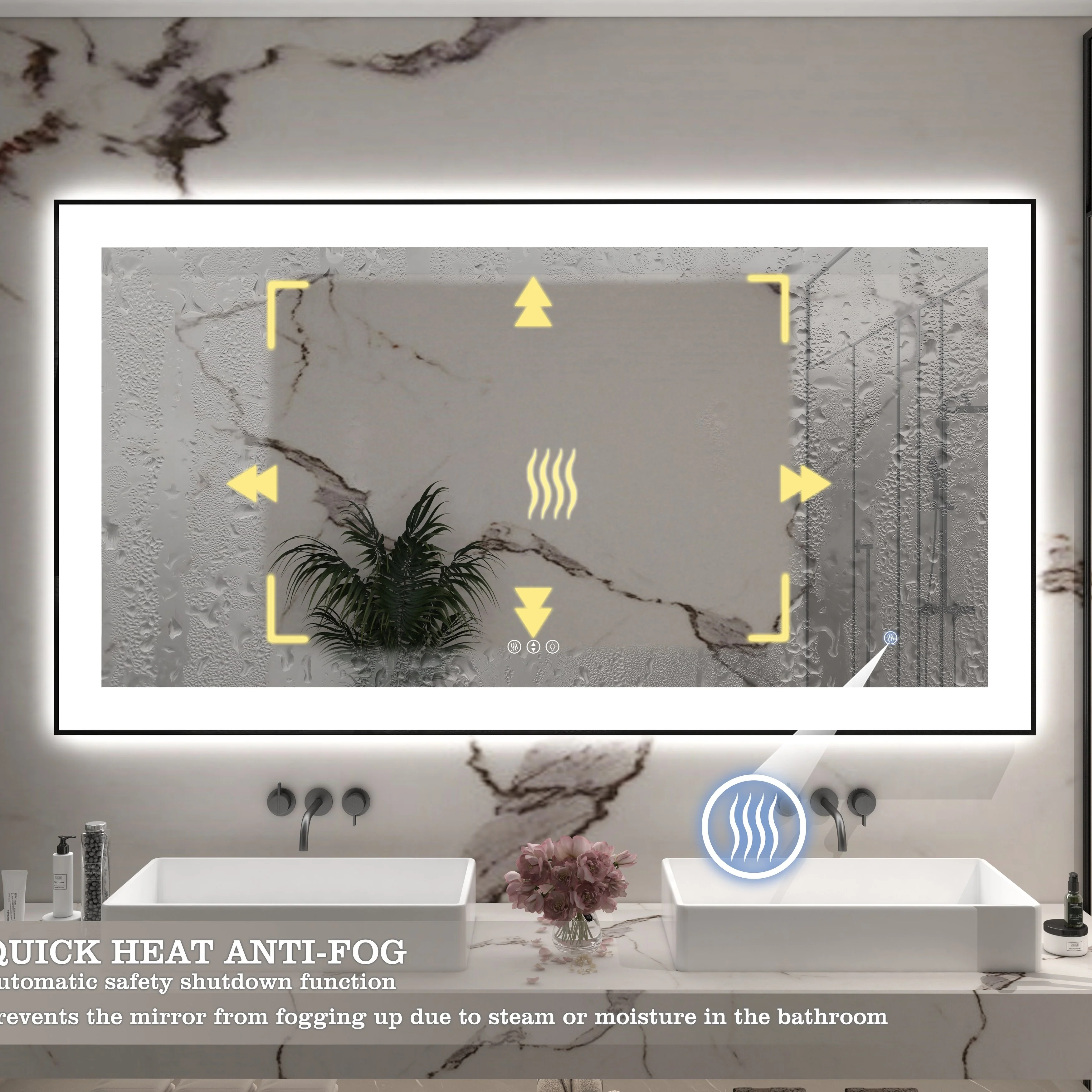 KIOTEE Super Bright Anti-fog Frameless Dimmable Mirror with Backlit and Front Lighting and 3-Year Warranty