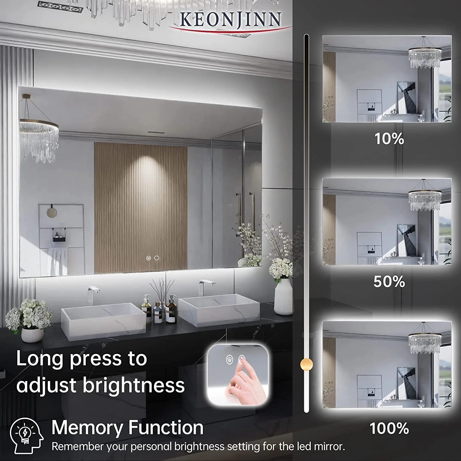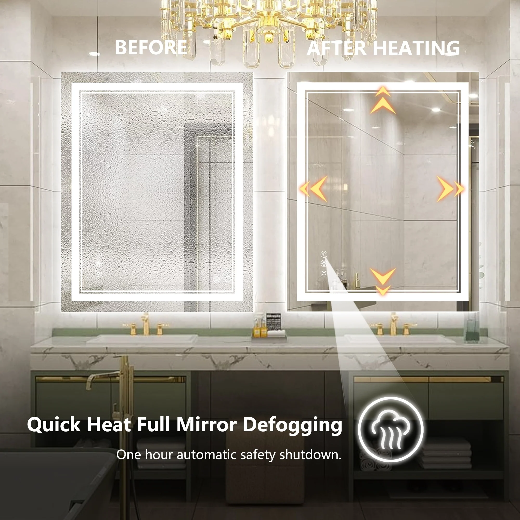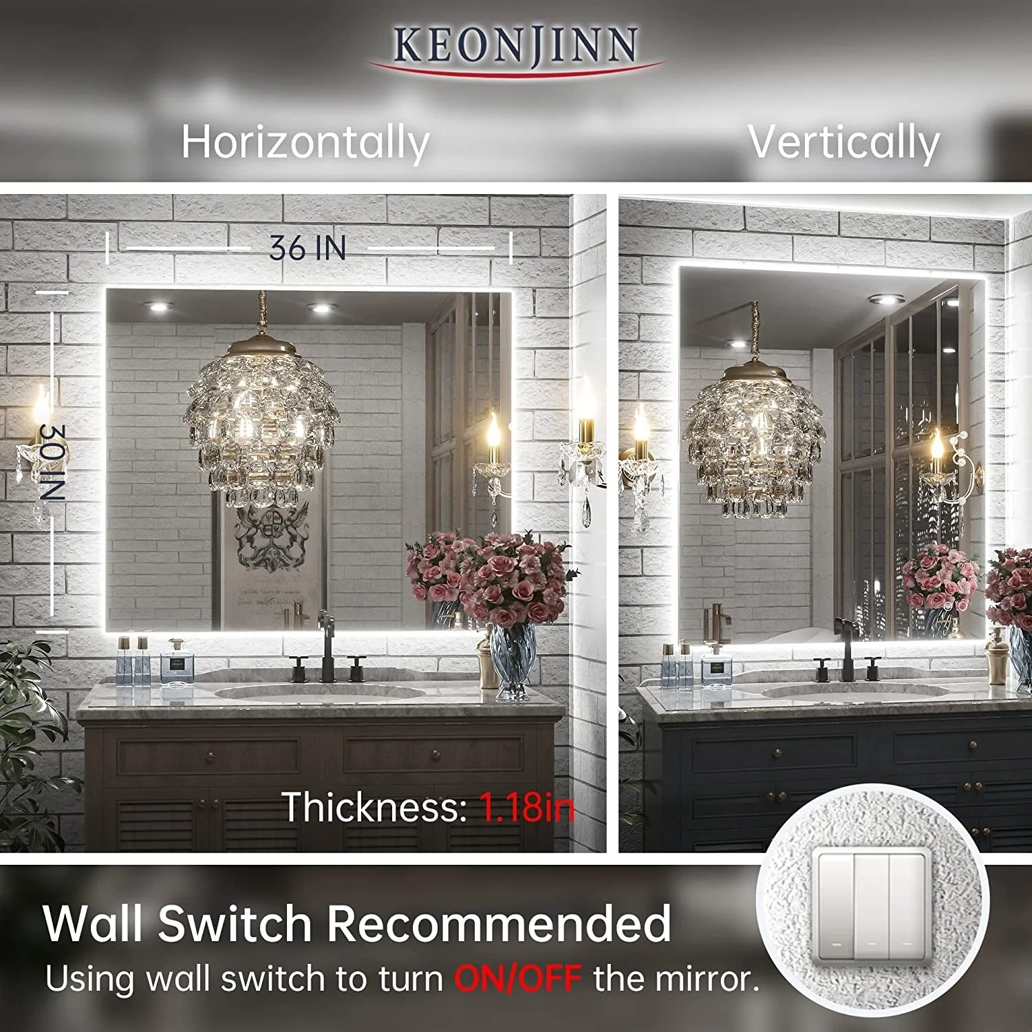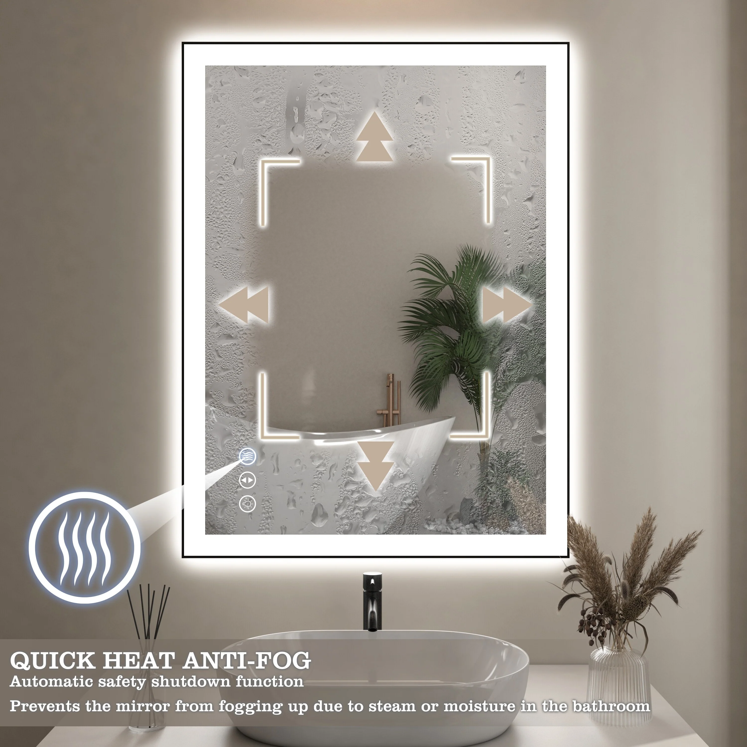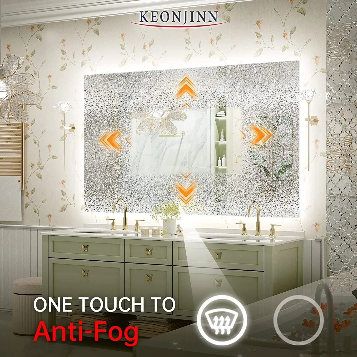KIOTEE Super Bright Anti-fog Frameless Dimmable Mirror with Backlit and Front Lighting and 3-Year Warranty